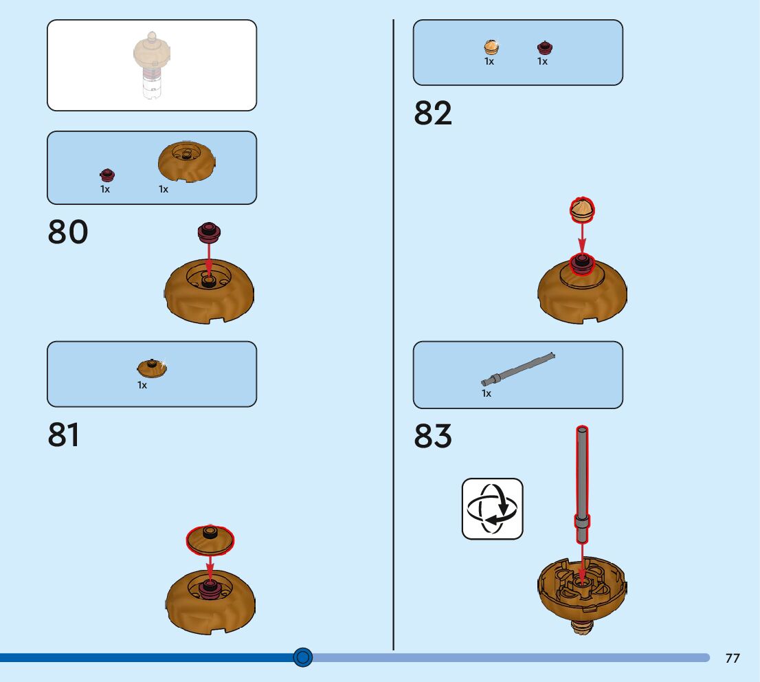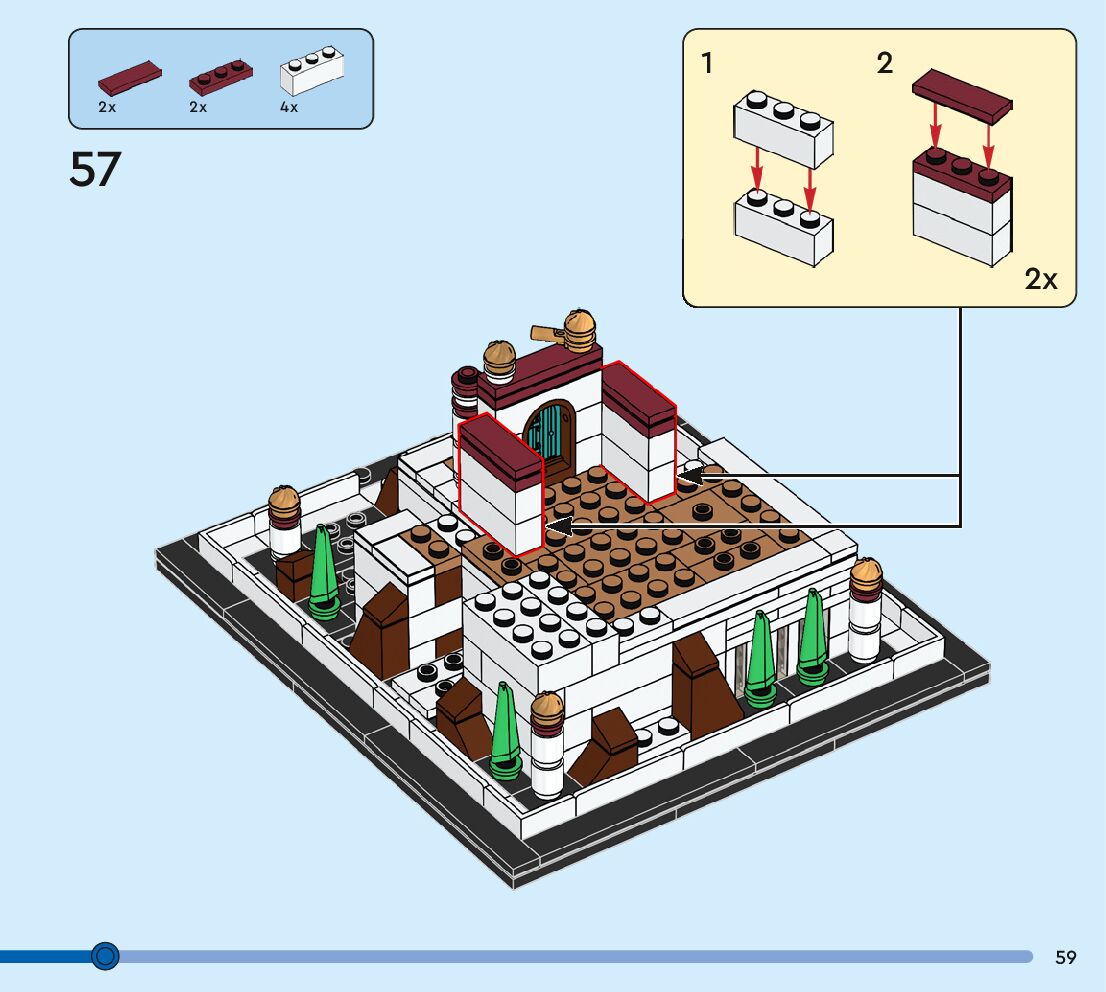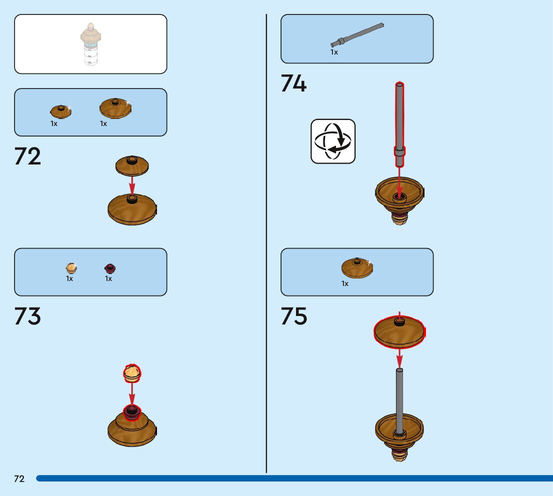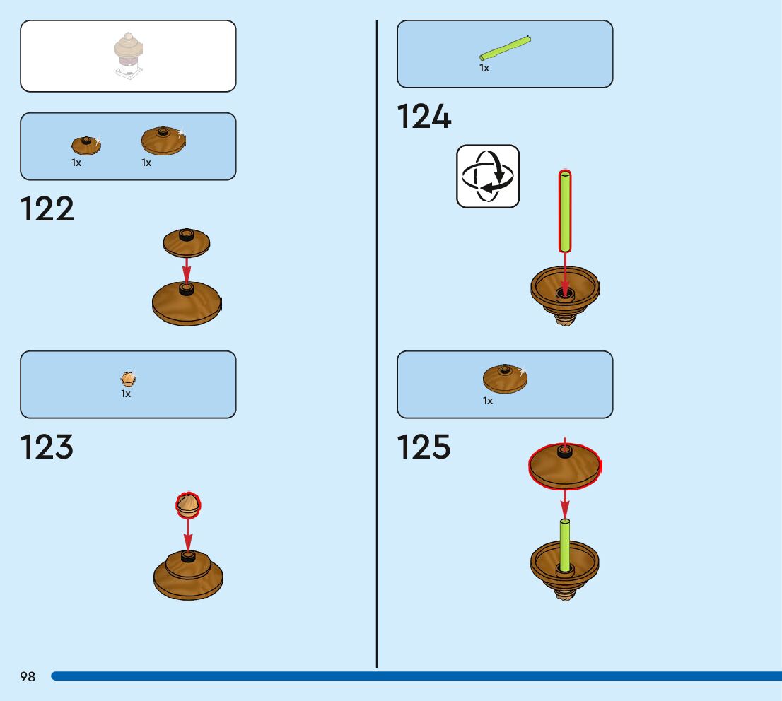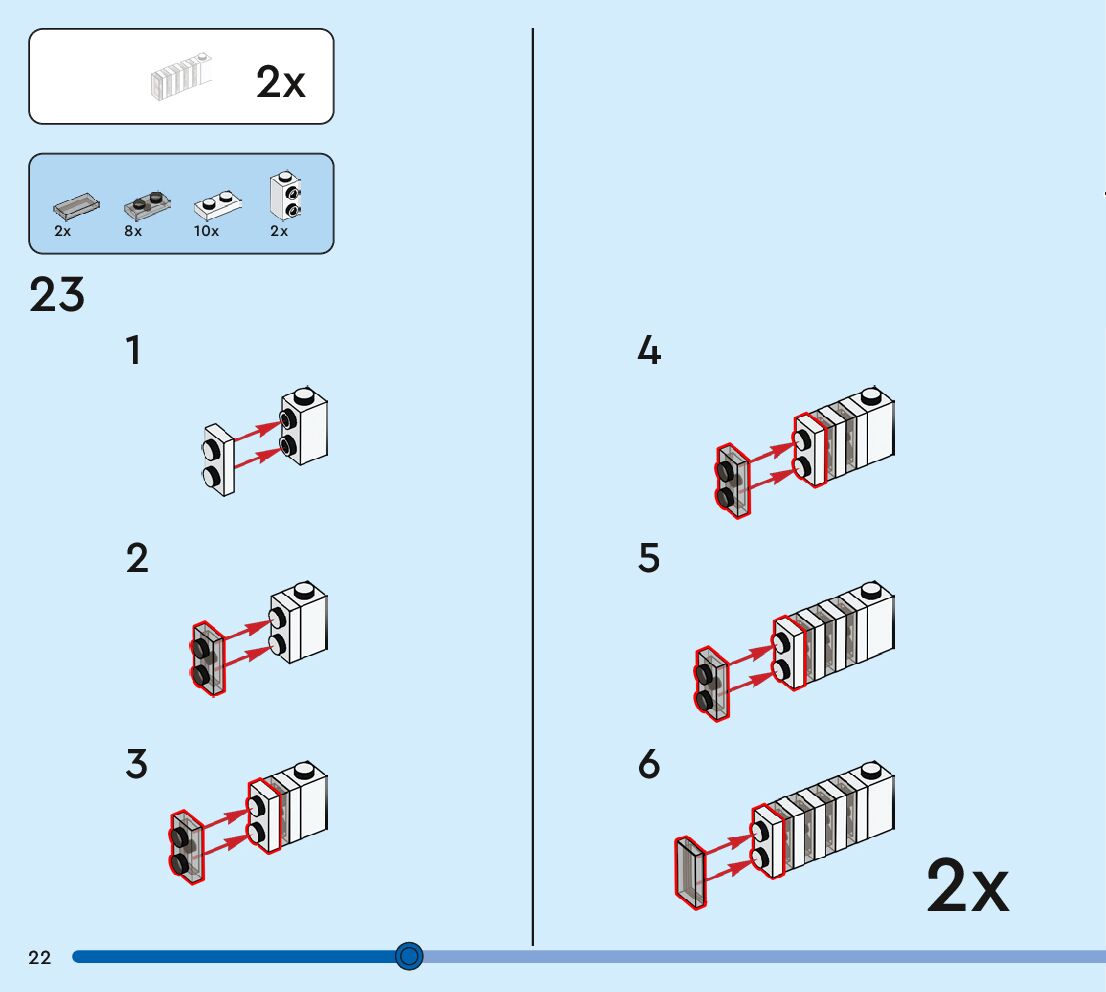 The assembly guide is prepared in a very understandable way for children and adult LEGO enthusiasts. A total of 112 picture galleries are shown, explaining the step-by-step construction stages for 1 different structures.