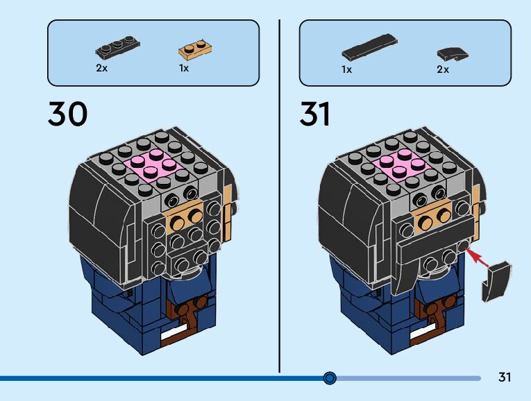 The assembly guide is prepared in a very understandable way for children and adult LEGO enthusiasts. A total of 88 picture galleries are shown, explaining the step-by-step construction stages for 2 different structures.