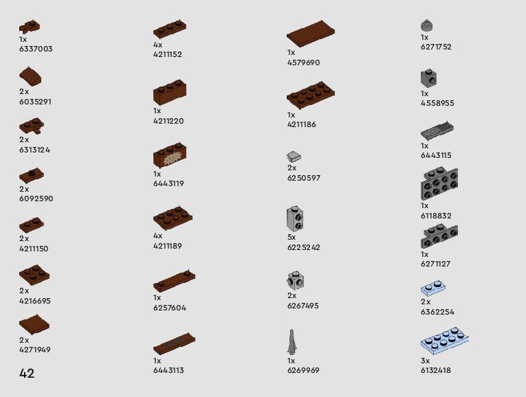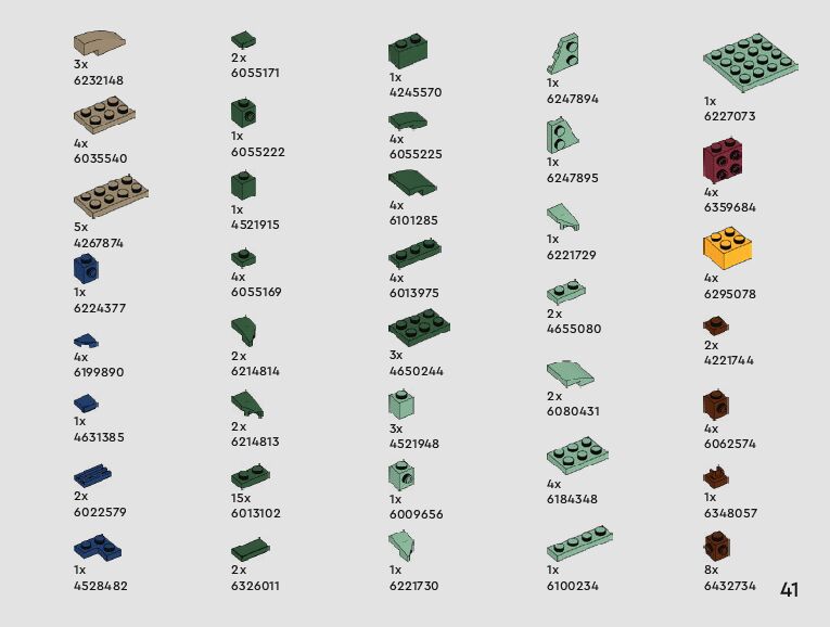 The assembly guide is prepared in a very understandable way for children and adult LEGO enthusiasts. A total of 172 picture galleries are shown, explaining the step-by-step construction stages for 5 different structures.