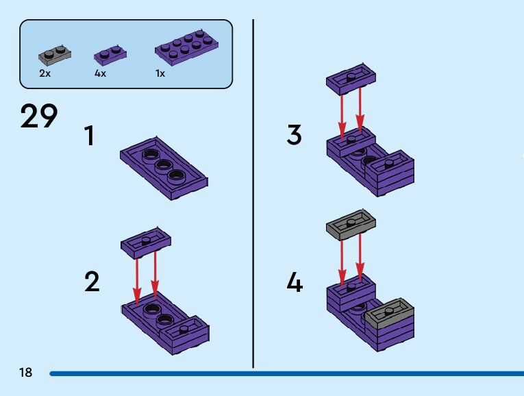 The assembly guide is prepared in a very understandable way for children and adult LEGO enthusiasts. A total of 24 picture galleries are shown, explaining the step-by-step construction stages for 1 different structures.
