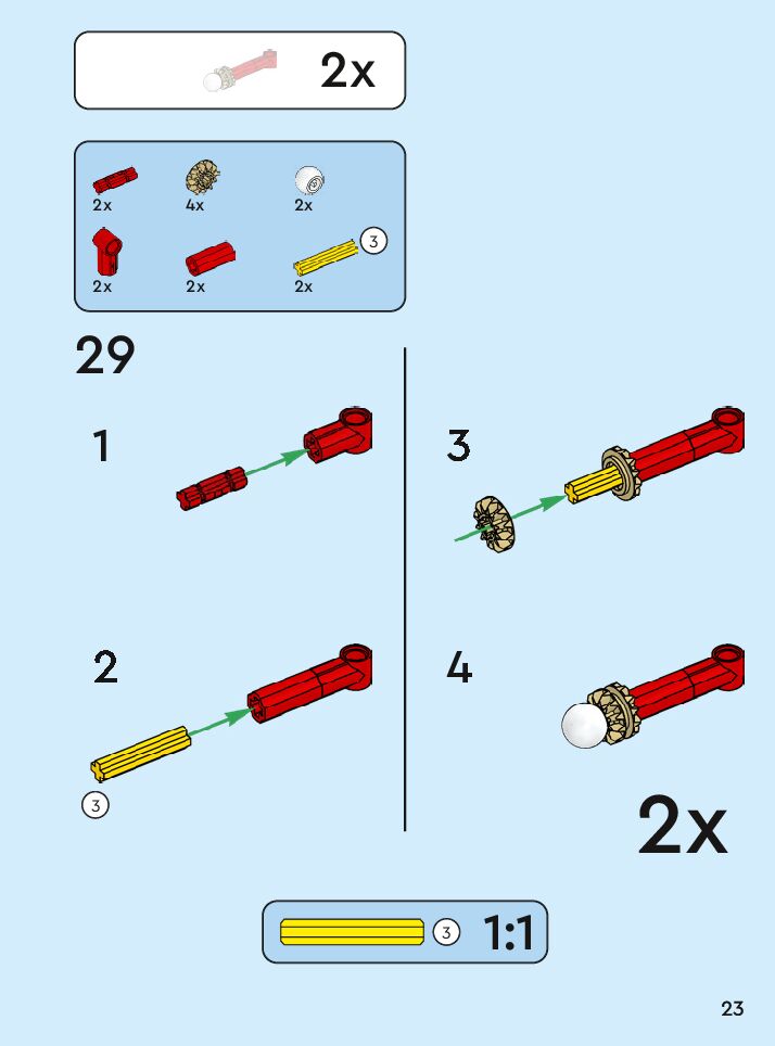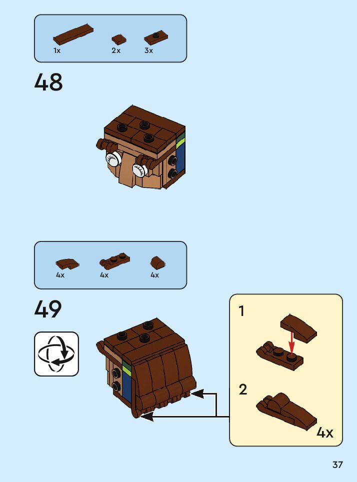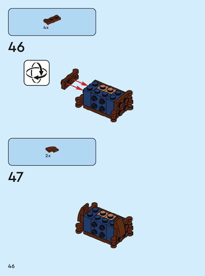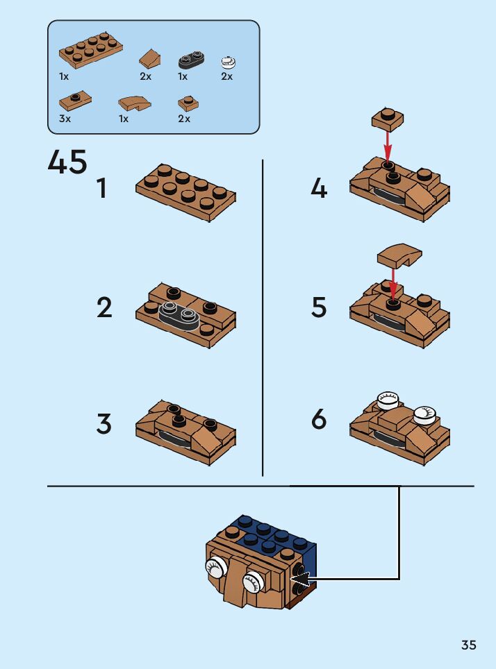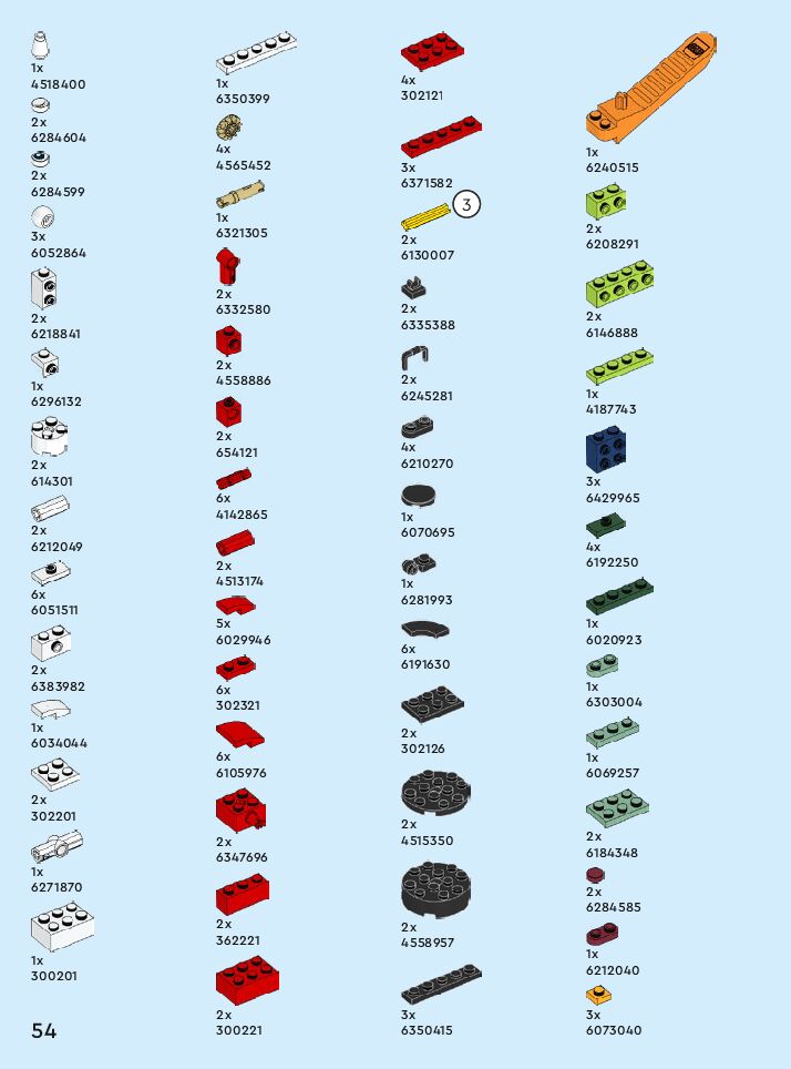 The assembly guide is prepared in a very understandable way for children and adult LEGO enthusiasts. A total of 56 picture galleries are shown, explaining the step-by-step construction stages for 1 different structures.