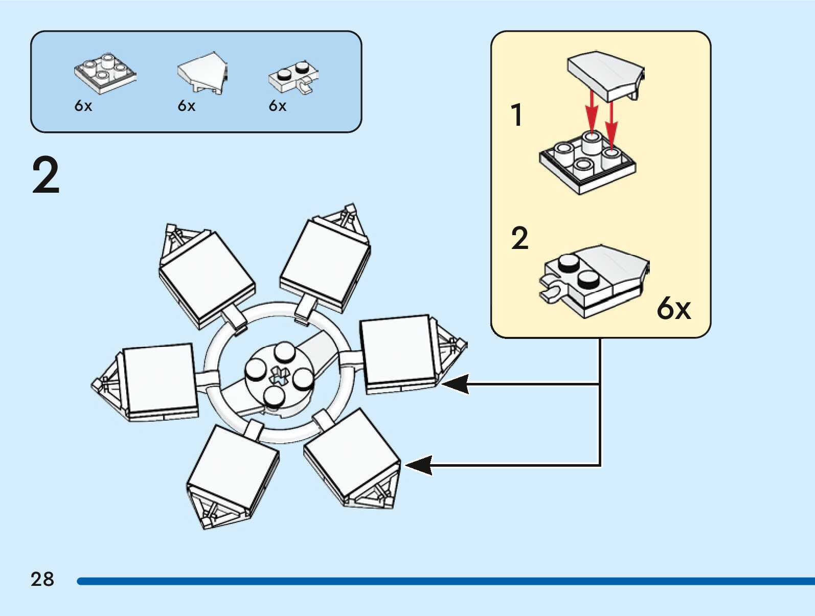 The assembly guide is prepared in a very understandable way for children and adult LEGO enthusiasts. A total of 40 picture galleries are shown, explaining the step-by-step construction stages for 1 different structures.