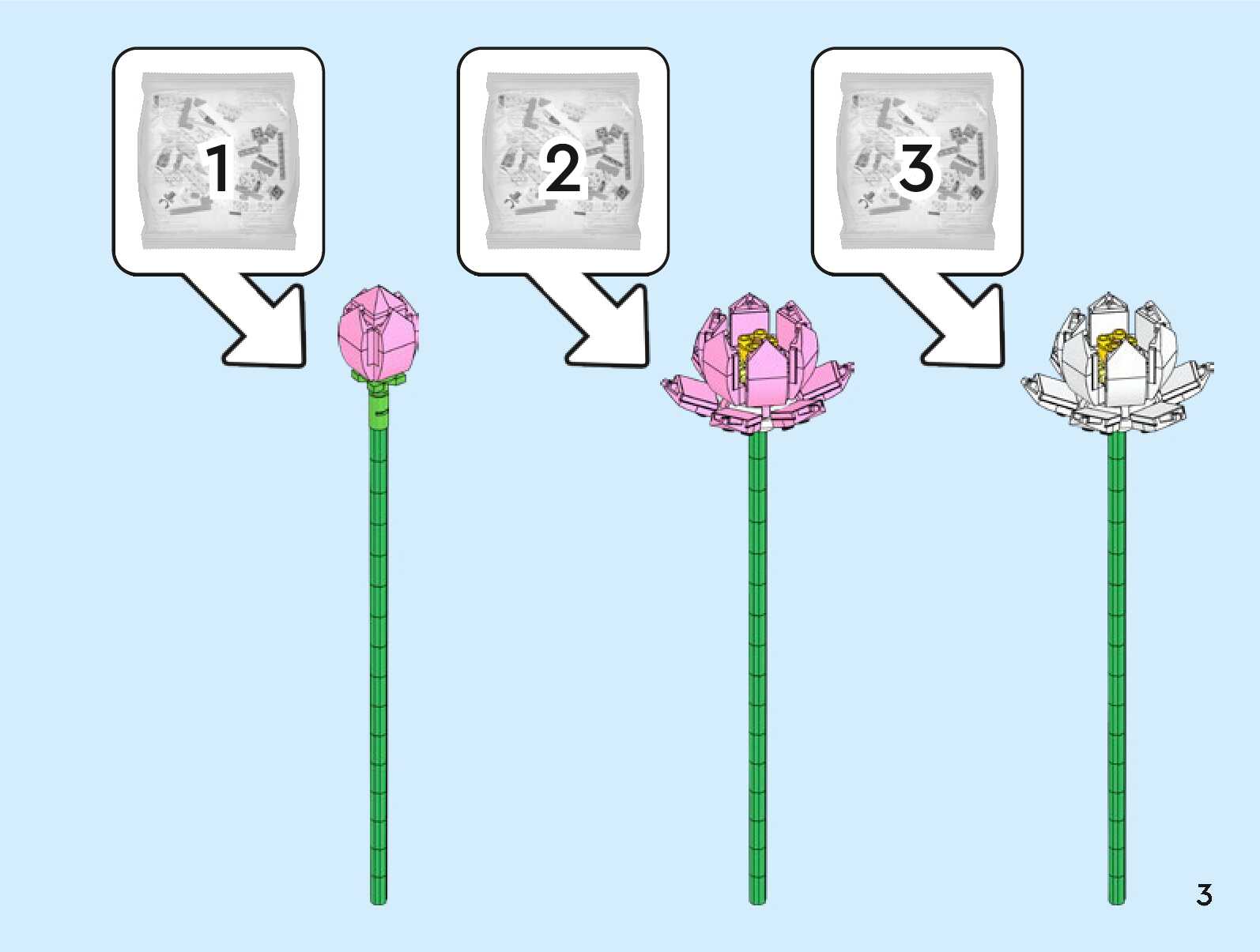 This page shares information about LEGO Lotus Flowers manual, LEGO 40647 PDF instructions, LEGO Lotus Flowers building guide online, How to build Lotus Flowers LEGO.