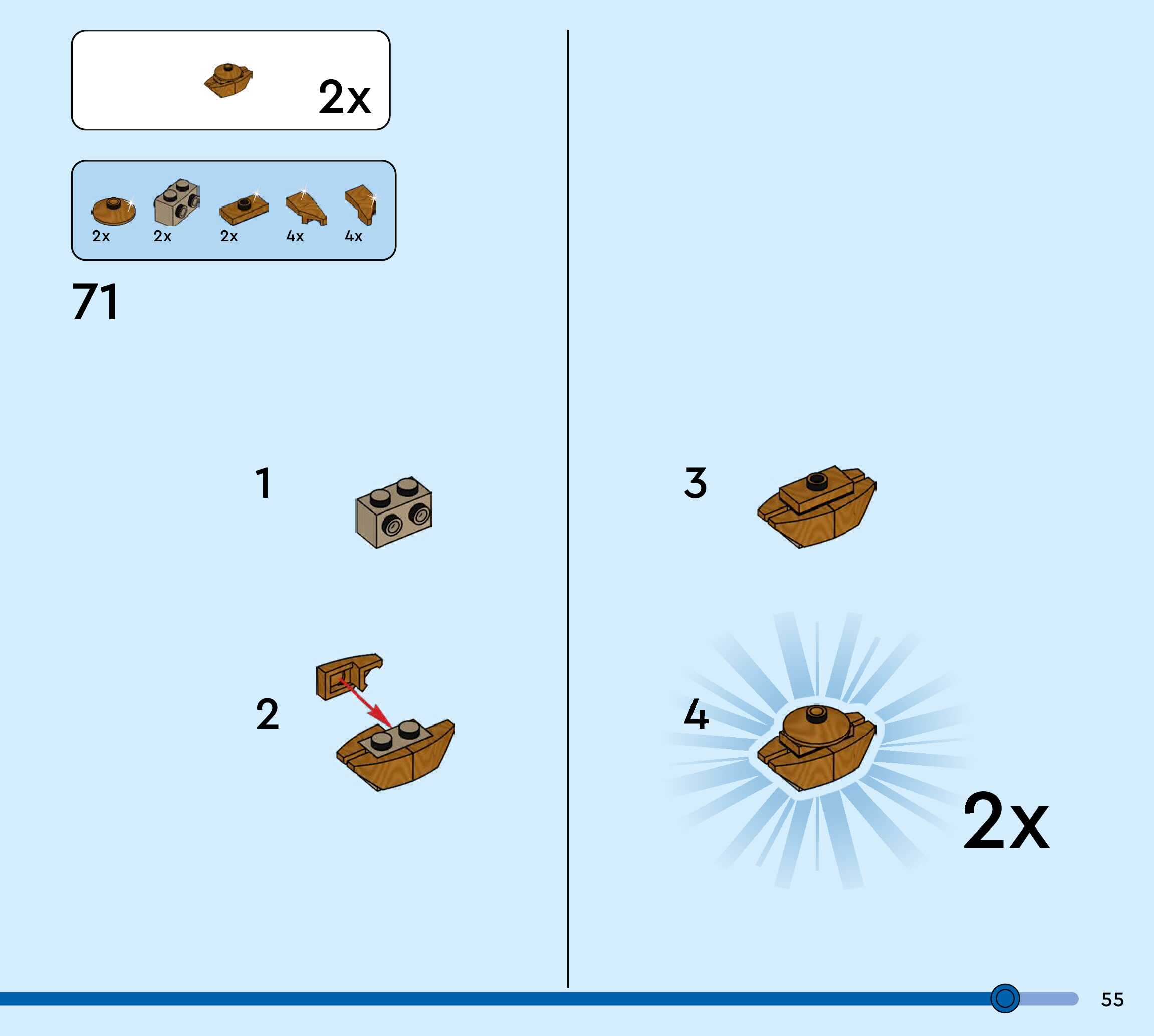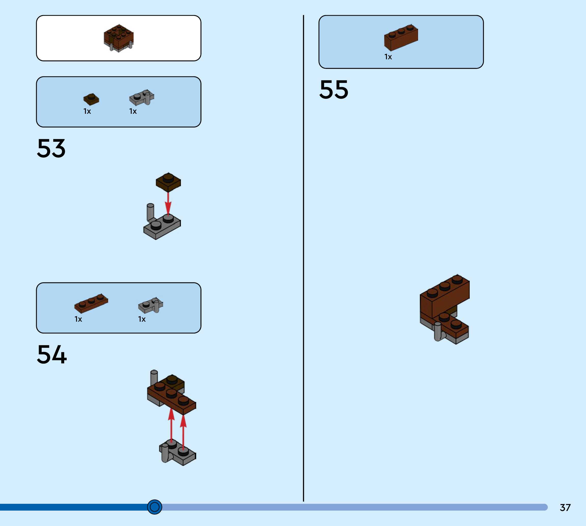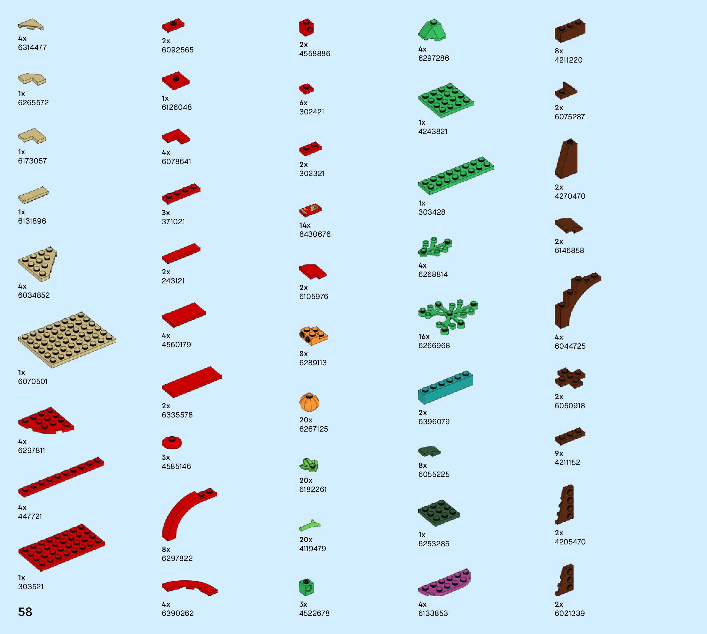 The assembly guide is prepared in a very understandable way for children and adult LEGO enthusiasts. A total of 60 picture galleries are shown, explaining the step-by-step construction stages for 1 different structures.