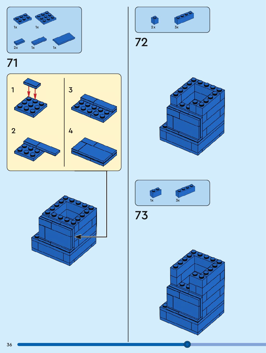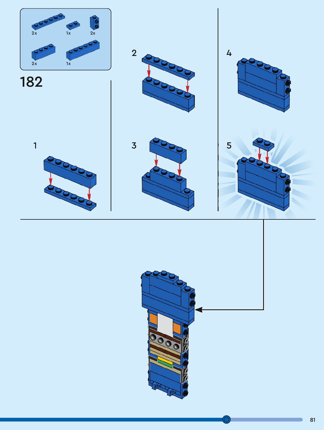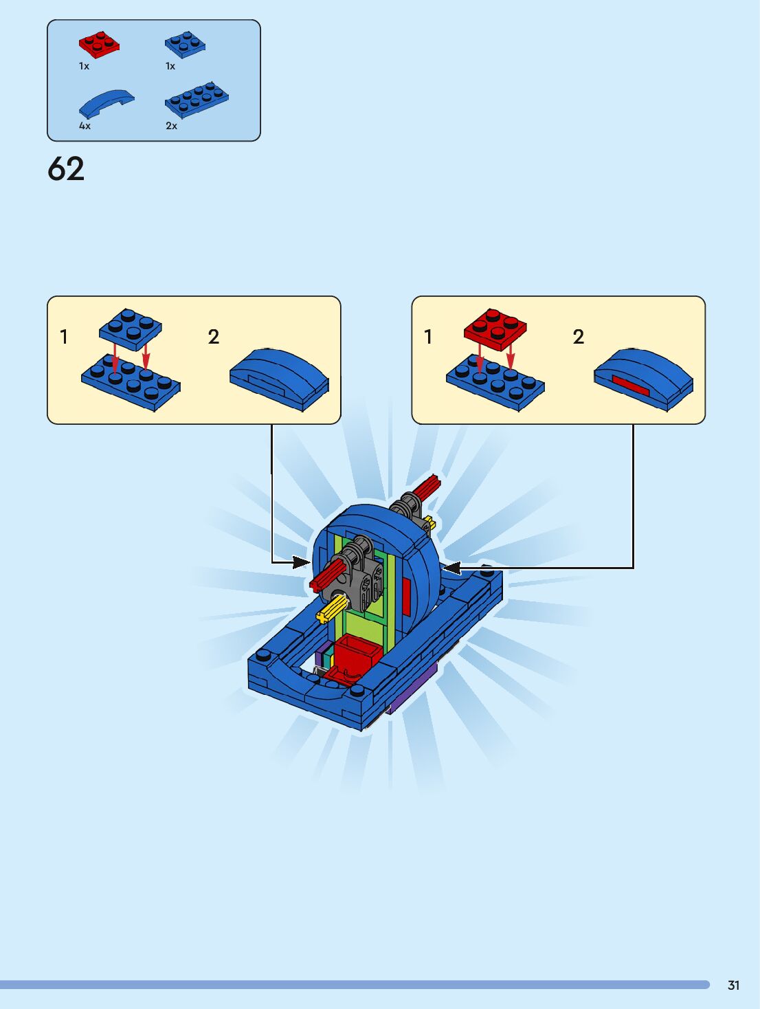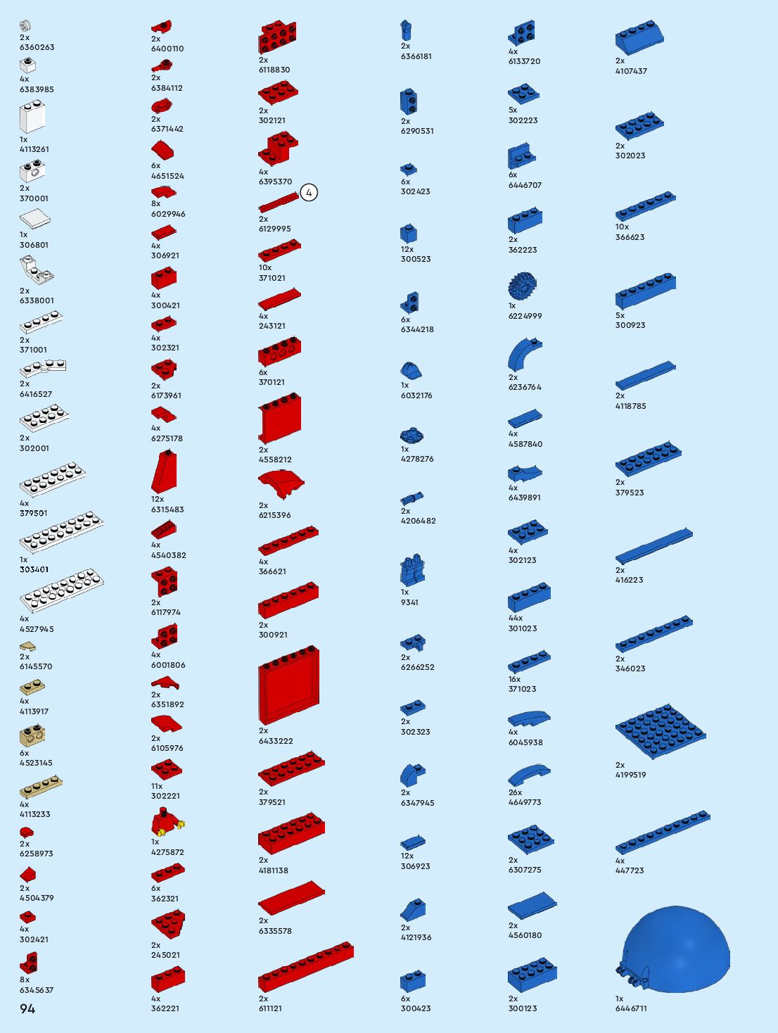The assembly guide is prepared in a very understandable way for children and adult LEGO enthusiasts. A total of 96 picture galleries are shown, explaining the step-by-step construction stages for 1 different structures.