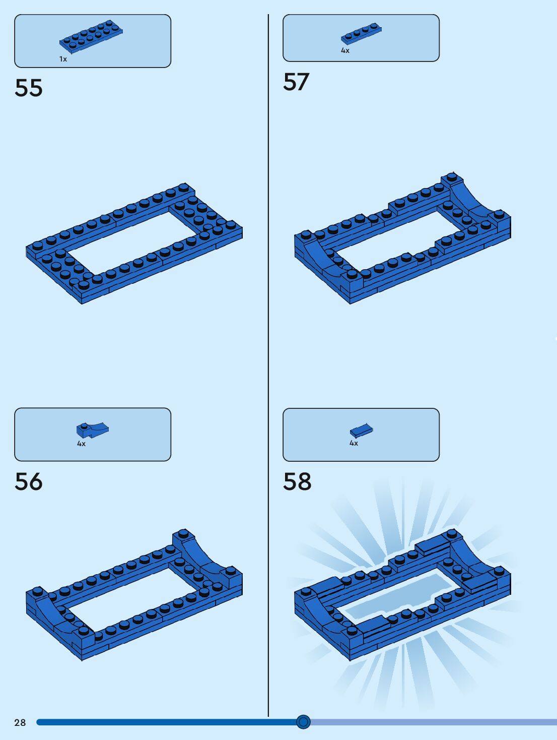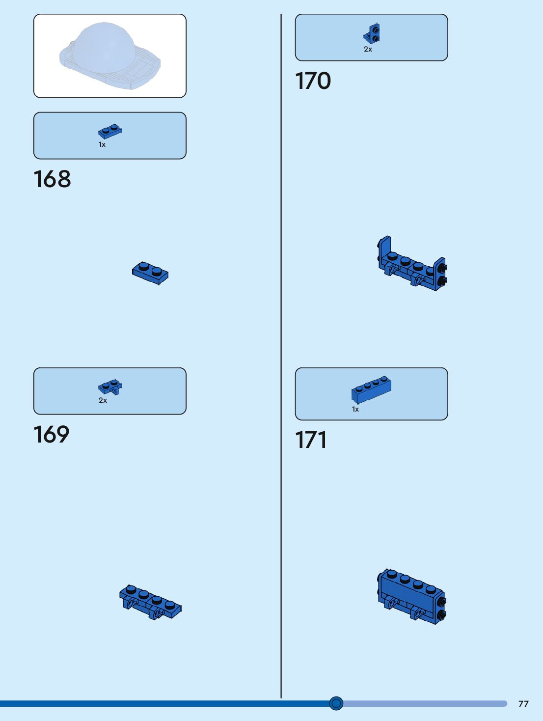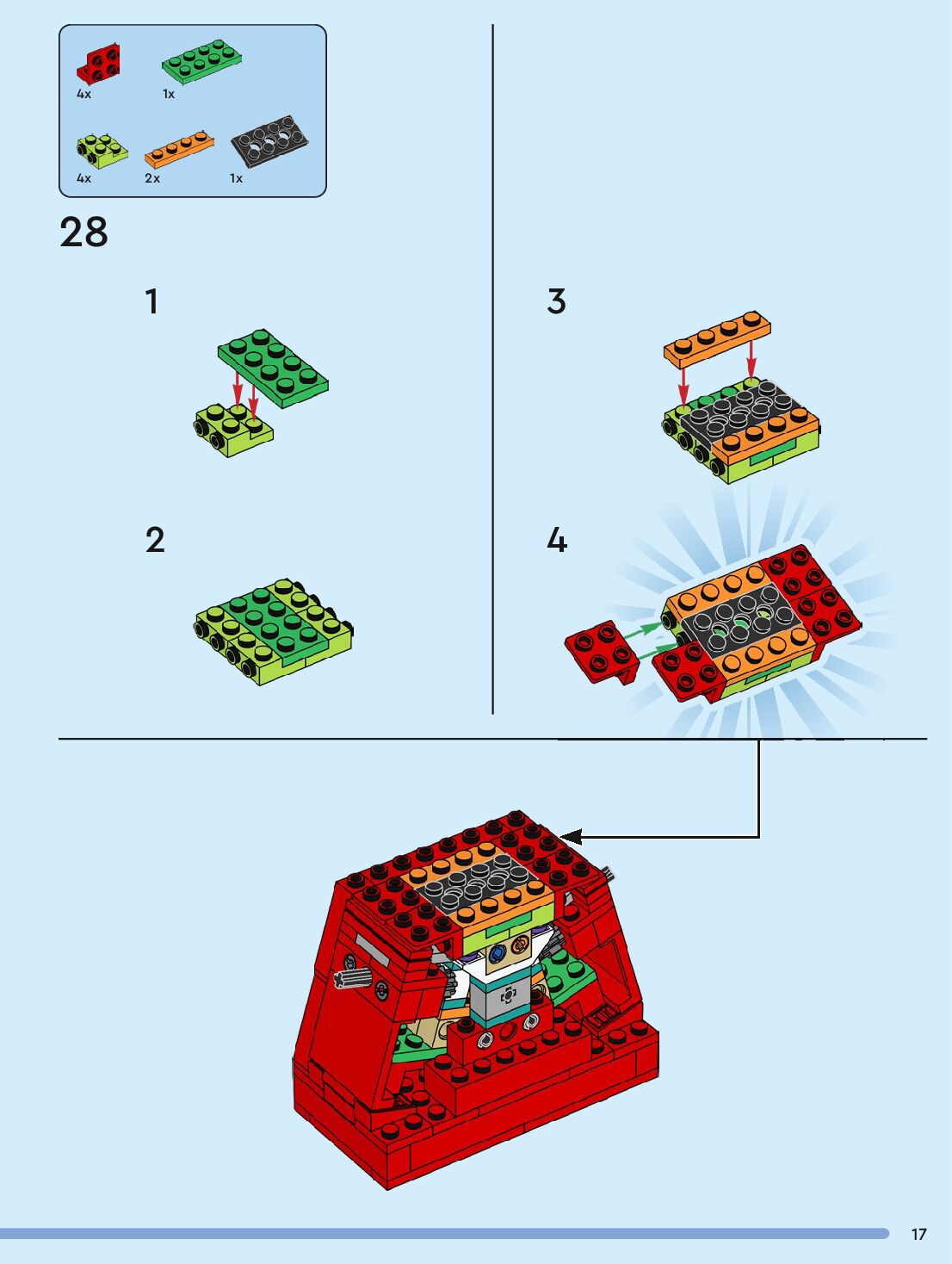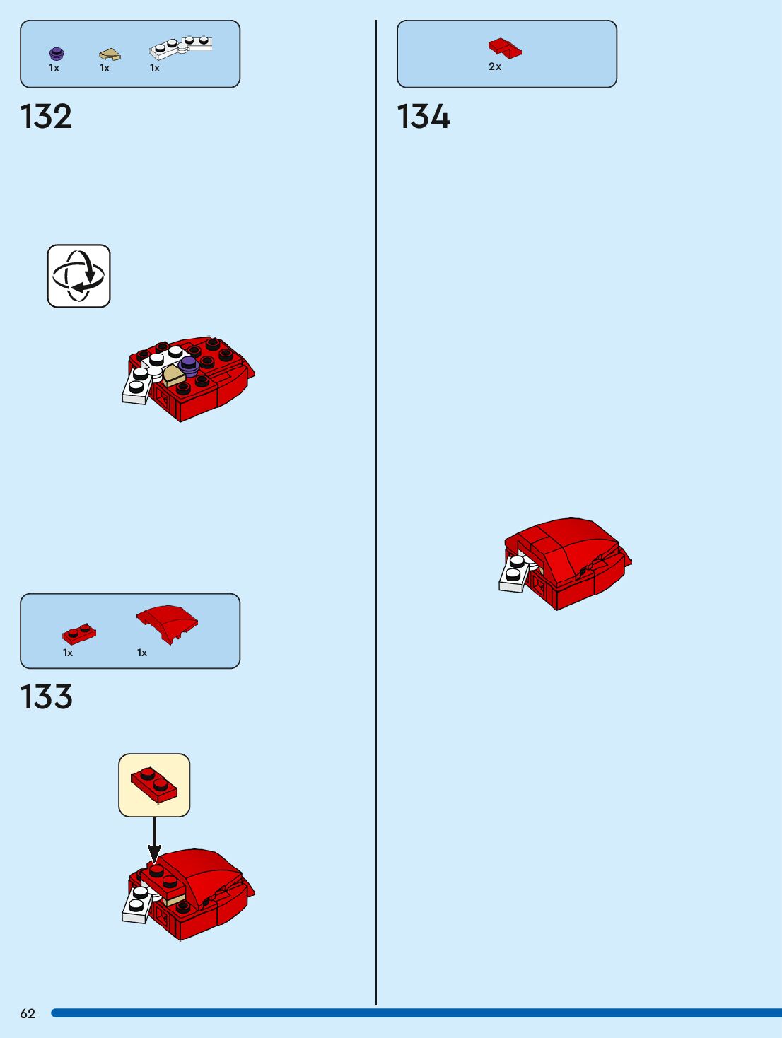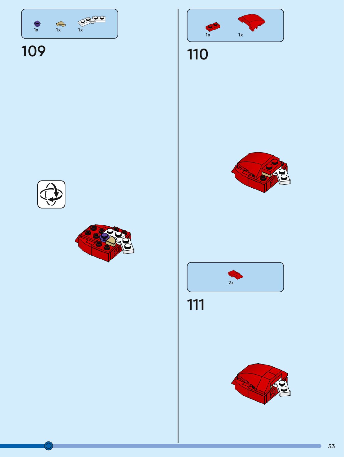 The assembly guide is prepared in a very understandable way for children and adult LEGO enthusiasts. A total of 96 picture galleries are shown, explaining the step-by-step construction stages for 1 different structures.