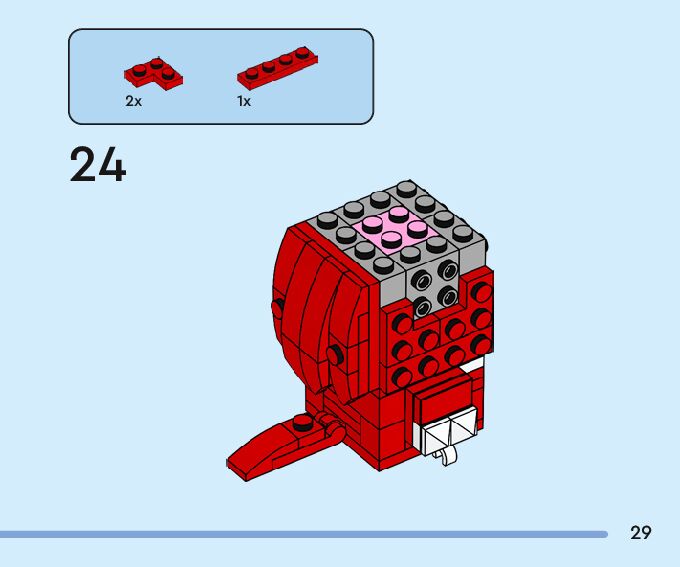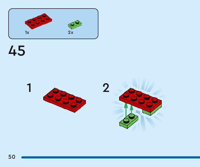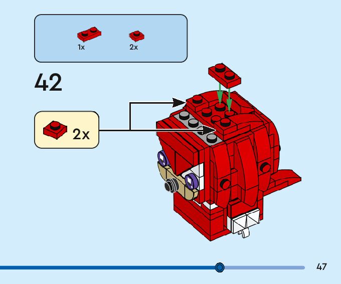 The assembly guide is prepared in a very understandable way for children and adult LEGO enthusiasts. A total of 116 picture galleries are shown, explaining the step-by-step construction stages for 2 different structures.