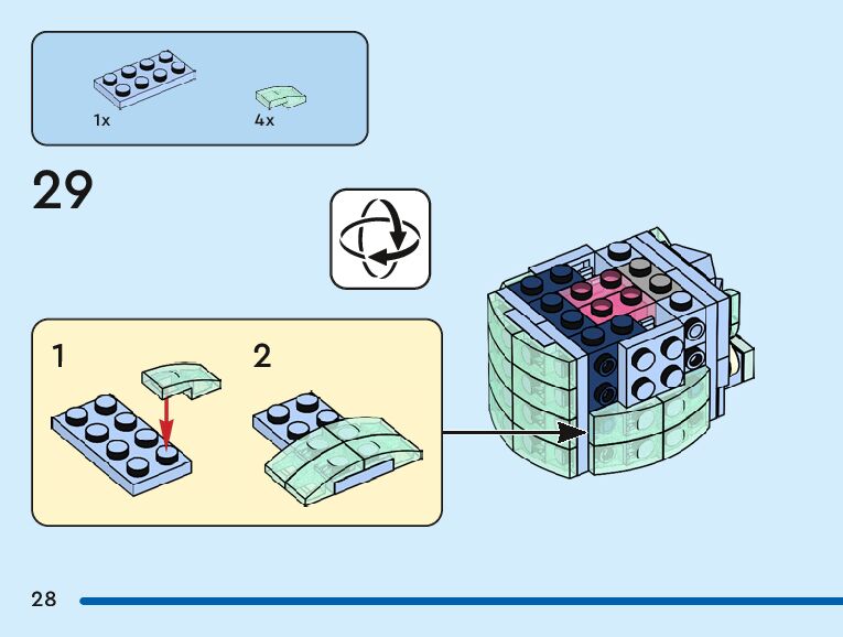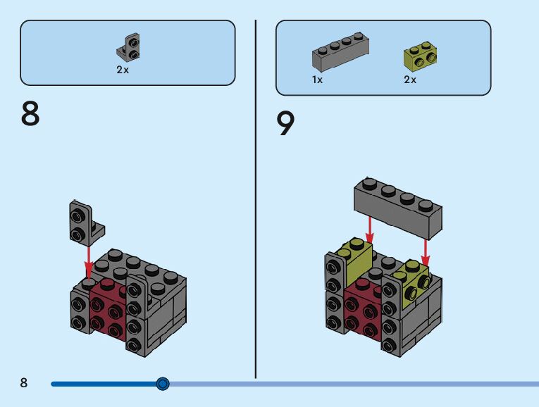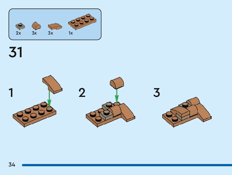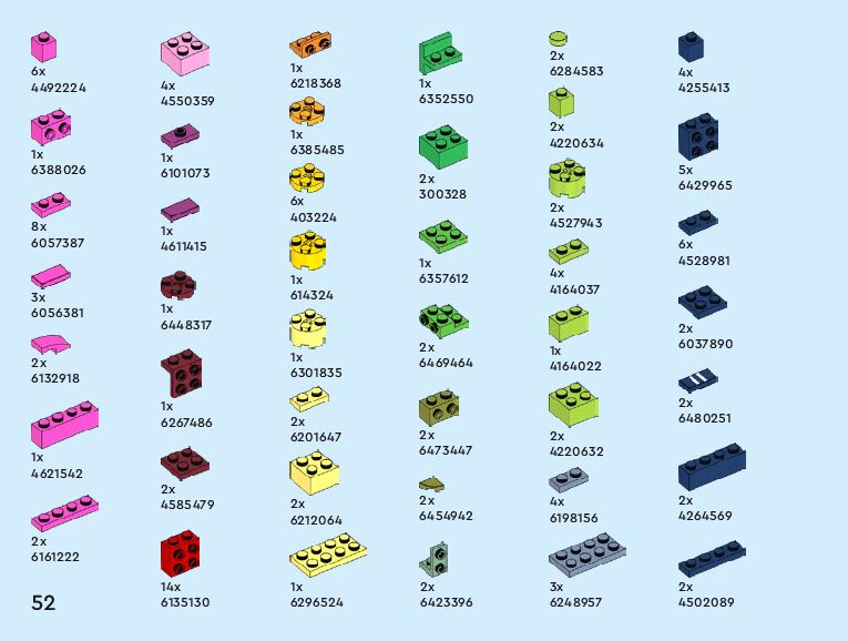The assembly guide is prepared in a very understandable way for children and adult LEGO enthusiasts. A total of 244 picture galleries are shown, explaining the step-by-step construction stages for 5 different structures.
