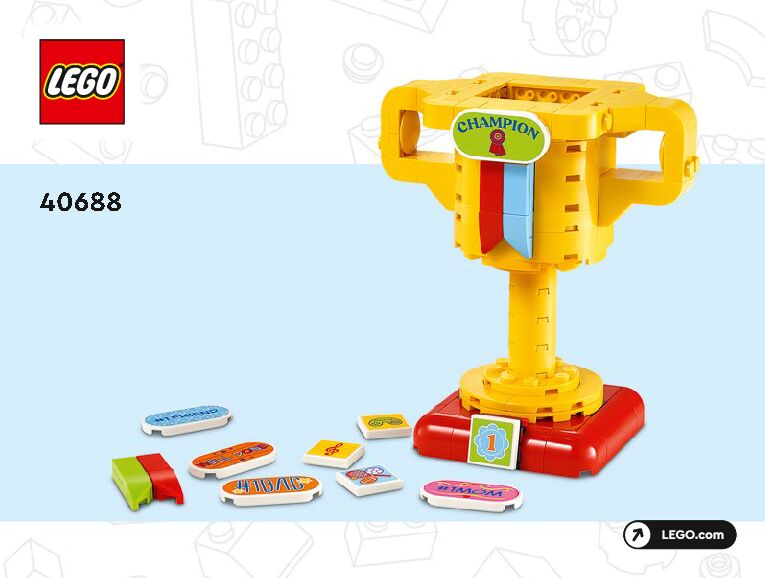 On this page you can find the original construction manual for the LEGO 40688 set. With the assembly manual you can easily learn how to build the 40688 Trophy Award step by step. The set was released in 2024.