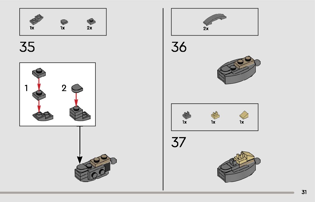 The assembly guide is prepared in a very understandable way for children and adult LEGO enthusiasts. A total of 72 picture galleries are shown, explaining the step-by-step construction stages for 1 different structures.