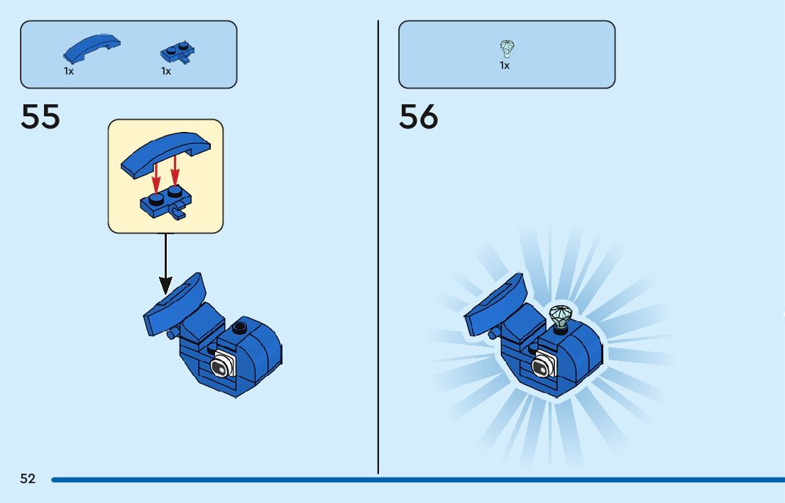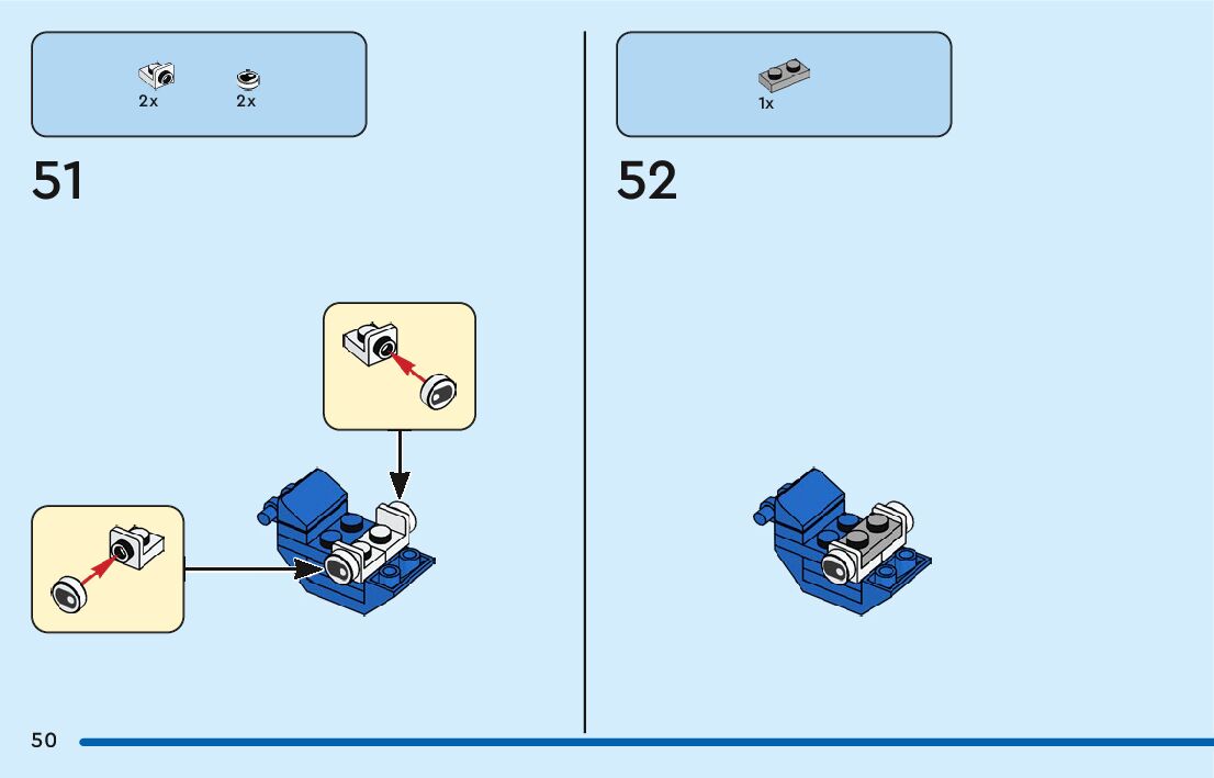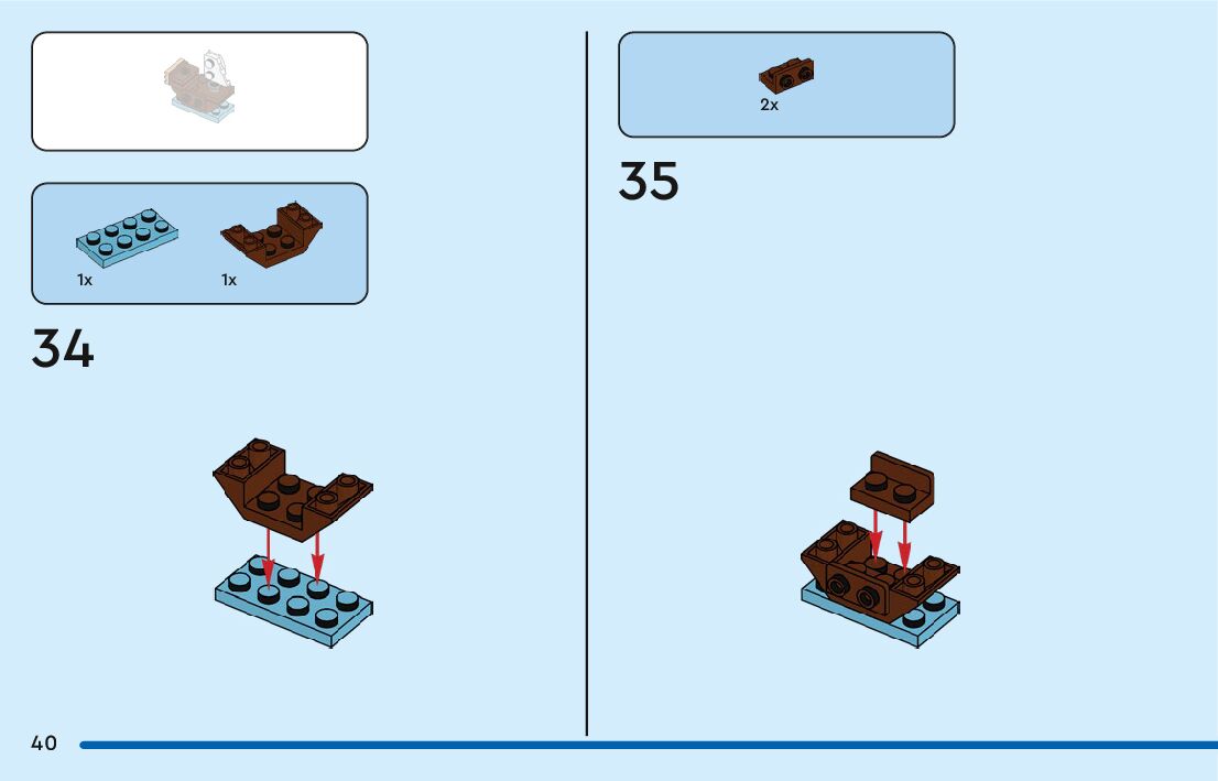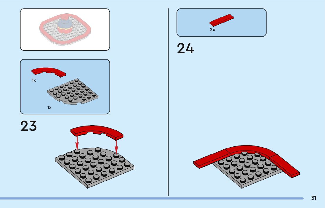 The assembly guide is prepared in a very understandable way for children and adult LEGO enthusiasts. A total of 80 picture galleries are shown, explaining the step-by-step construction stages for 1 different structures.