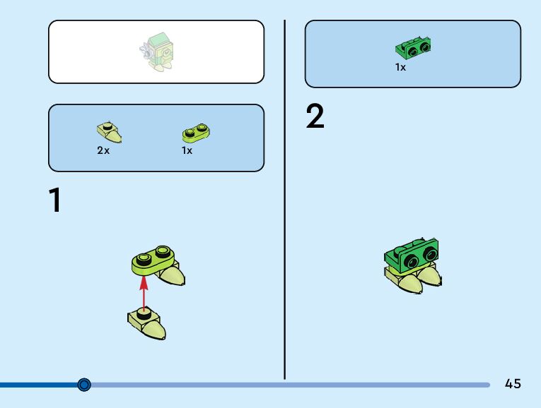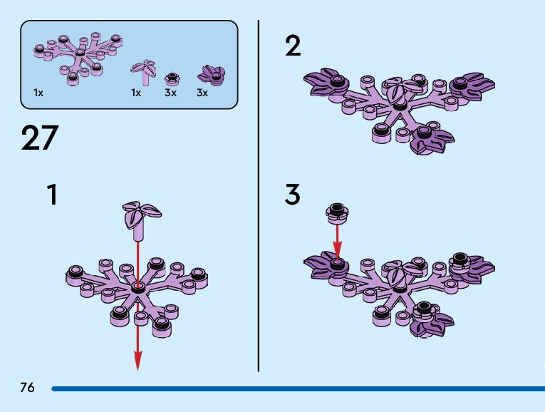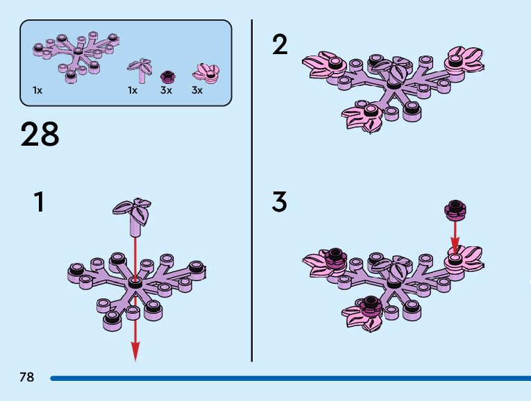 The assembly guide is prepared in a very understandable way for children and adult LEGO enthusiasts. A total of 84 picture galleries are shown, explaining the step-by-step construction stages for 1 different structures.