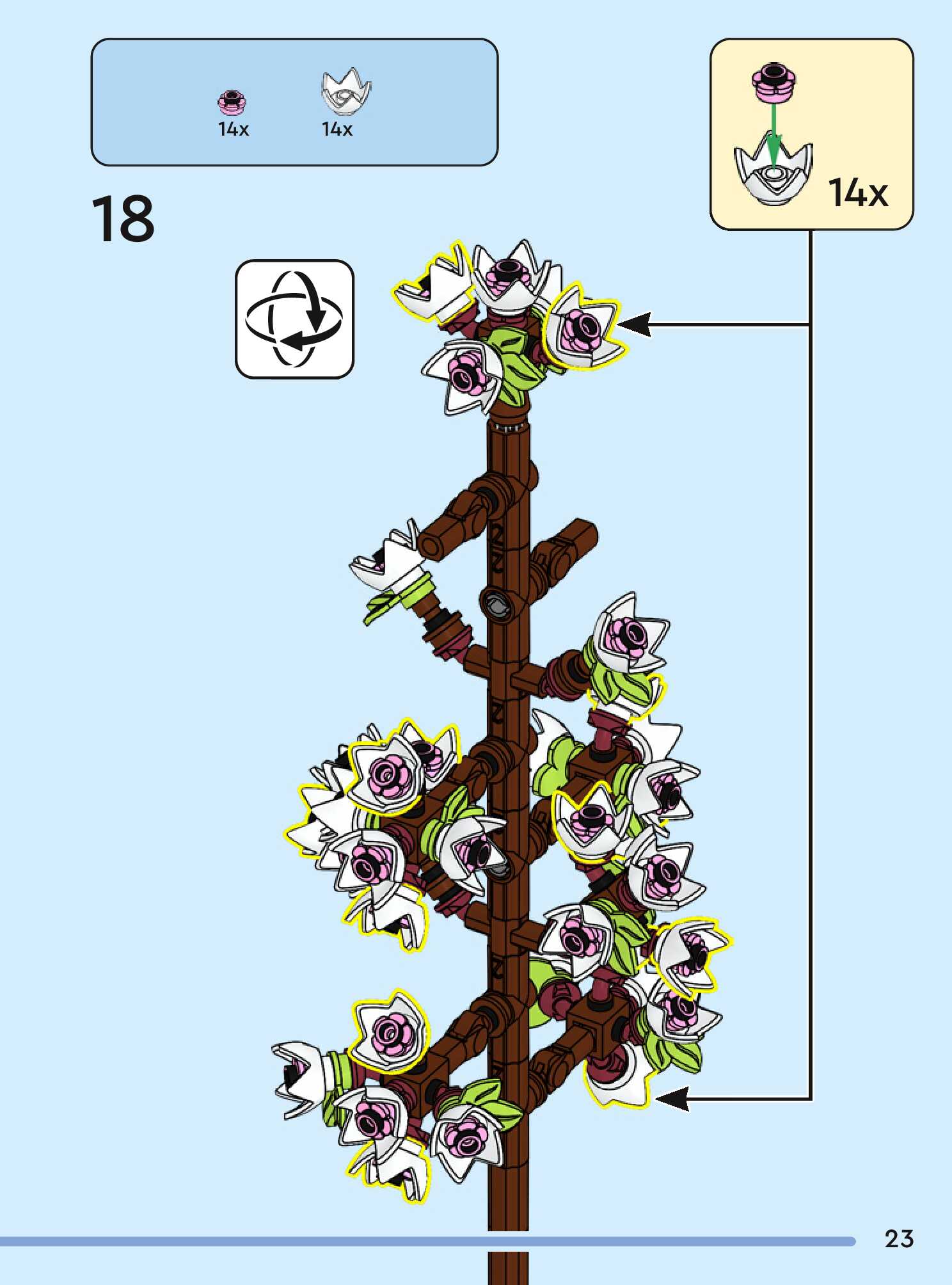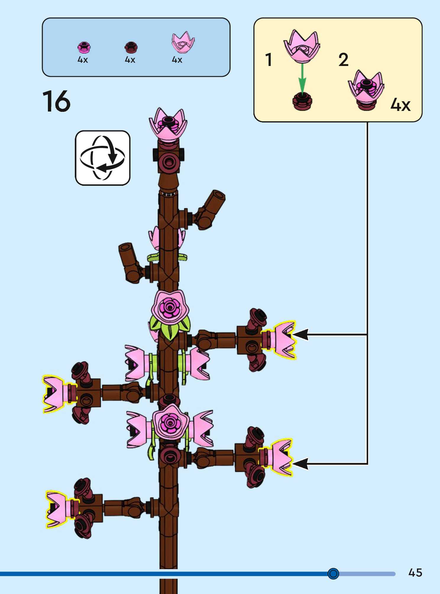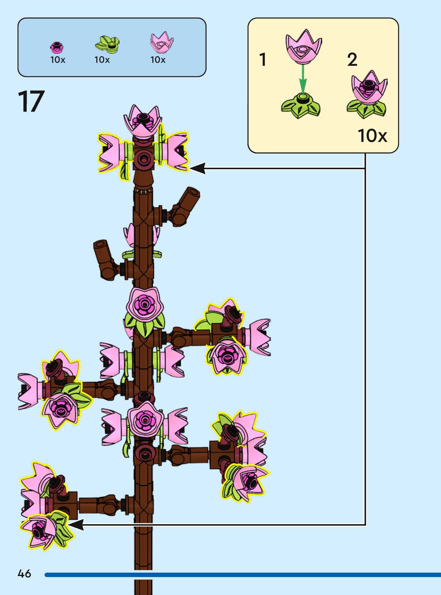 This page shares information about LEGO Cherry Blossoms manual, LEGO 40725 PDF instructions, LEGO Cherry Blossoms building guide online, How to build Cherry Blossoms LEGO.