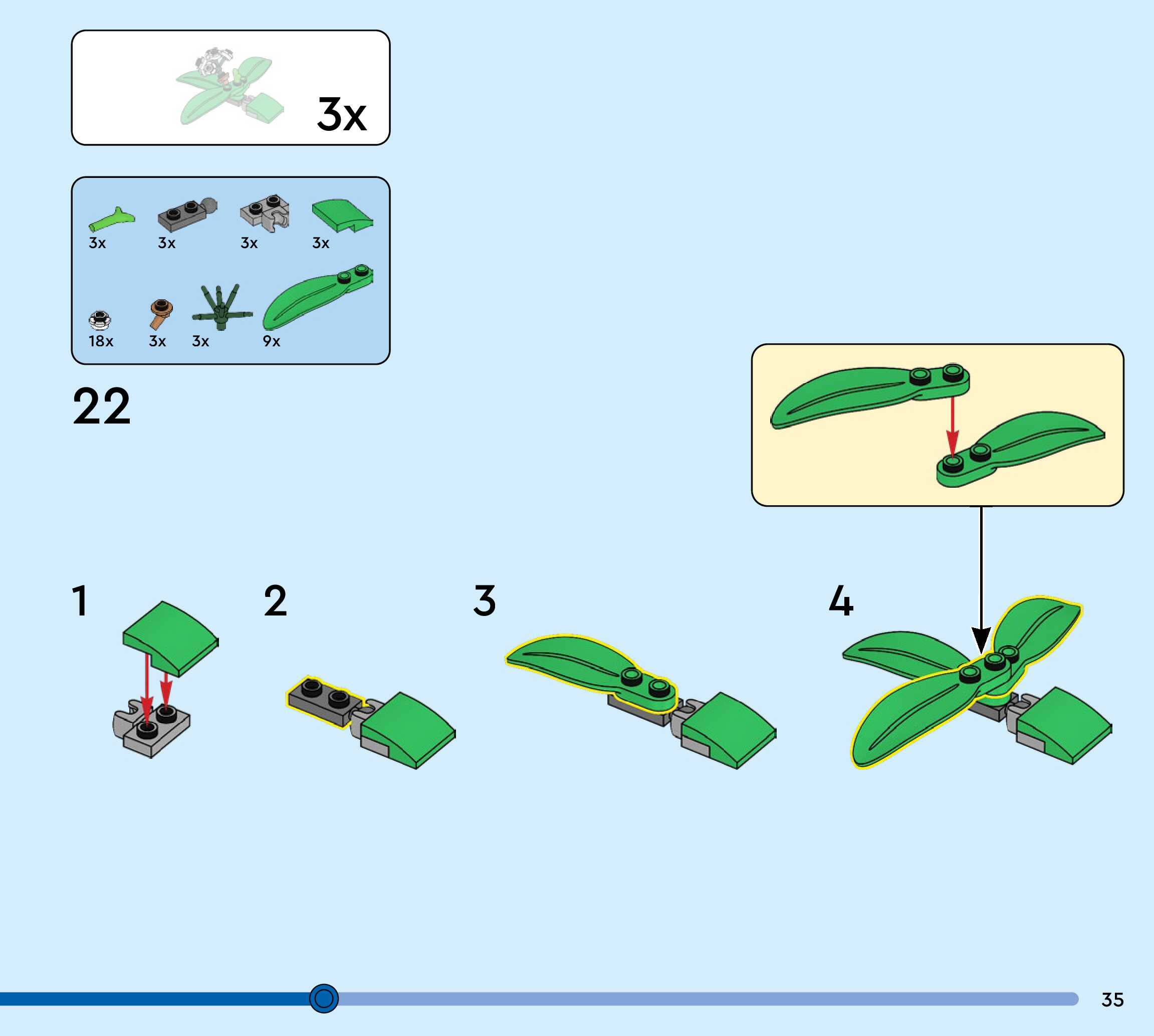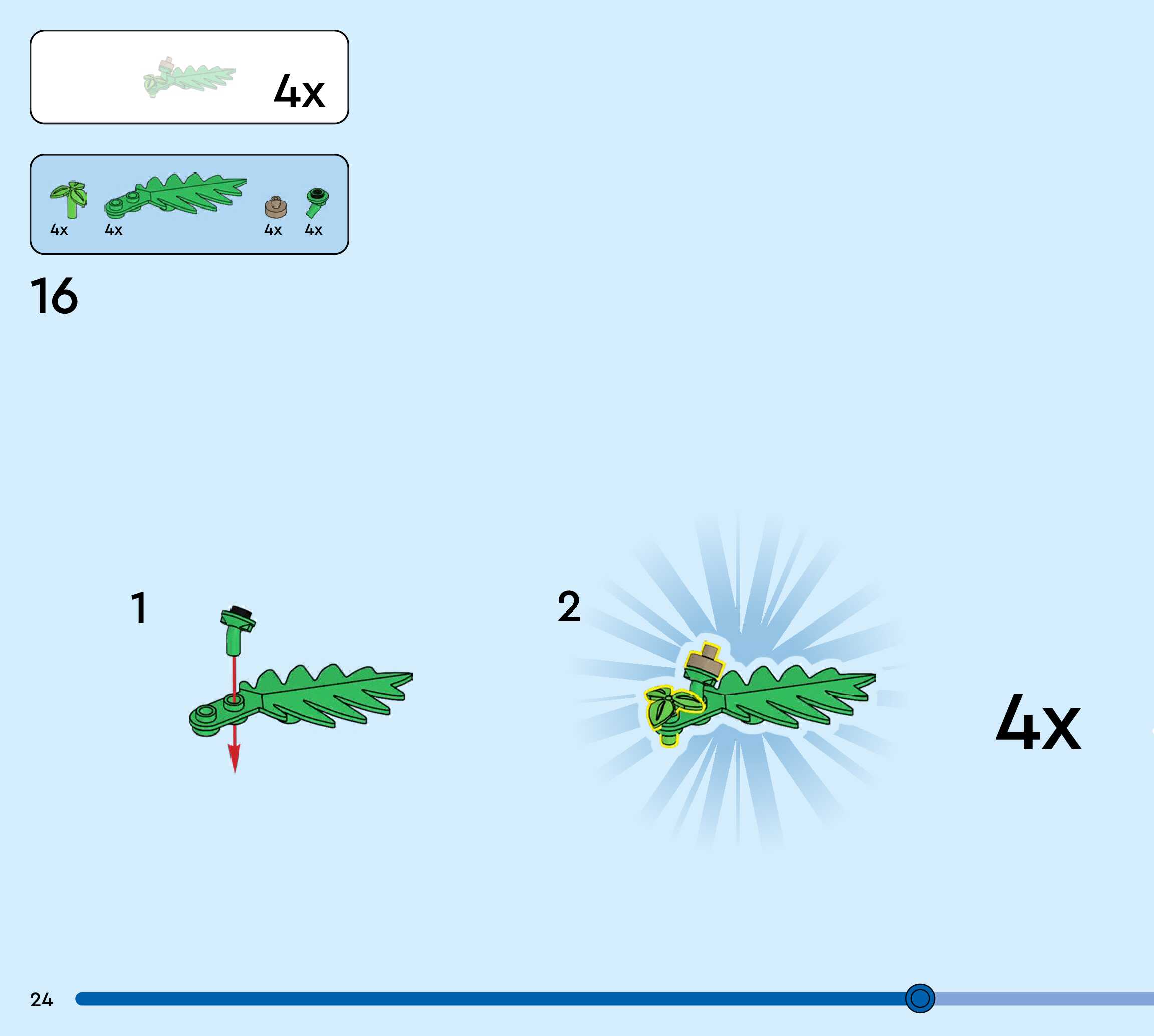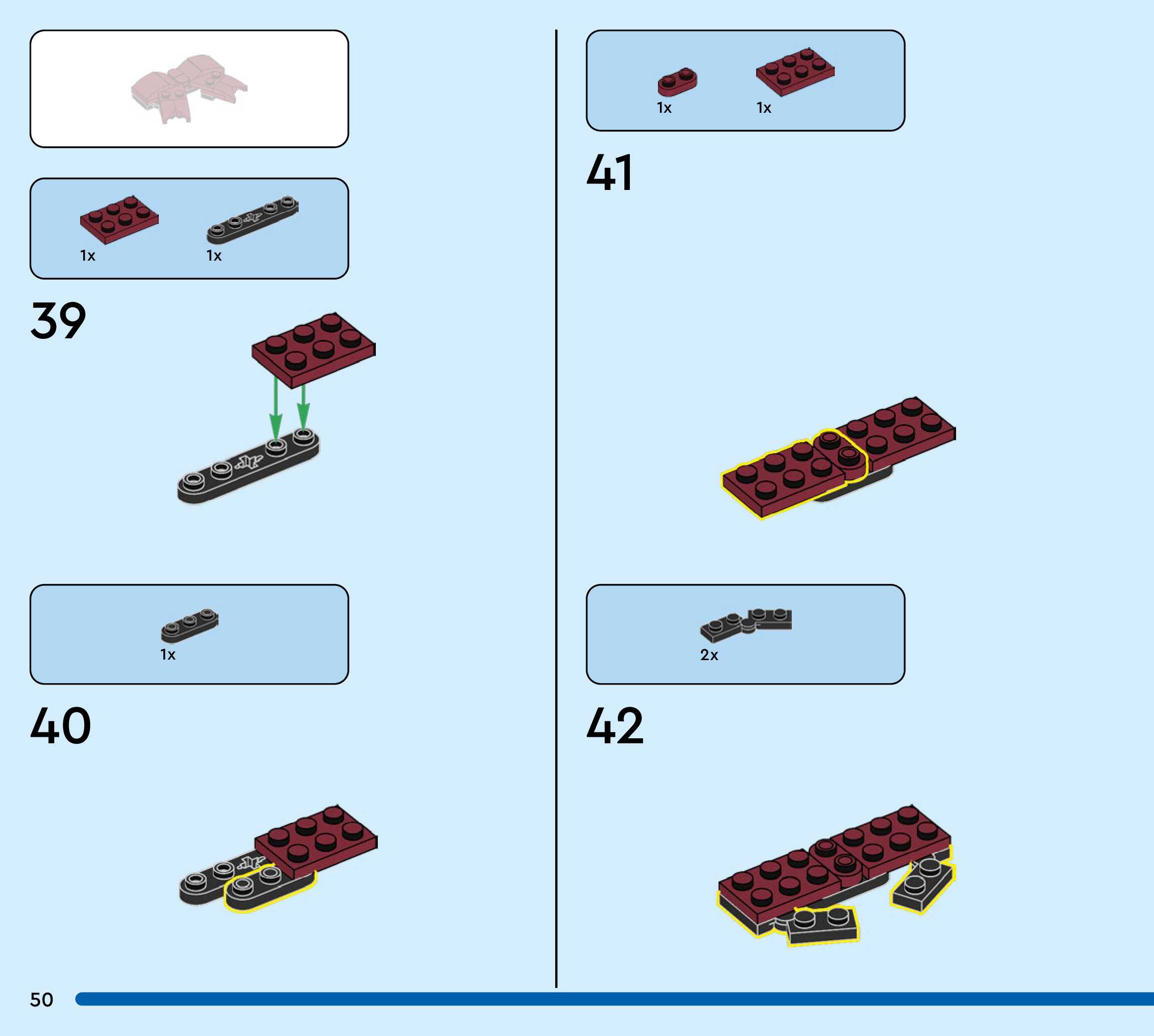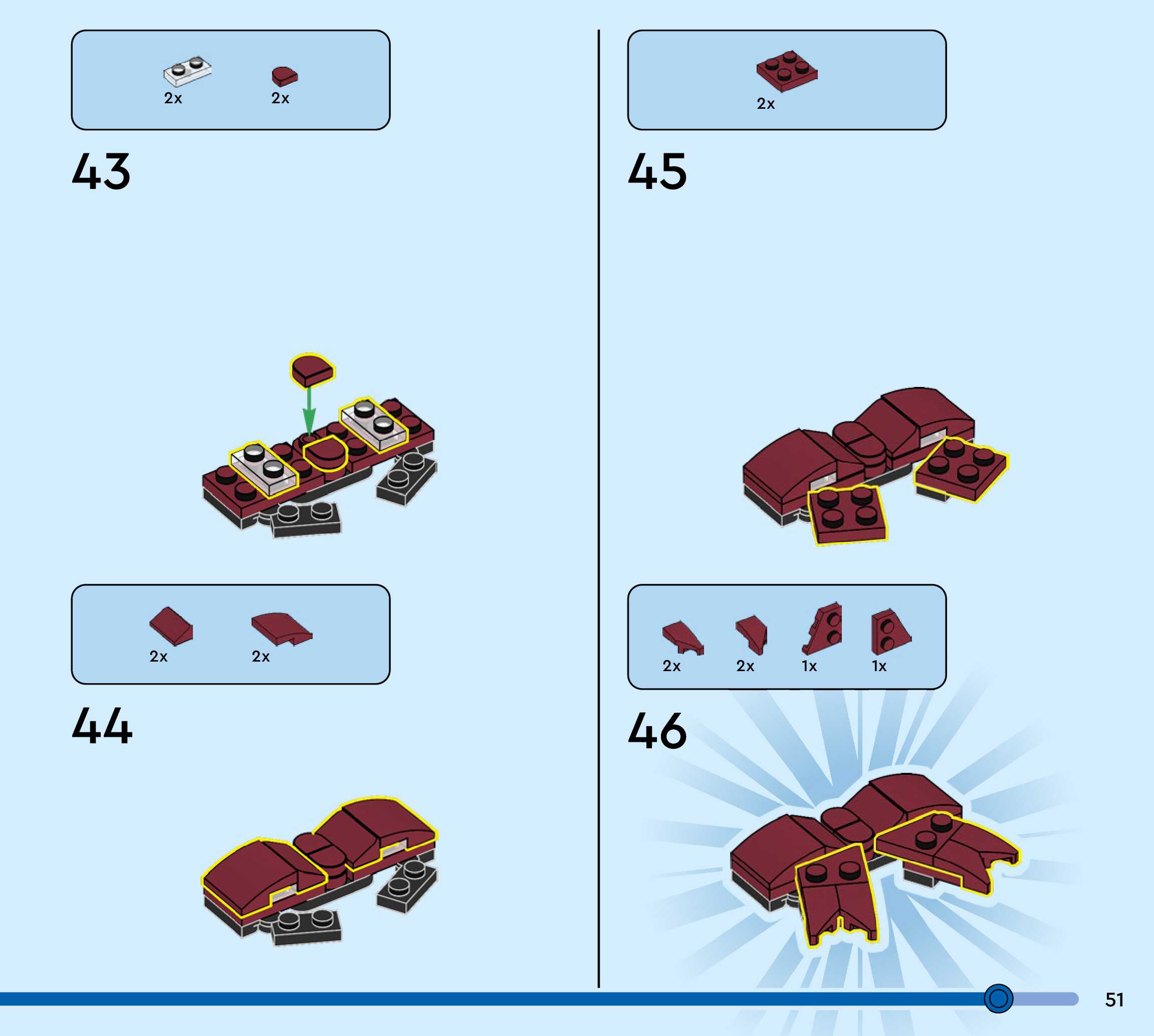 The assembly guide is prepared in a very understandable way for children and adult LEGO enthusiasts. A total of 56 picture galleries are shown, explaining the step-by-step construction stages for 1 different structures.