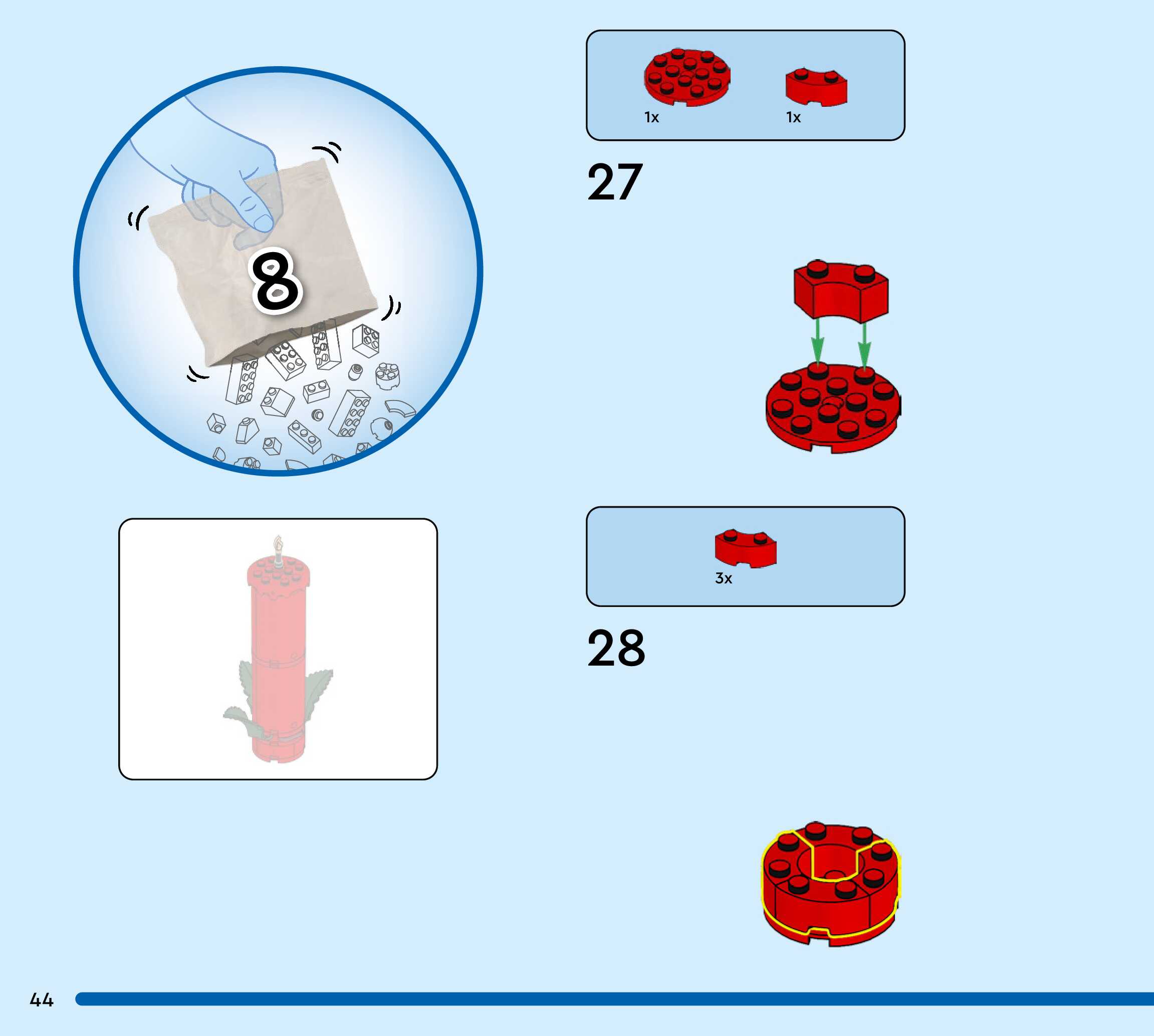 On this page you can find the original construction manual for the LEGO 40743 set. With the assembly manual you can easily learn how to build the Christmas Table Decoration step by step. The set was released in 2024.