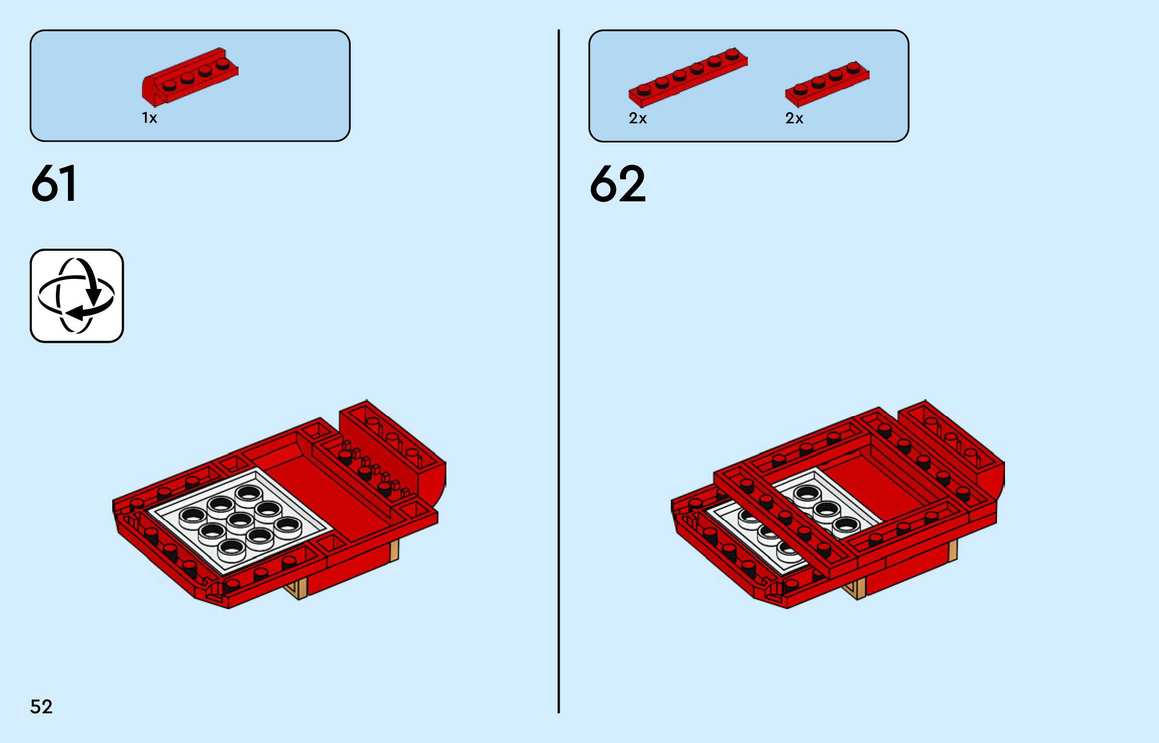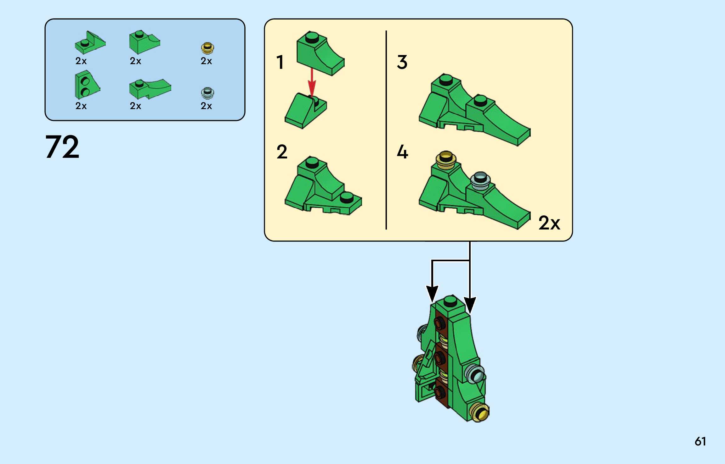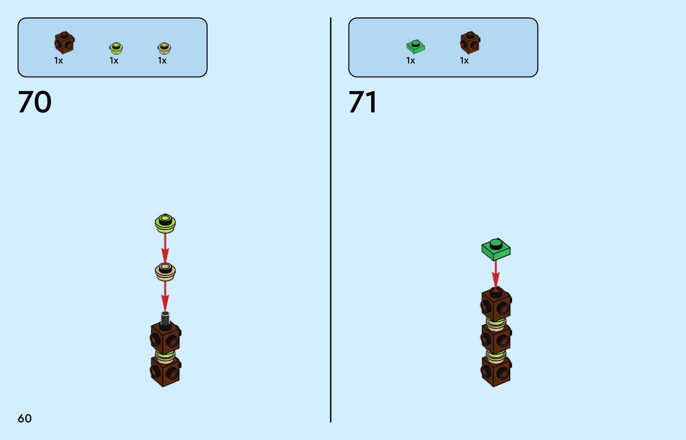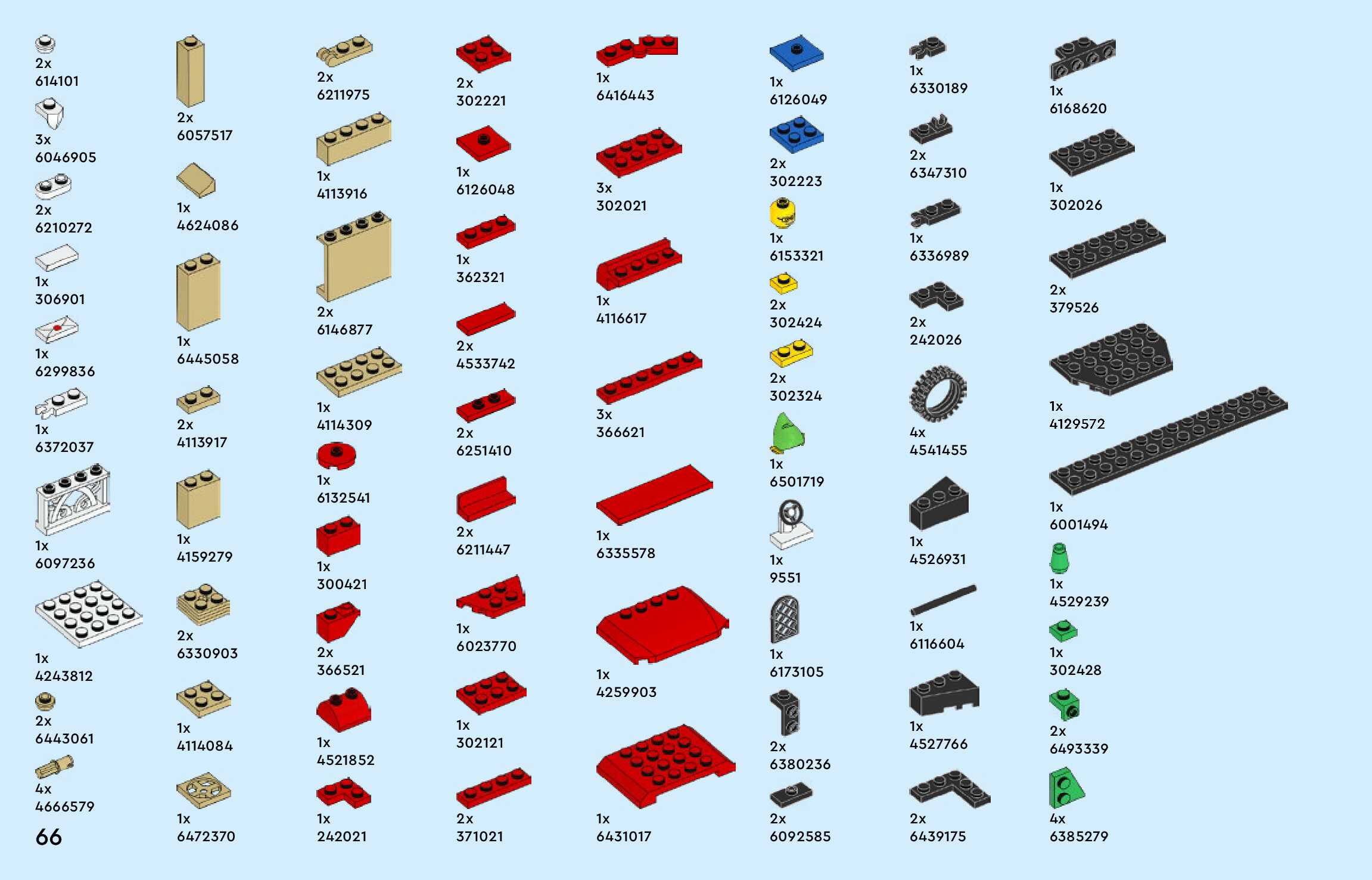 The assembly guide is prepared in a very understandable way for children and adult LEGO enthusiasts. A total of 68 picture galleries are shown, explaining the step-by-step construction stages for 1 different structures.