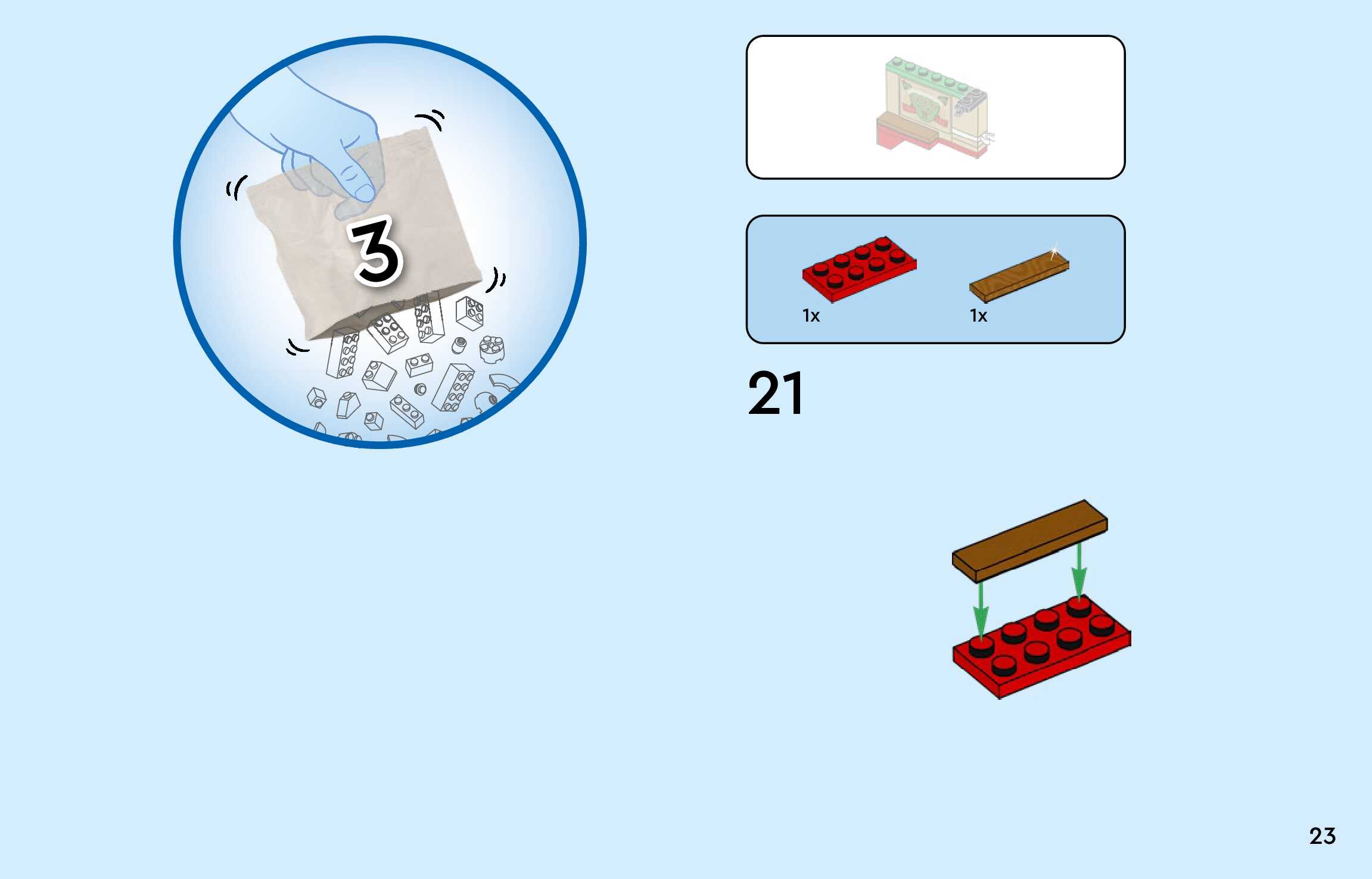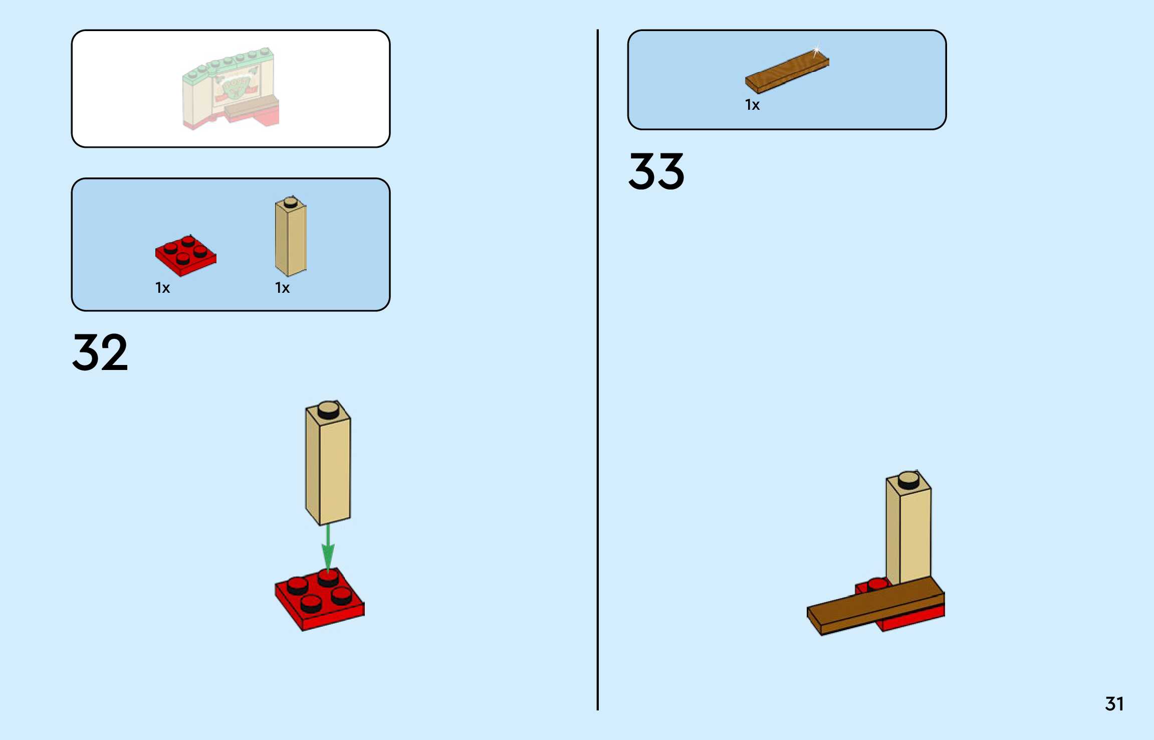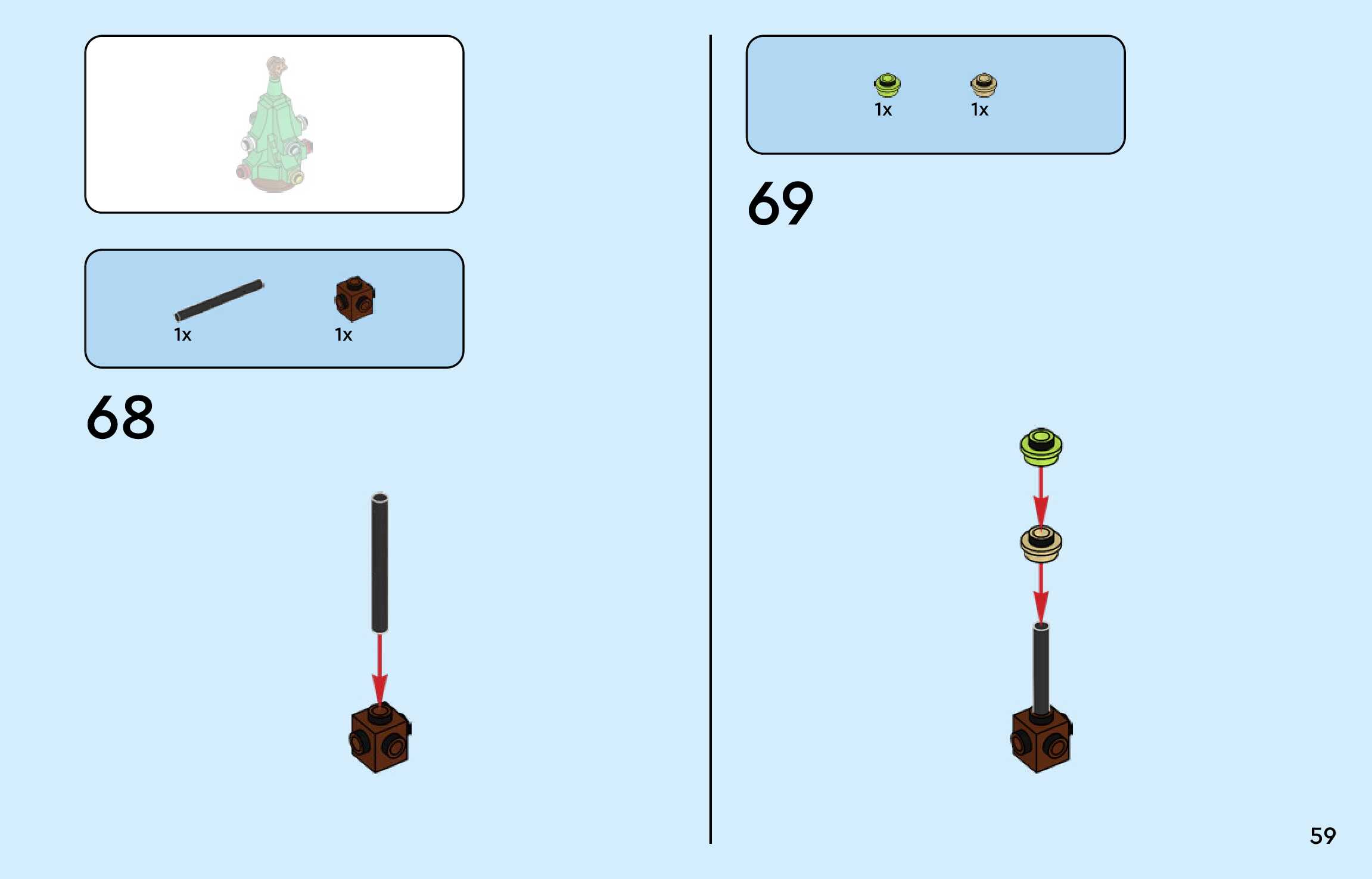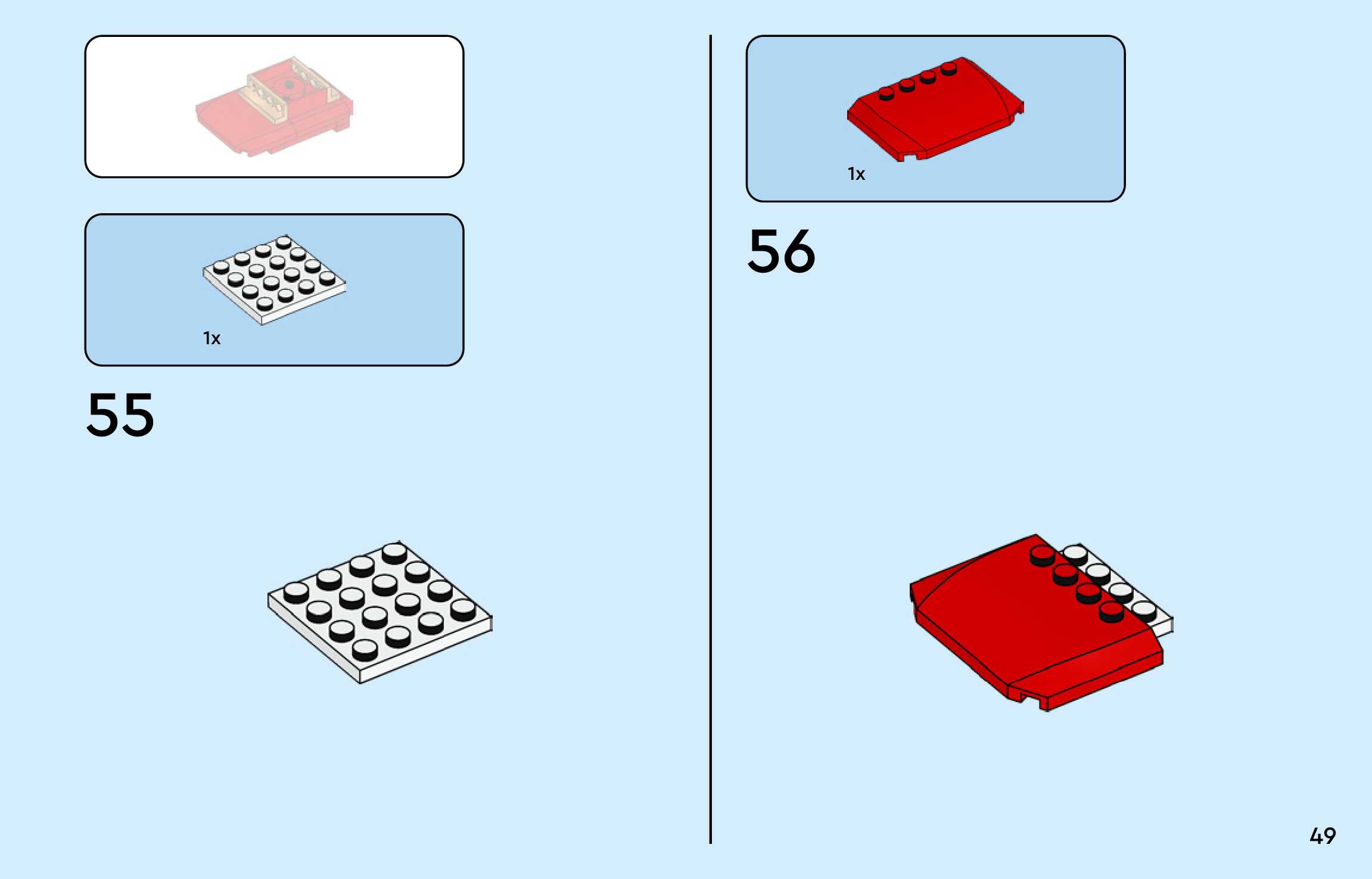 The assembly guide is prepared in a very understandable way for children and adult LEGO enthusiasts. A total of 68 picture galleries are shown, explaining the step-by-step construction stages for 1 different structures.