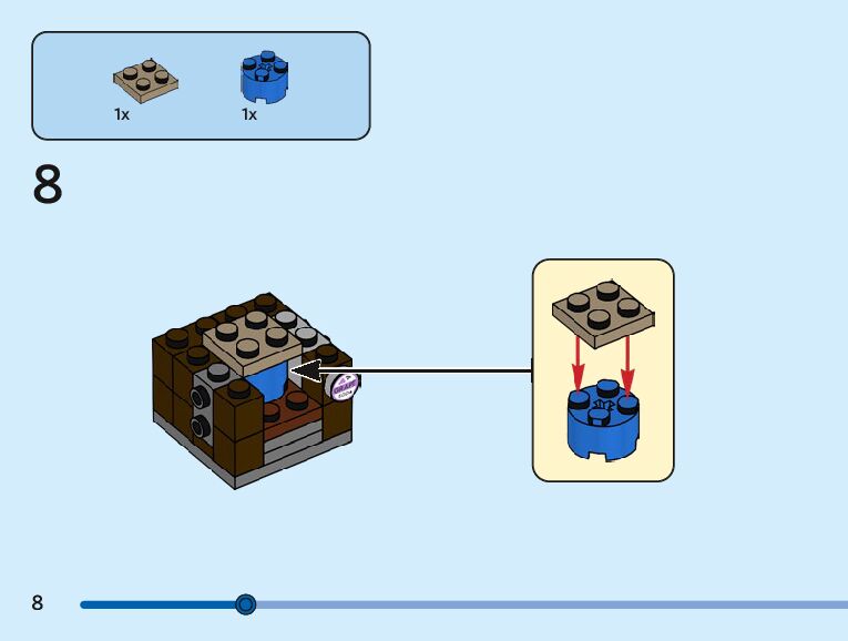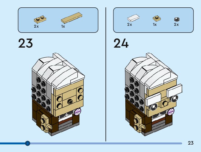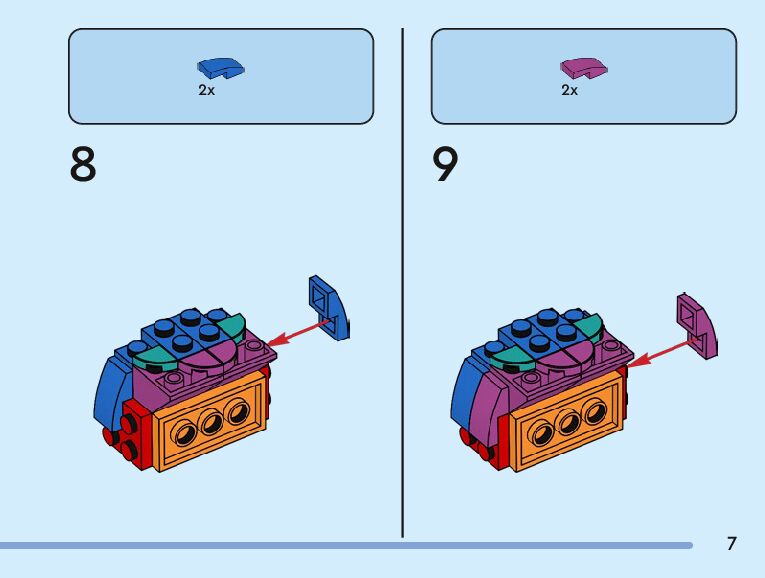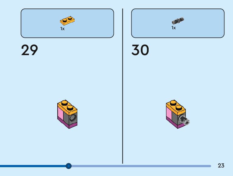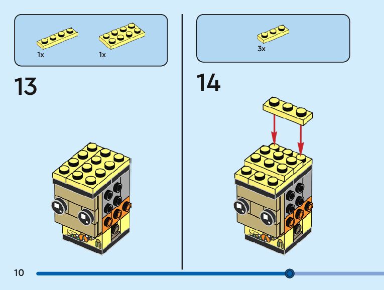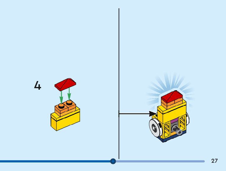 The assembly guide is prepared in a very understandable way for children and adult LEGO enthusiasts. A total of 104 picture galleries are shown, explaining the step-by-step construction stages for 3 different structures.