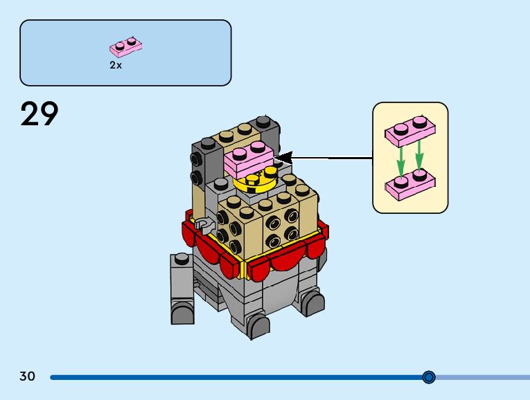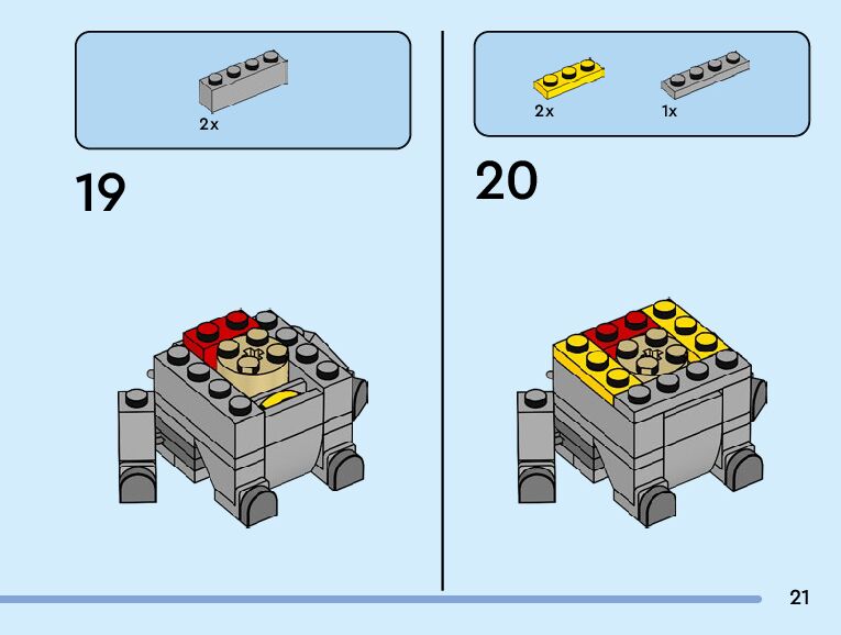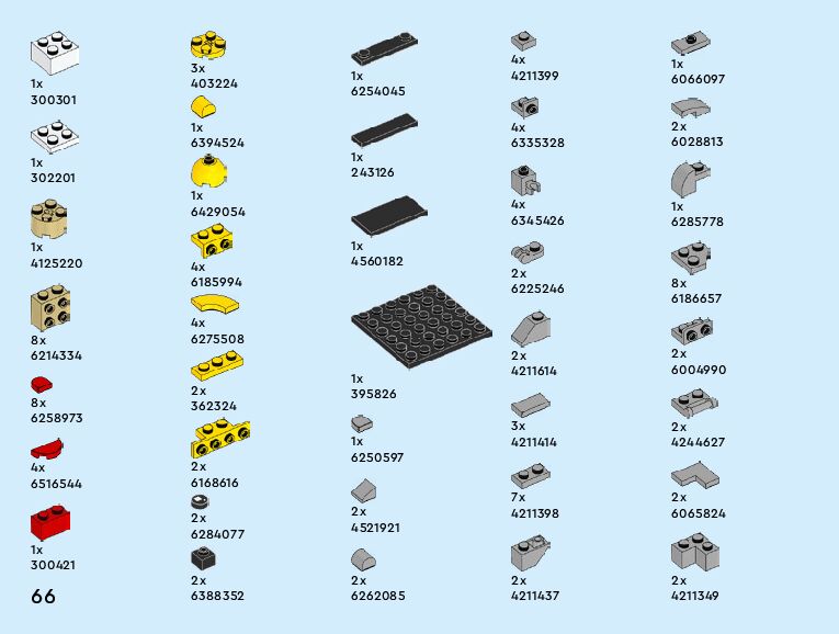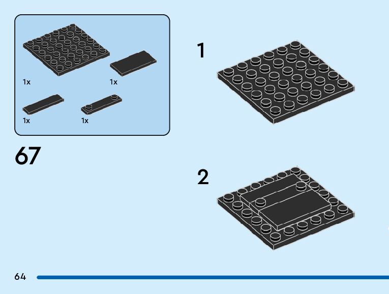 The assembly guide is prepared in a very understandable way for children and adult LEGO enthusiasts. A total of 68 picture galleries are shown, explaining the step-by-step construction stages for 1 different structures.