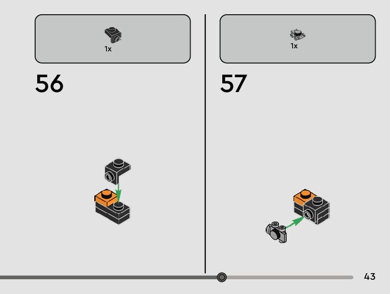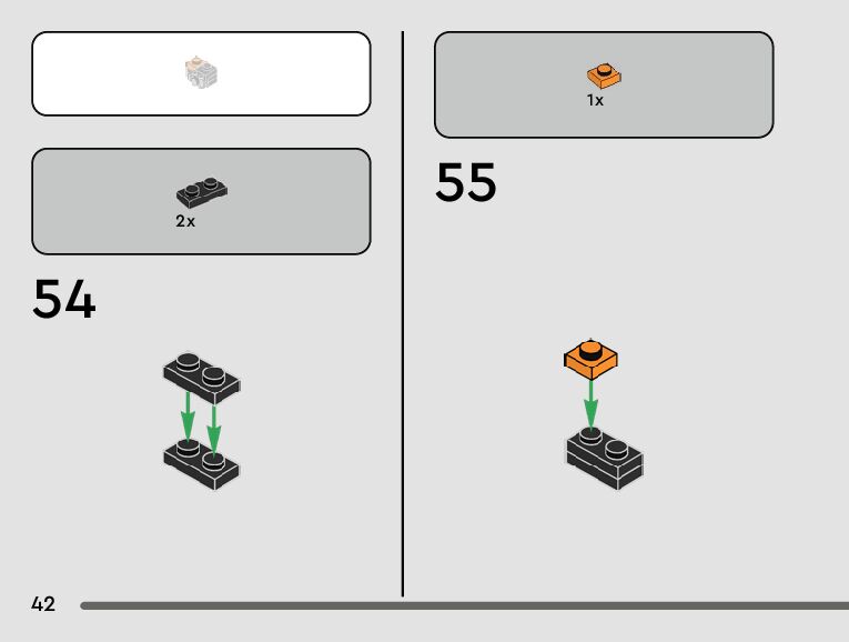 The assembly guide is prepared in a very understandable way for children and adult LEGO enthusiasts. A total of 56 picture galleries are shown, explaining the step-by-step construction stages for 1 different structures.