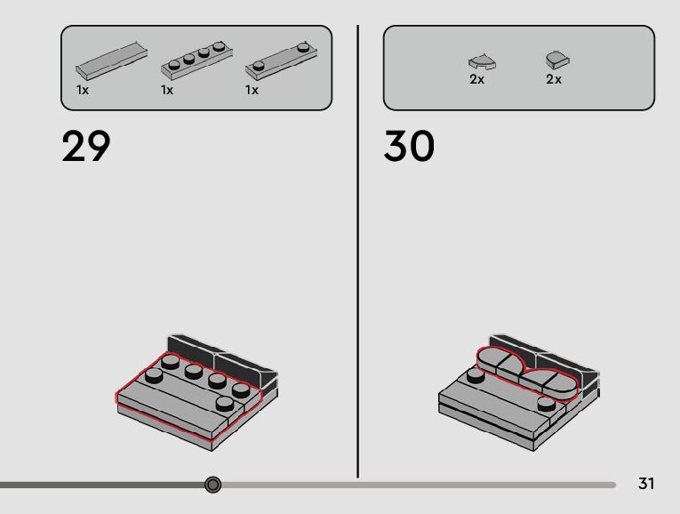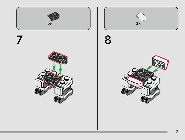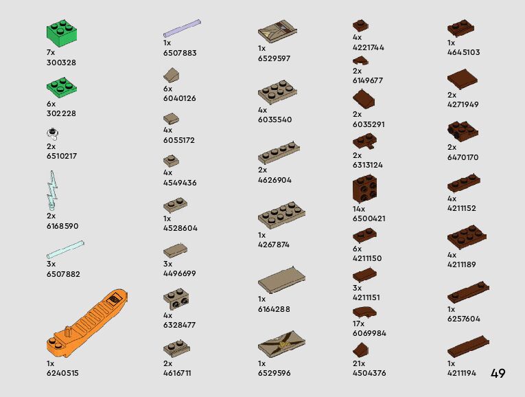 The assembly guide is prepared in a very understandable way for children and adult LEGO enthusiasts. A total of 228 picture galleries are shown, explaining the step-by-step construction stages for 5 different structures.