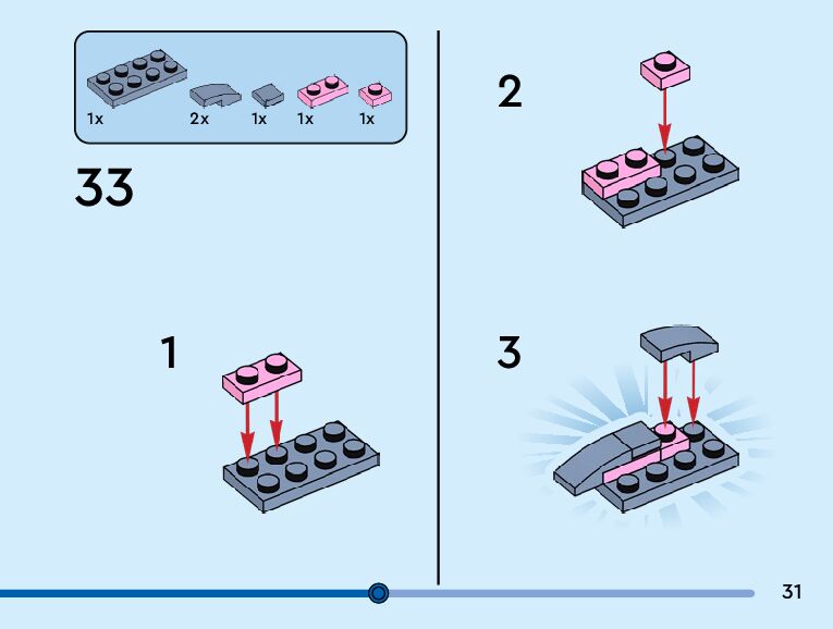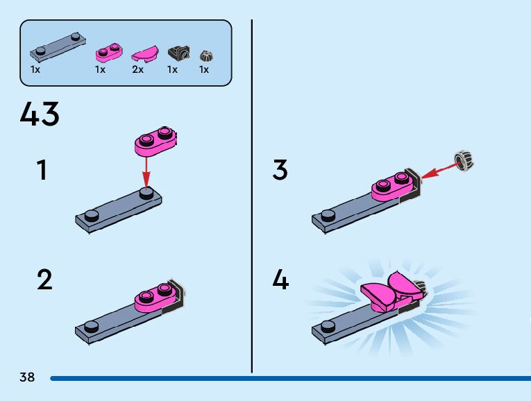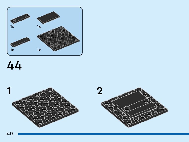 The assembly guide is prepared in a very understandable way for children and adult LEGO enthusiasts. A total of 44 picture galleries are shown, explaining the step-by-step construction stages for 1 different structures.