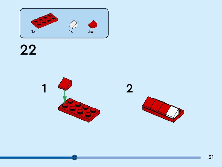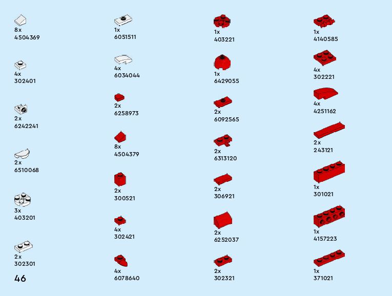 The assembly guide is prepared in a very understandable way for children and adult LEGO enthusiasts. A total of 48 picture galleries are shown, explaining the step-by-step construction stages for 1 different structures.