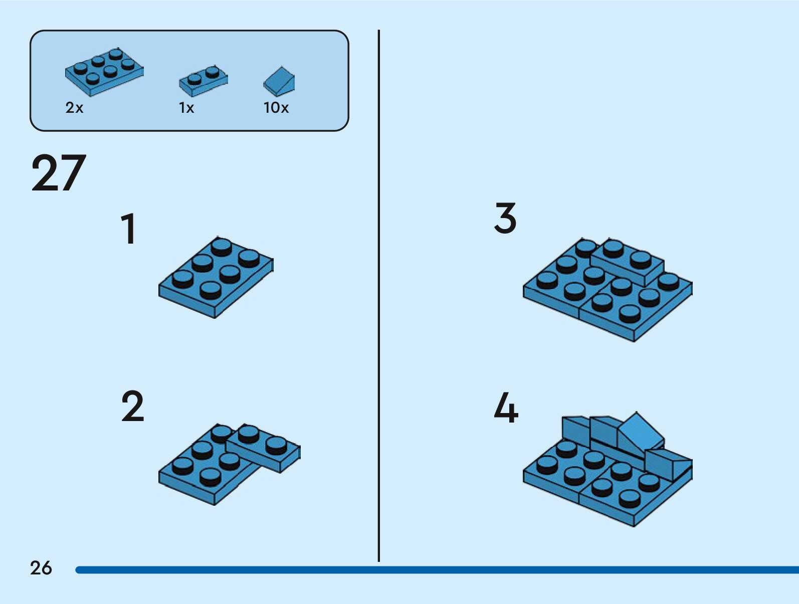 The assembly guide is prepared in a very understandable way for children and adult LEGO enthusiasts. A total of 48 picture galleries are shown, explaining the step-by-step construction stages for 1 different structures.