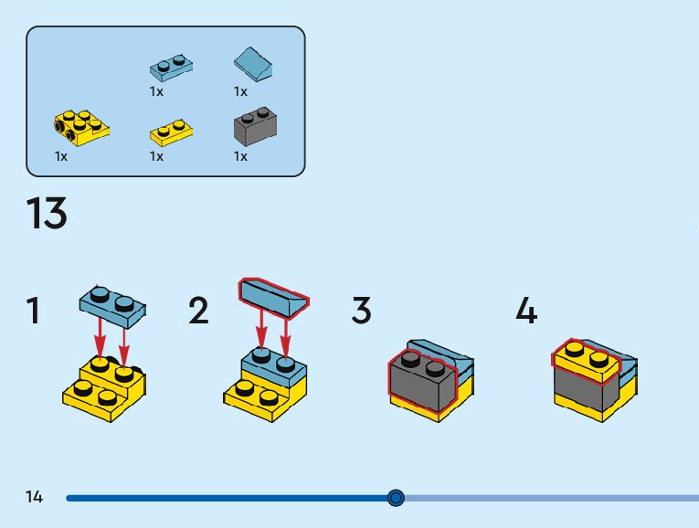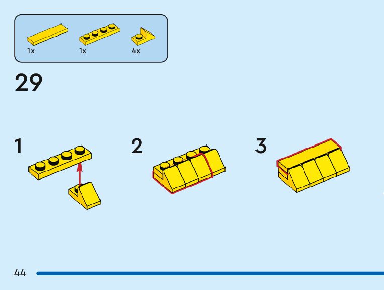 The assembly guide is prepared in a very understandable way for children and adult LEGO enthusiasts. A total of 108 picture galleries are shown, explaining the step-by-step construction stages for 2 different structures.