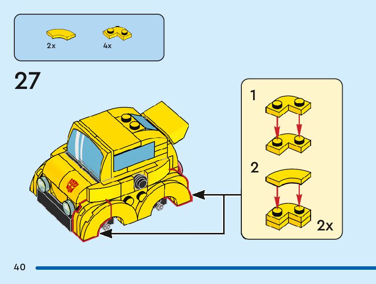 On this page you can find the original construction manual for the LEGO 40804 set. With the assembly manual you can easily learn how to build the Bumblebee Robot & Vehicle step by step. The set was released in 2025.