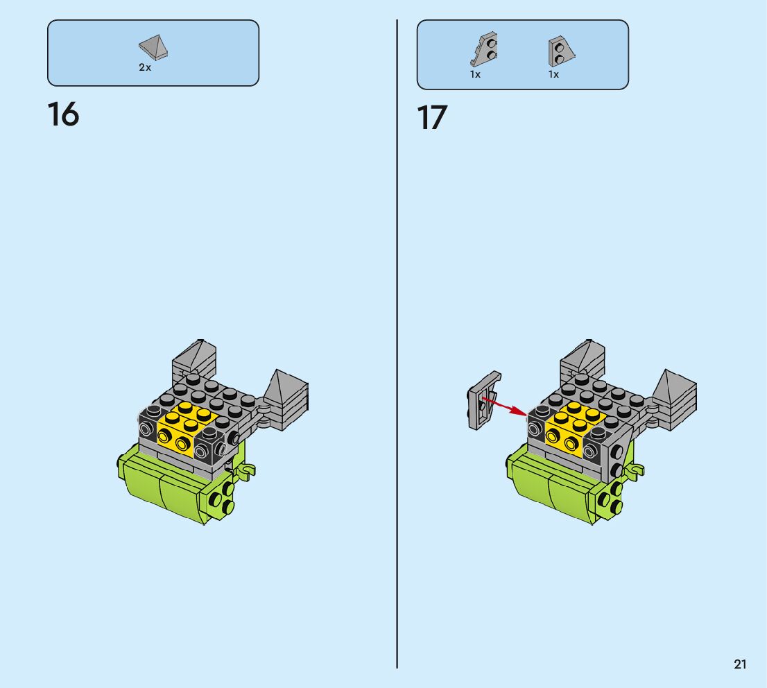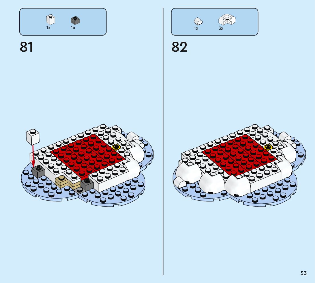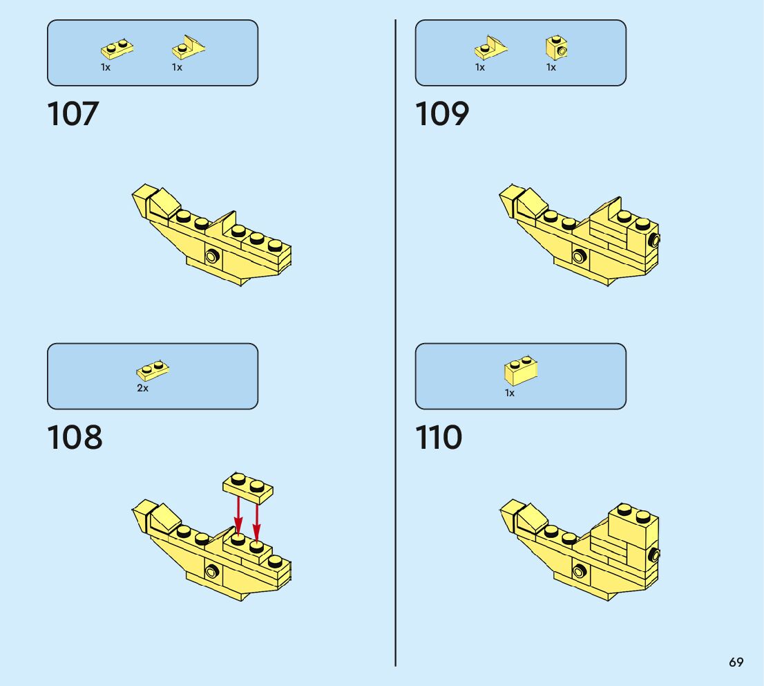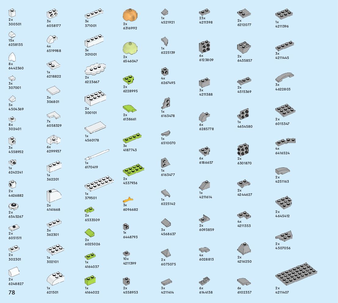 The assembly guide is prepared in a very understandable way for children and adult LEGO enthusiasts. A total of 80 picture galleries are shown, explaining the step-by-step construction stages for 1 different structures.