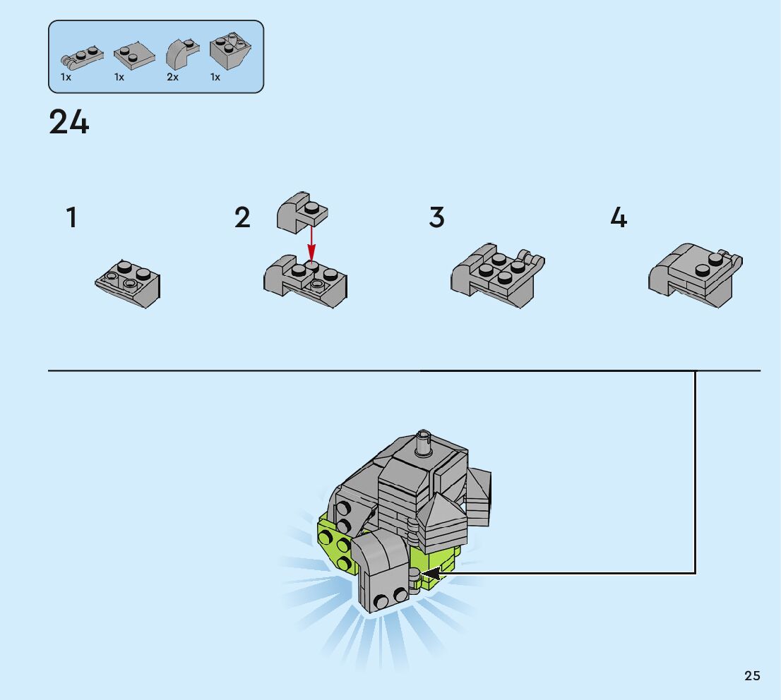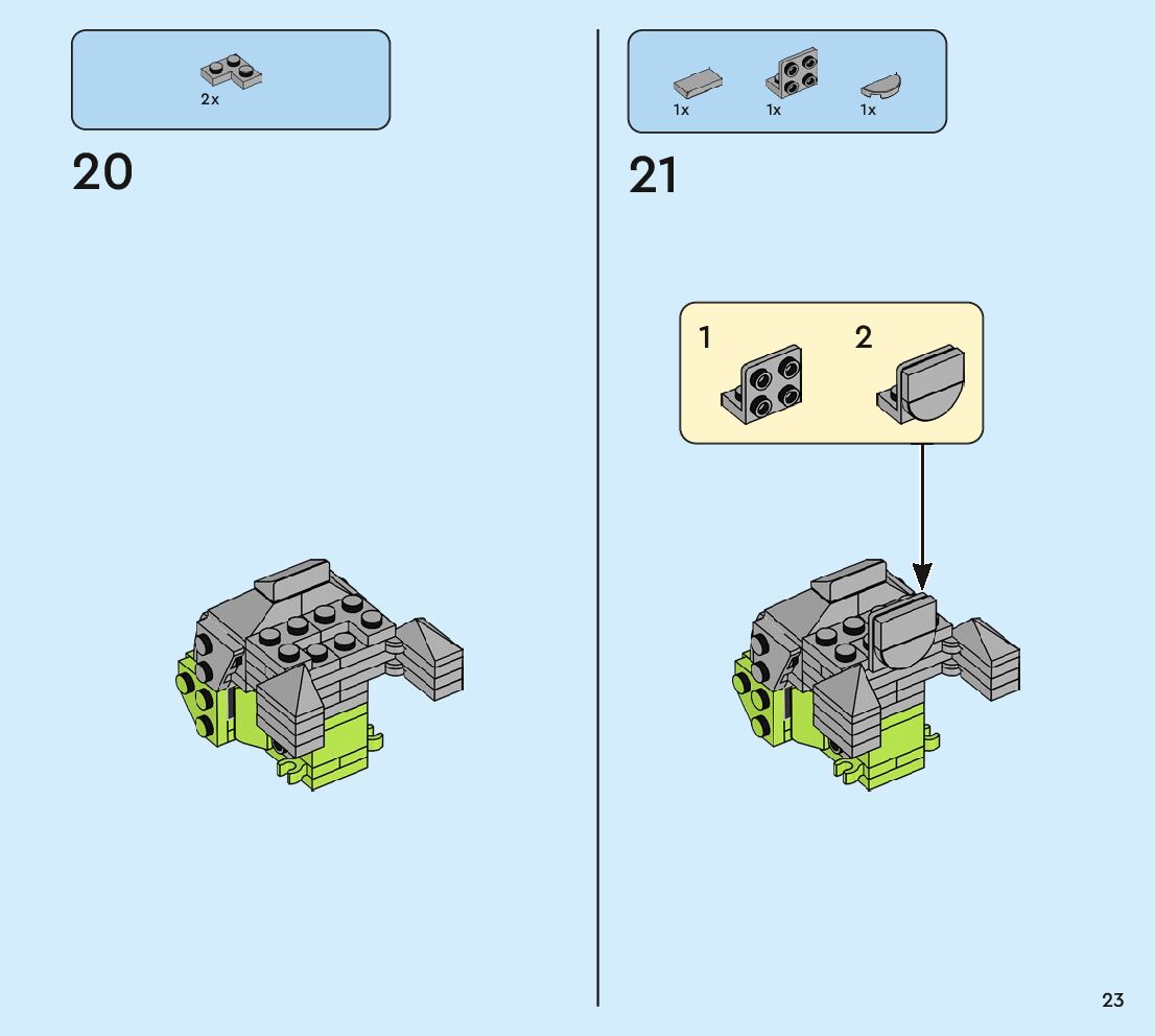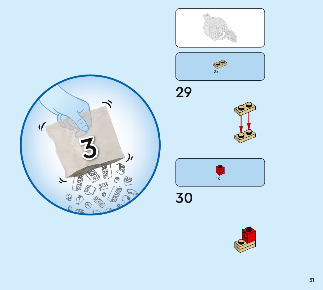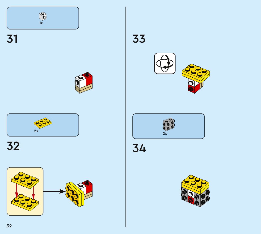 The assembly guide is prepared in a very understandable way for children and adult LEGO enthusiasts. A total of 80 picture galleries are shown, explaining the step-by-step construction stages for 1 different structures.
