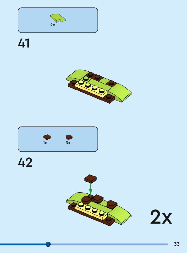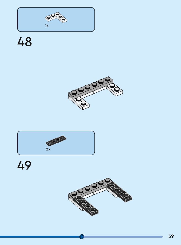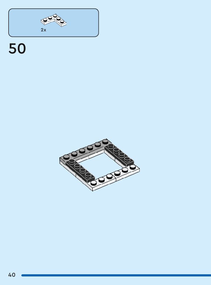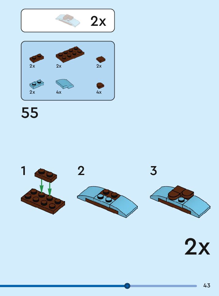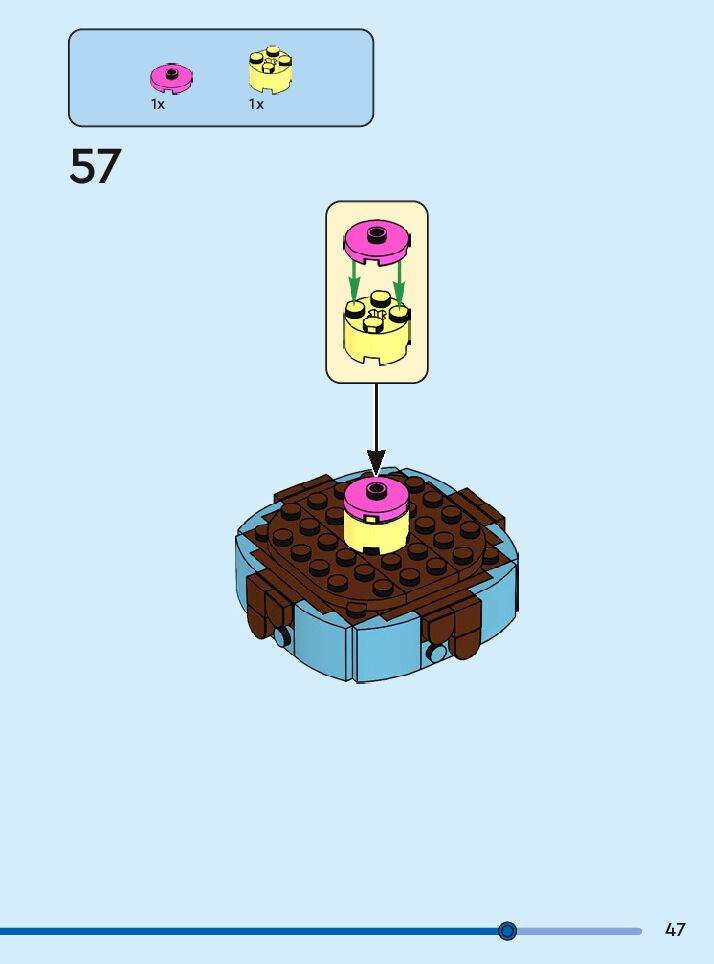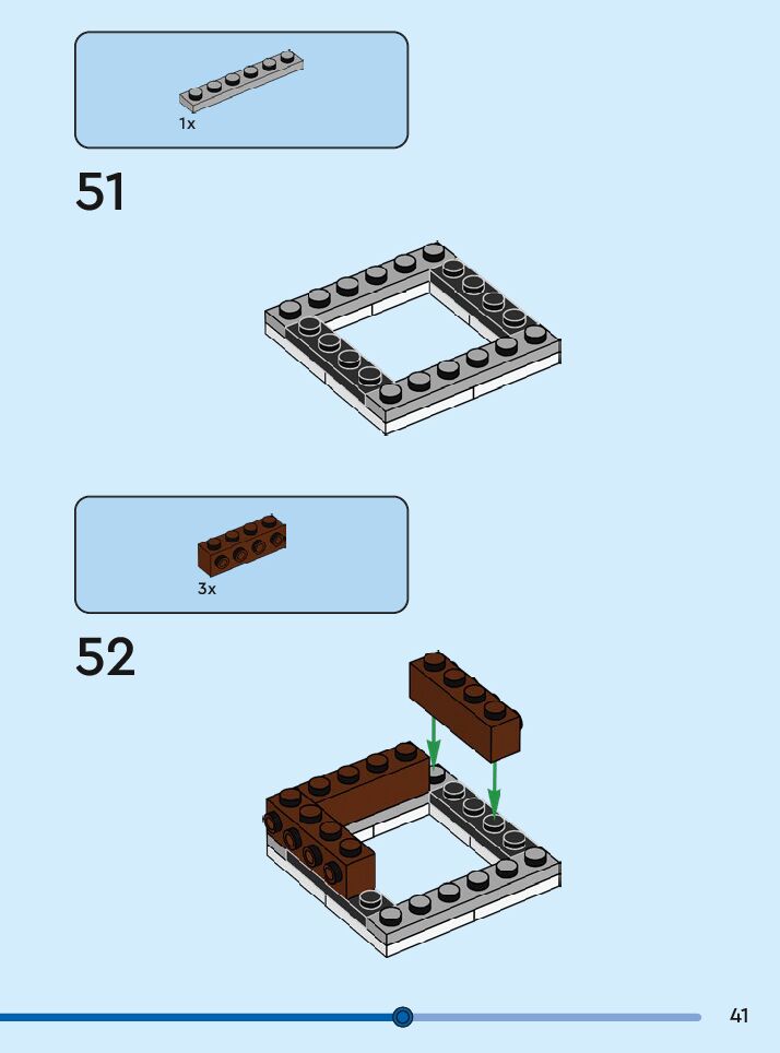 The assembly guide is prepared in a very understandable way for children and adult LEGO enthusiasts. A total of 56 picture galleries are shown, explaining the step-by-step construction stages for 1 different structures.