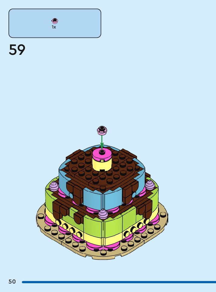 On this page you can find the original construction manual for the LEGO 40815 set. With the assembly manual you can easily learn how to build the Birthday Party Cake step by step. The set was released in 2025.
