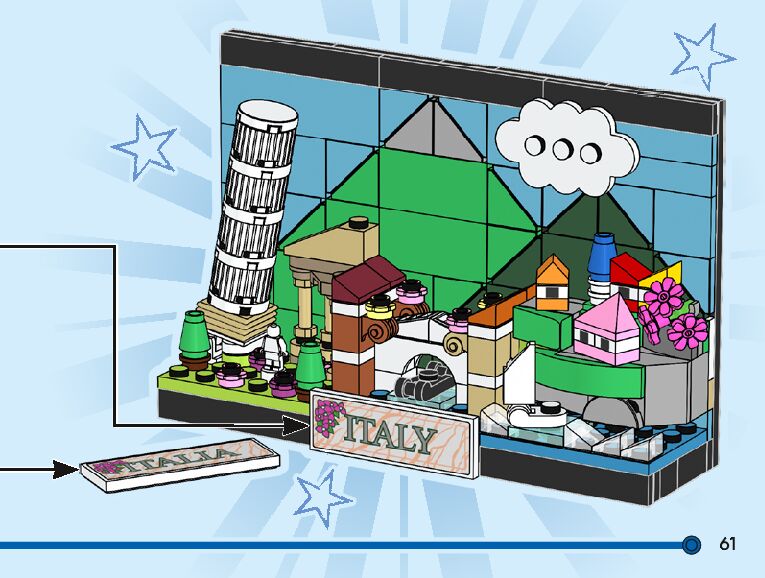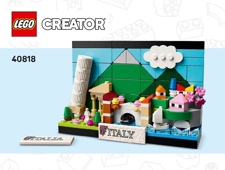 This page shares information about LEGO Italy Postcard manual, LEGO 40818 PDF instructions, LEGO Italy Postcard building guide online, How to build Italy Postcard LEGO.