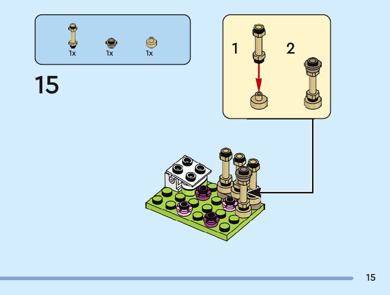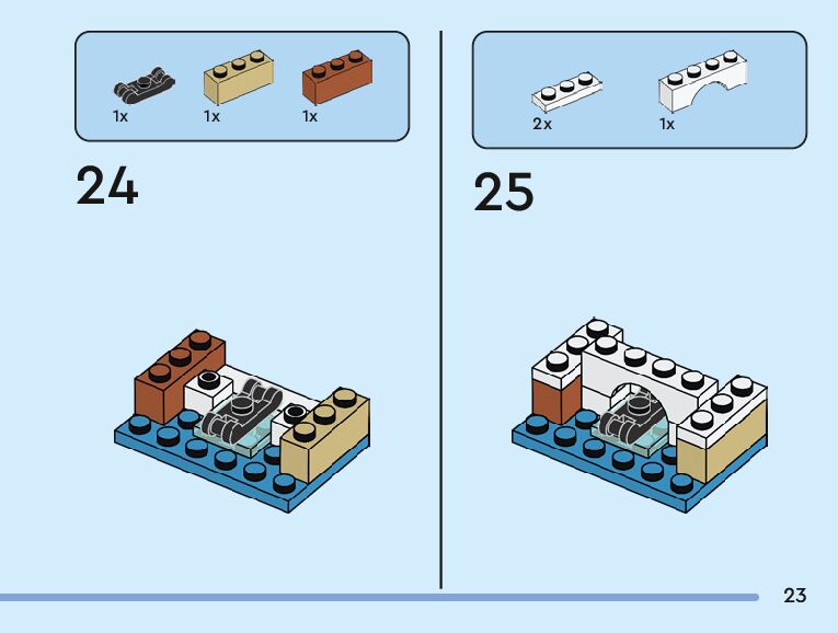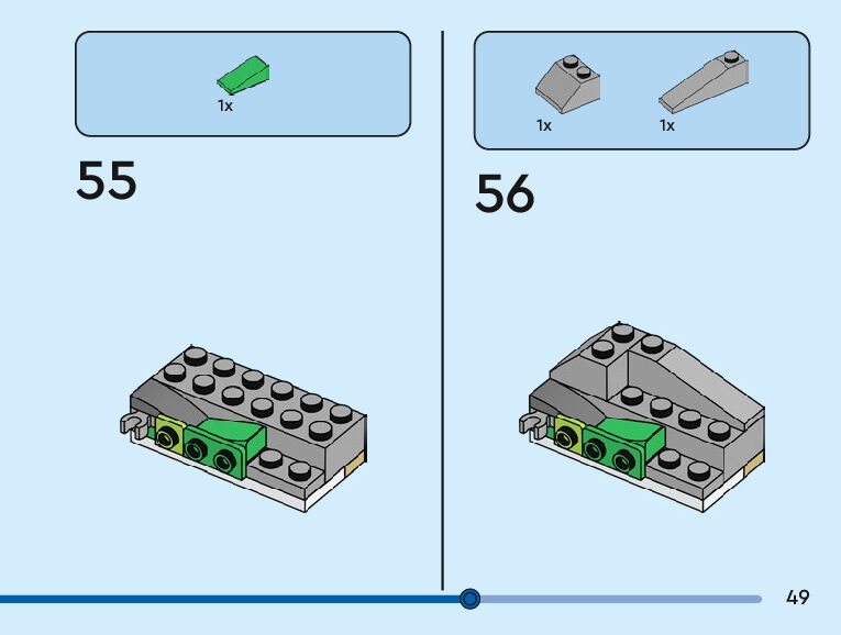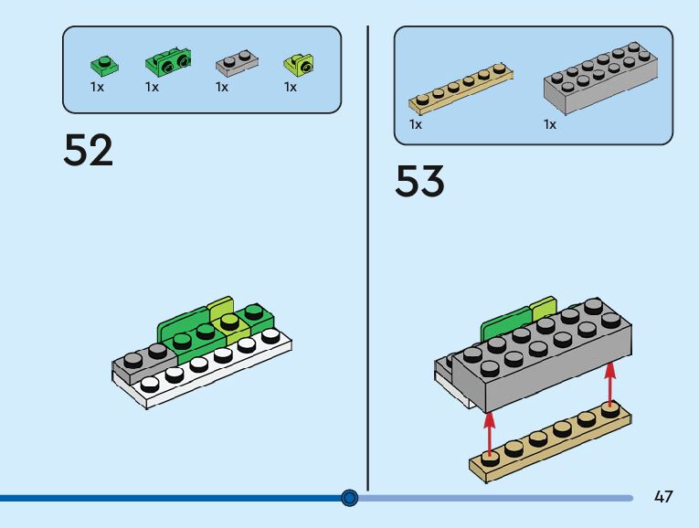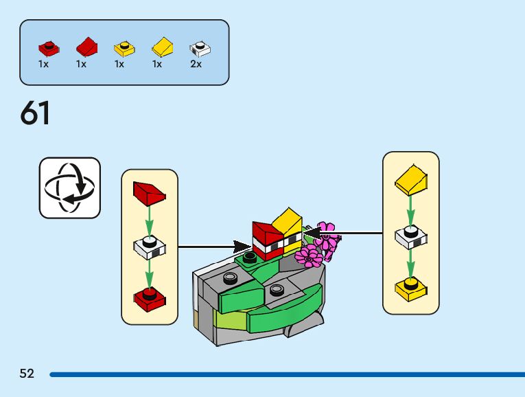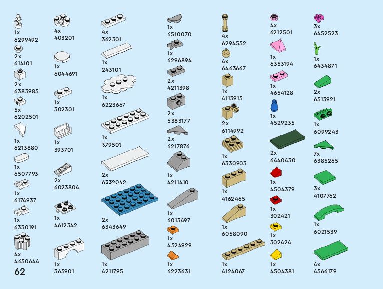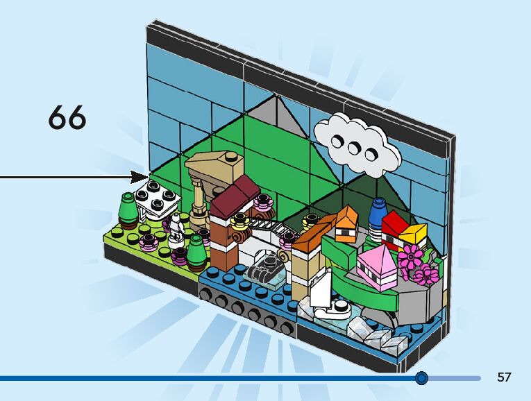 The assembly guide is prepared in a very understandable way for children and adult LEGO enthusiasts. A total of 64 picture galleries are shown, explaining the step-by-step construction stages for 1 different structures.