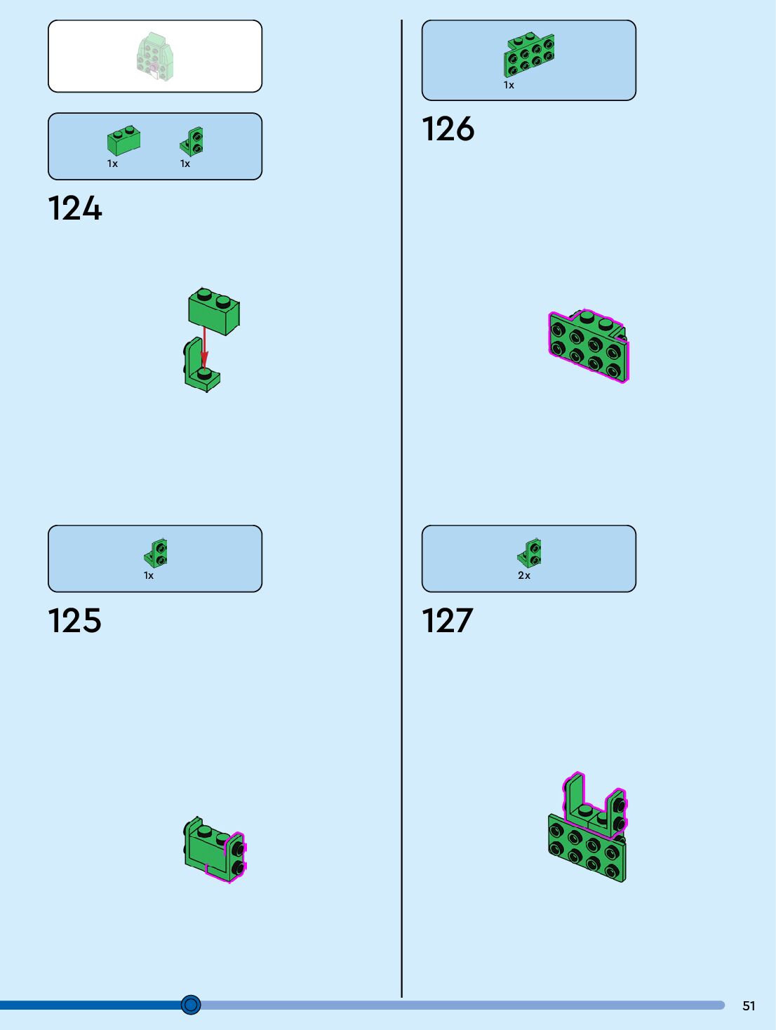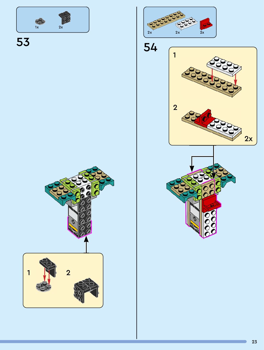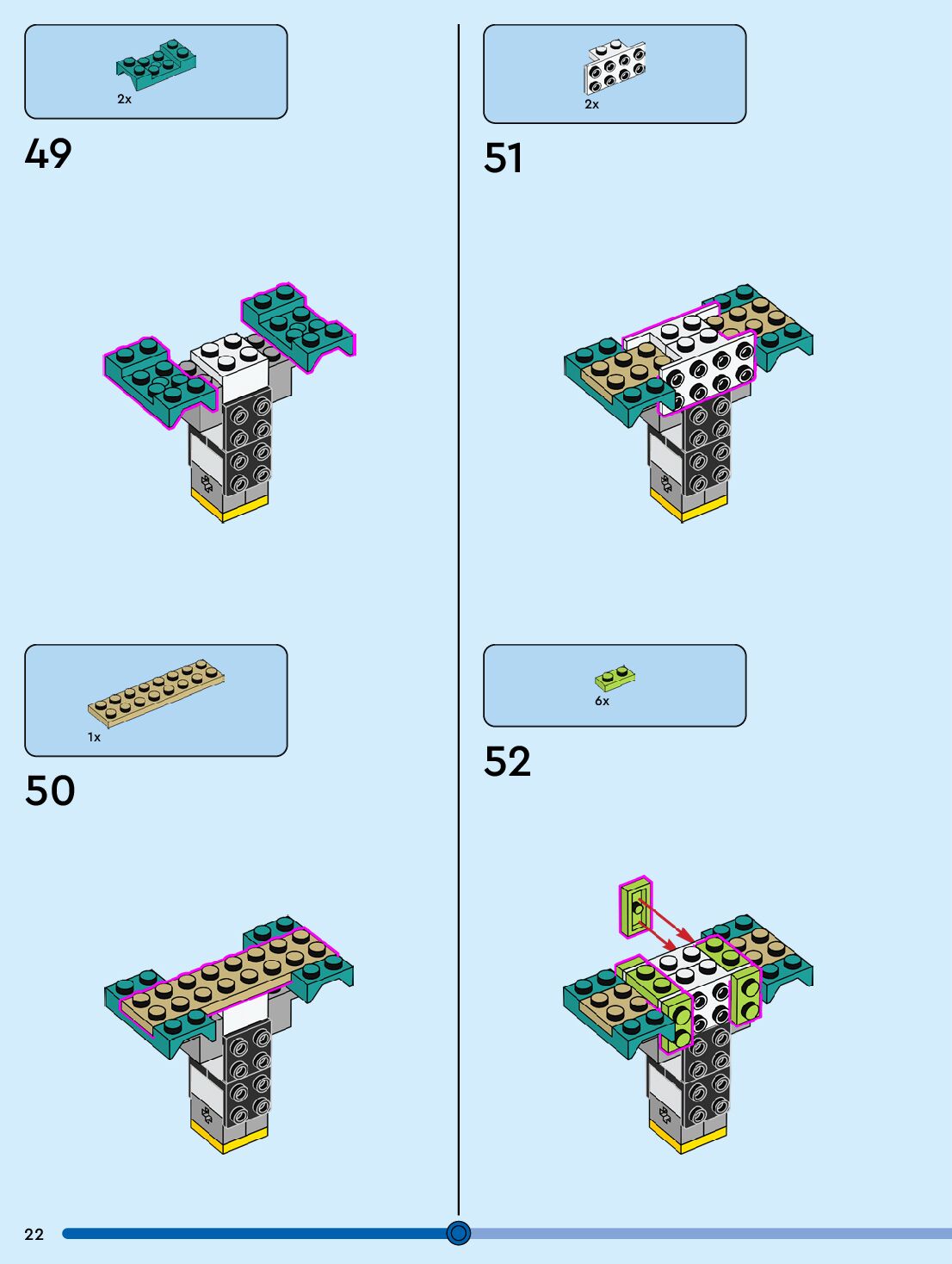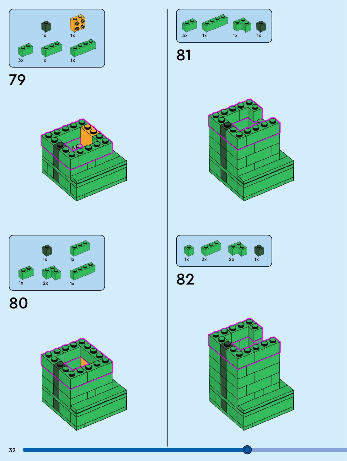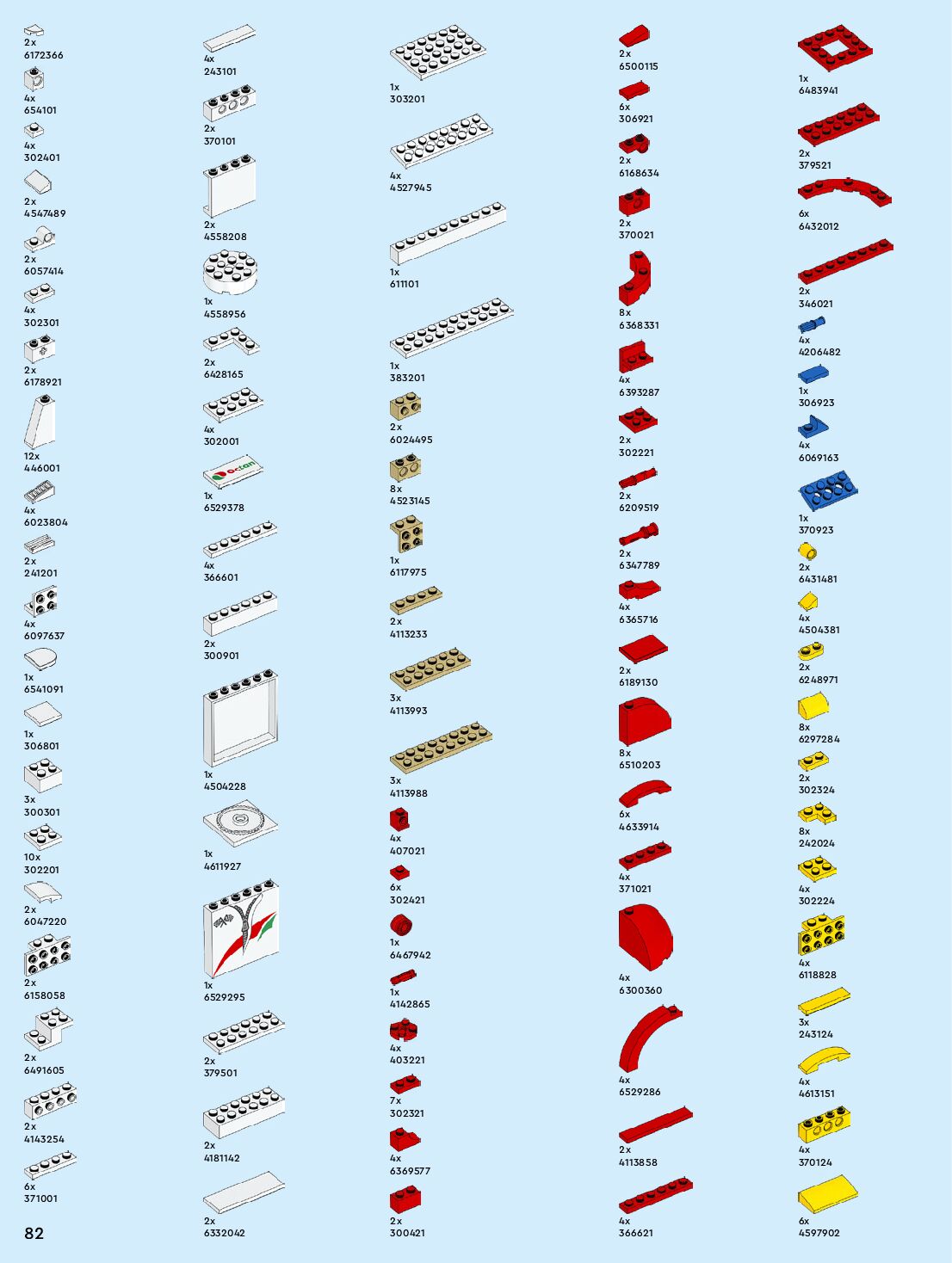 The assembly guide is prepared in a very understandable way for children and adult LEGO enthusiasts. A total of 84 picture galleries are shown, explaining the step-by-step construction stages for 1 different structures.