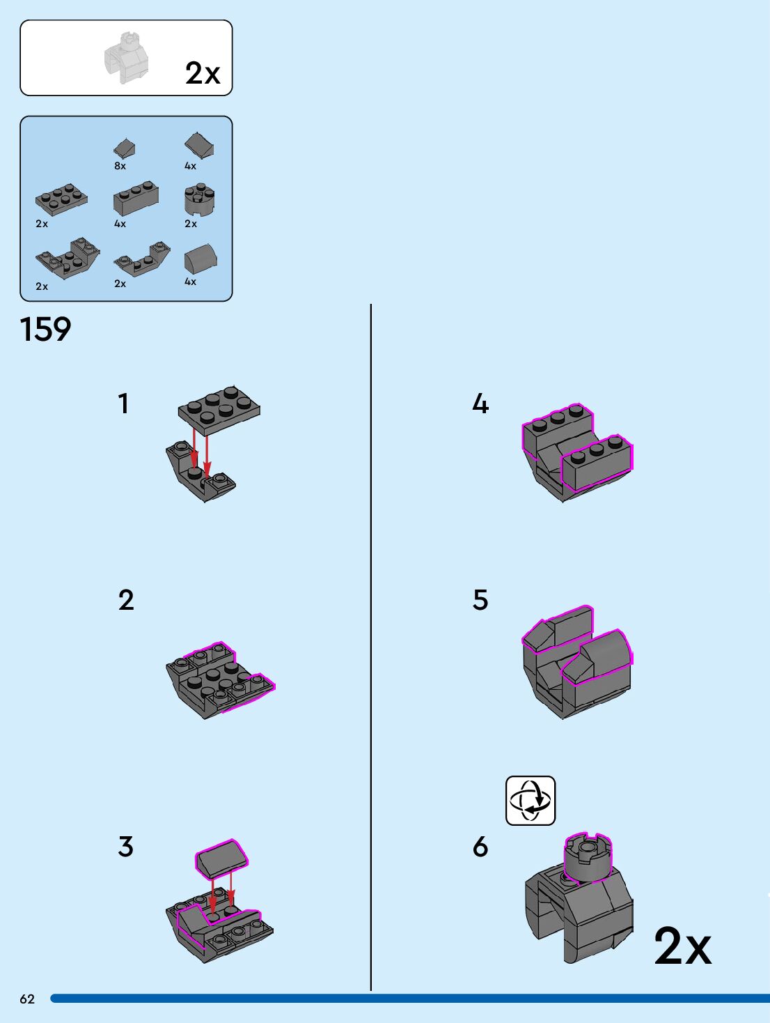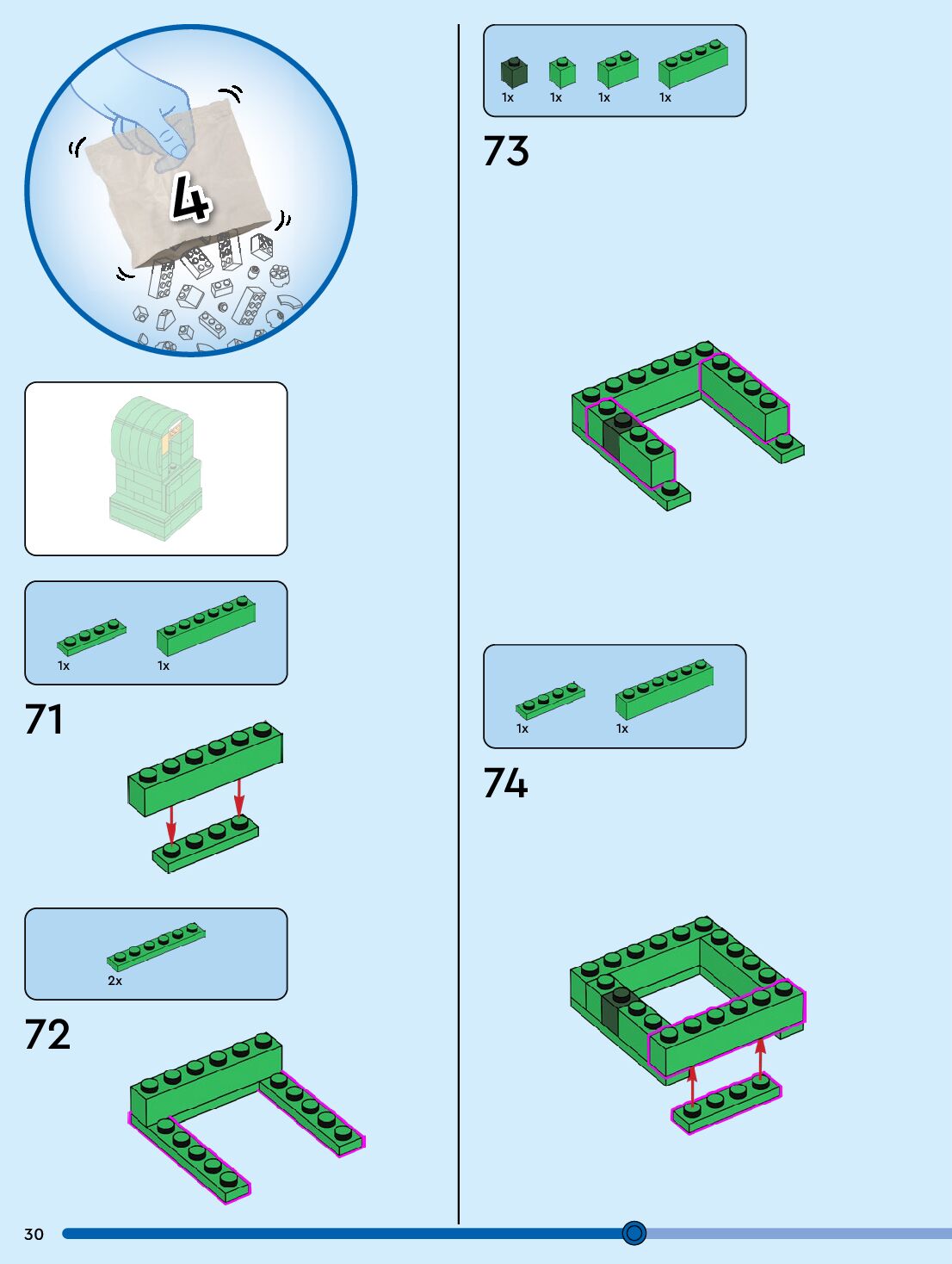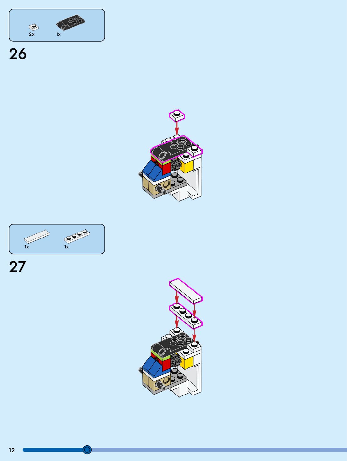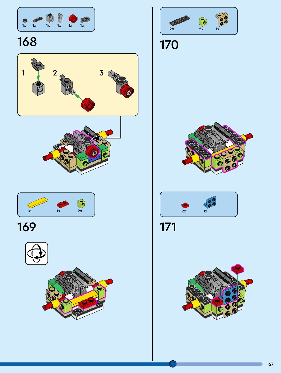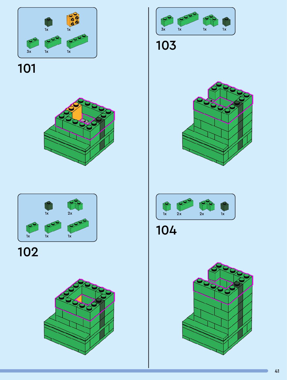 The assembly guide is prepared in a very understandable way for children and adult LEGO enthusiasts. A total of 84 picture galleries are shown, explaining the step-by-step construction stages for 1 different structures.