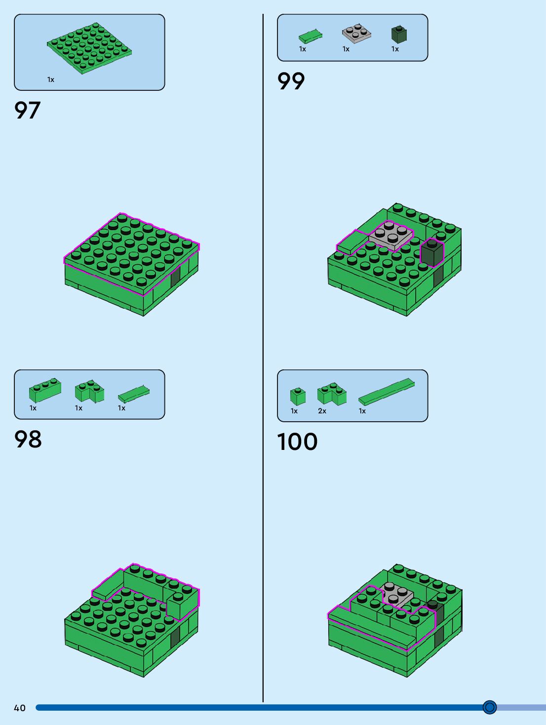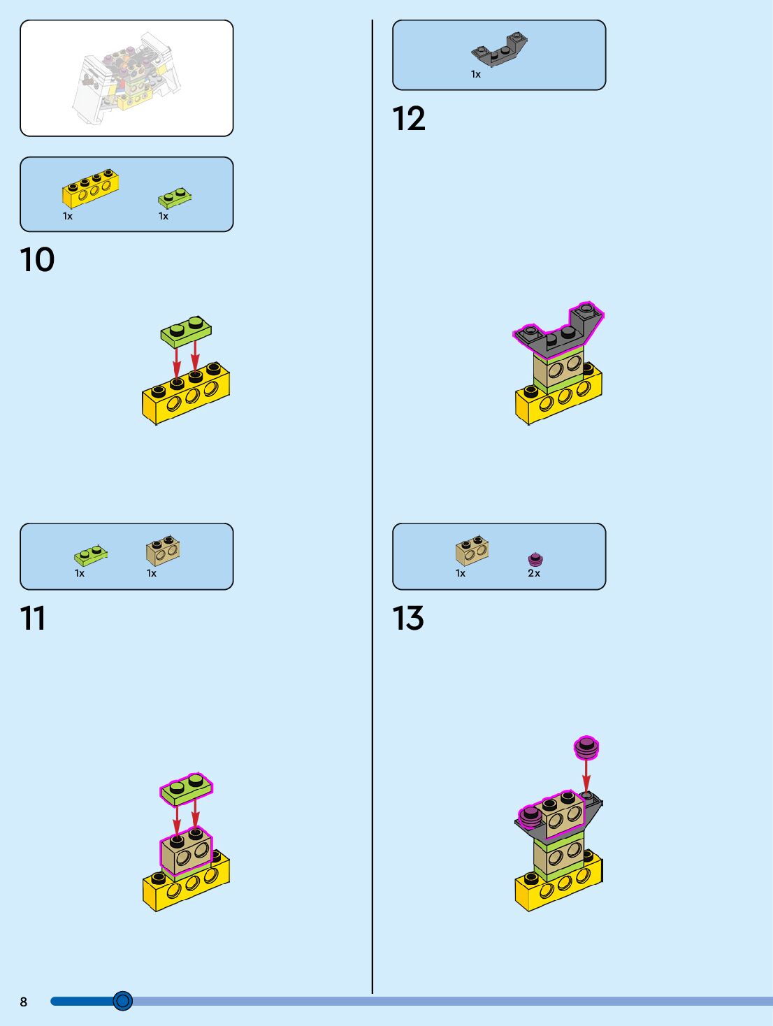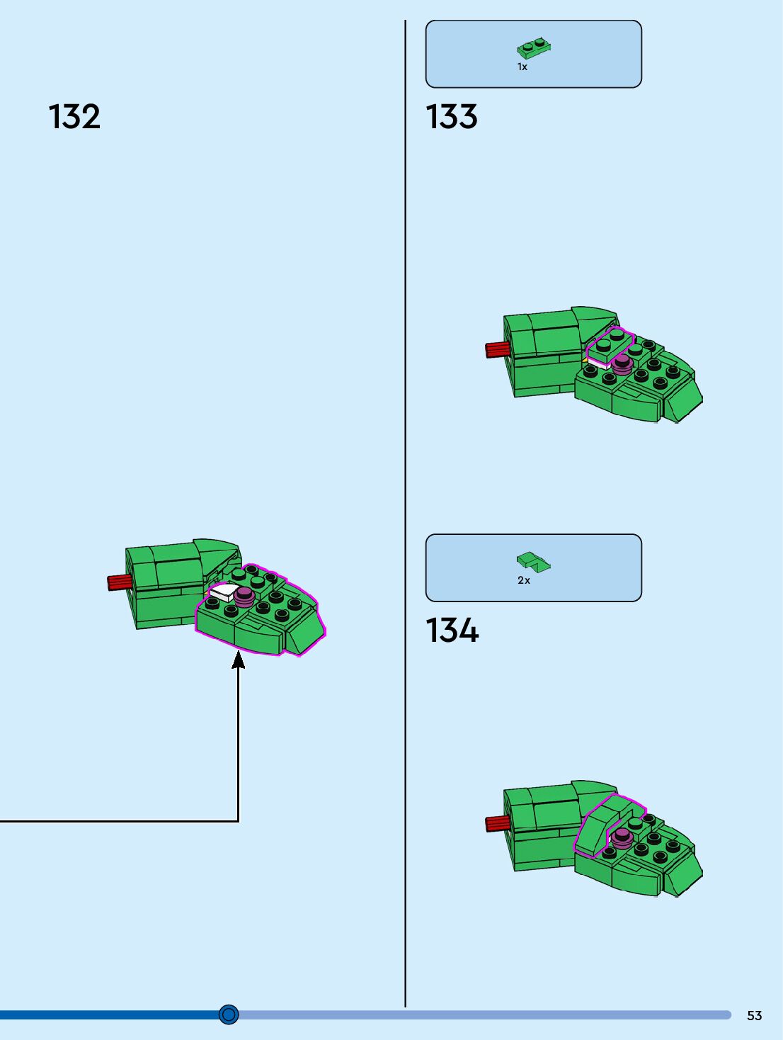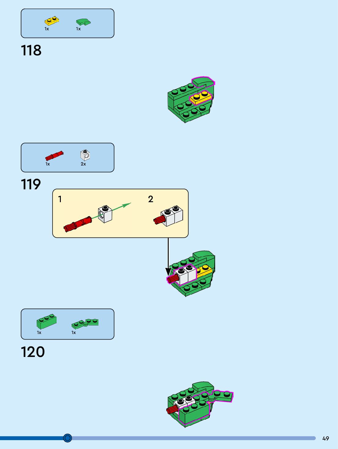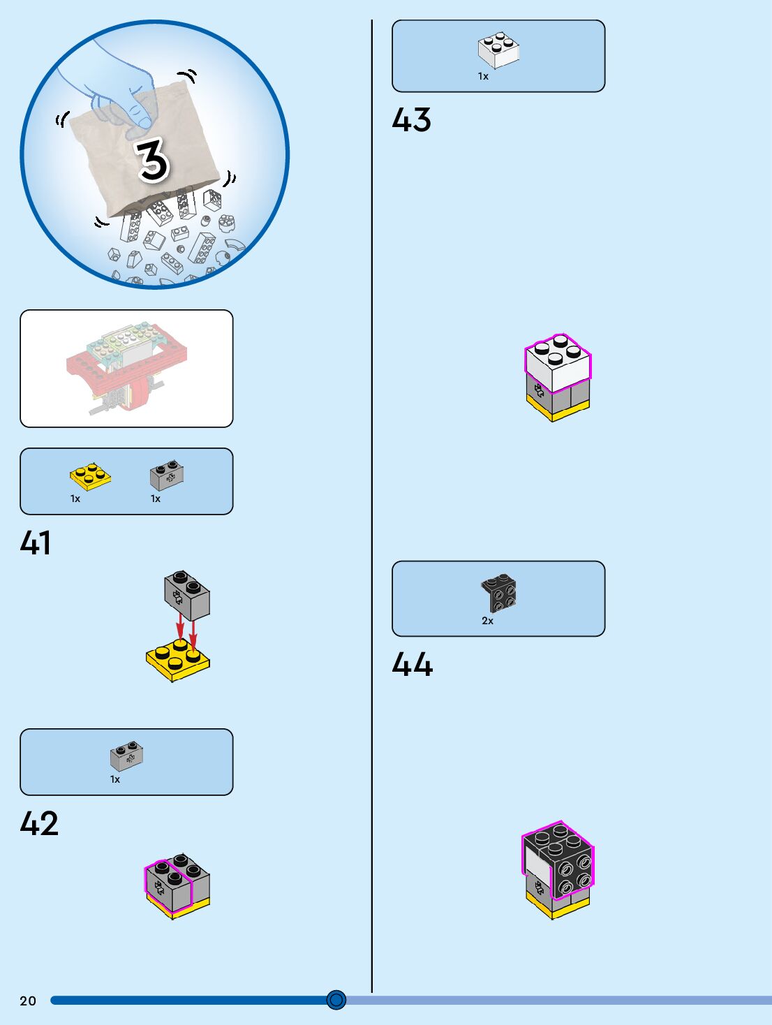 The assembly guide is prepared in a very understandable way for children and adult LEGO enthusiasts. A total of 84 picture galleries are shown, explaining the step-by-step construction stages for 1 different structures.