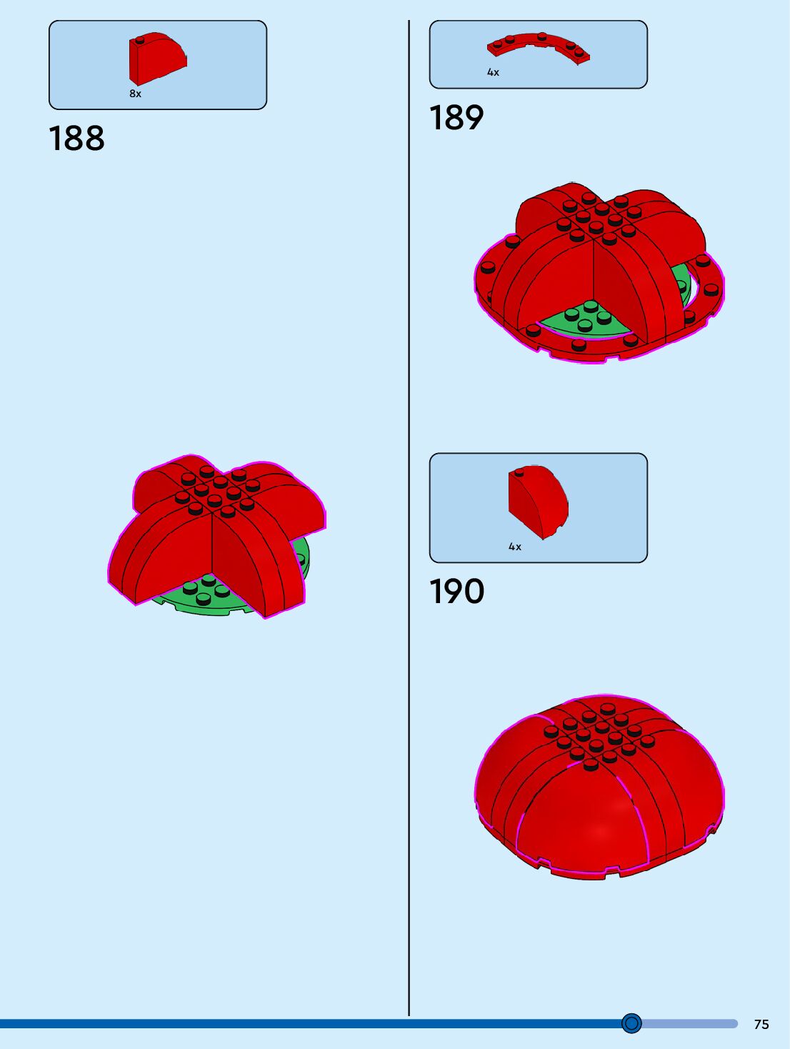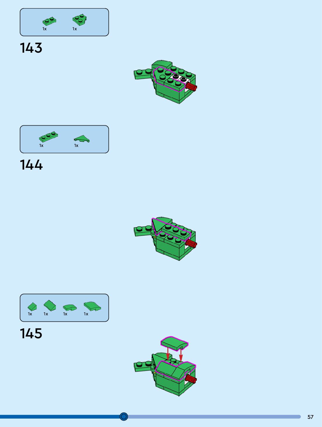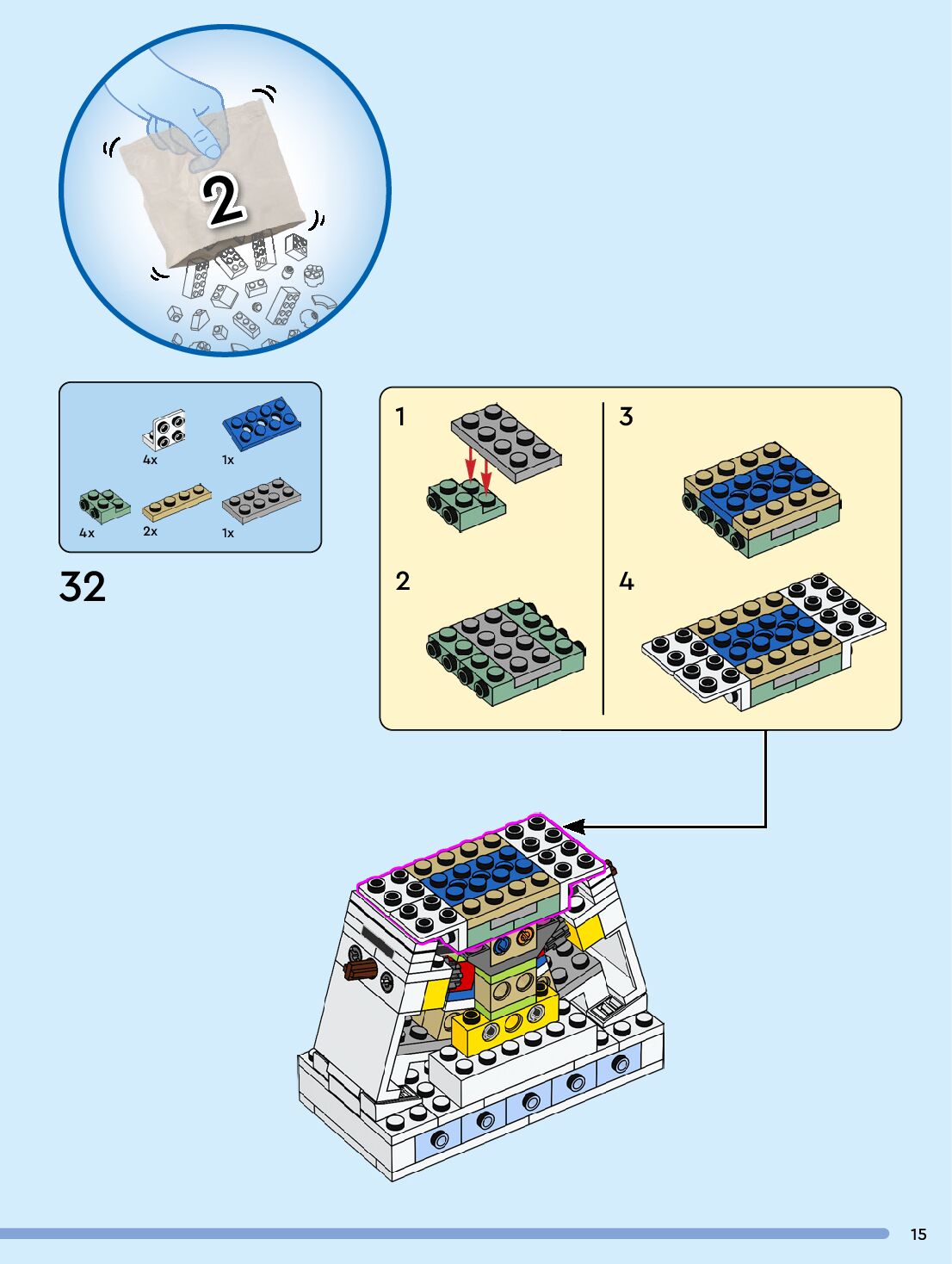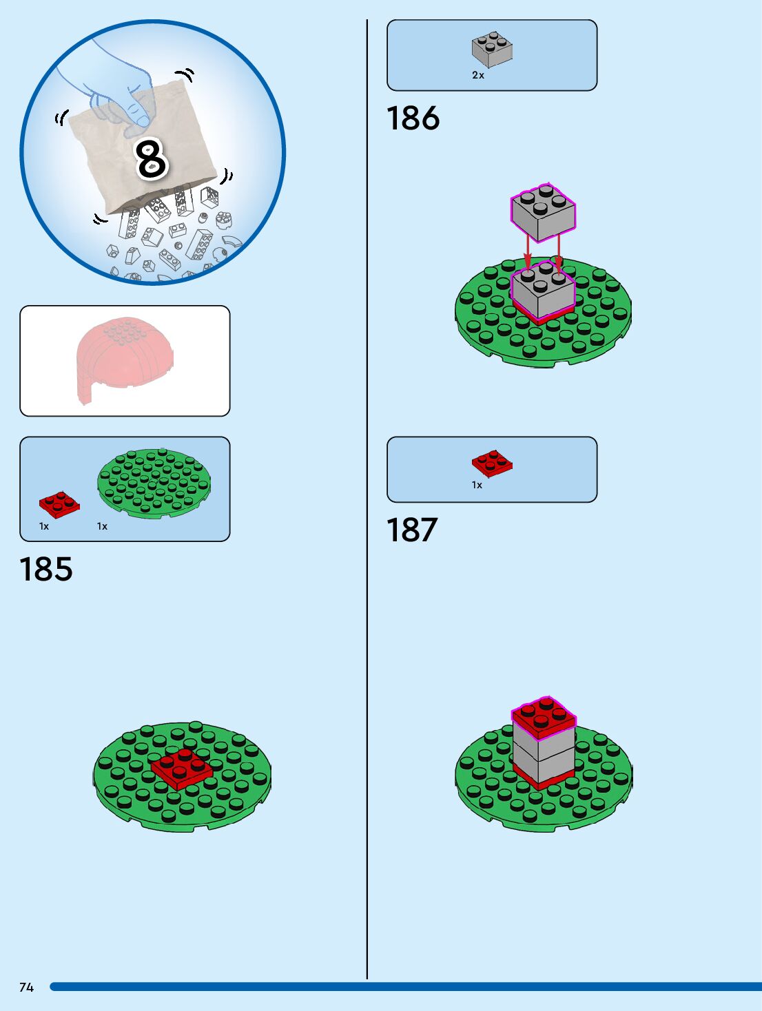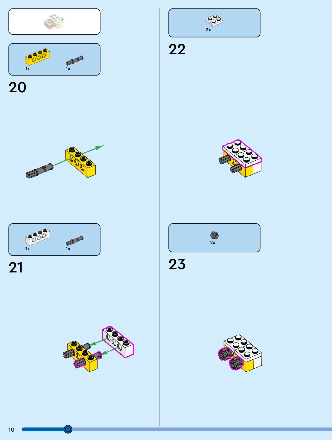 The assembly guide is prepared in a very understandable way for children and adult LEGO enthusiasts. A total of 84 picture galleries are shown, explaining the step-by-step construction stages for 1 different structures.