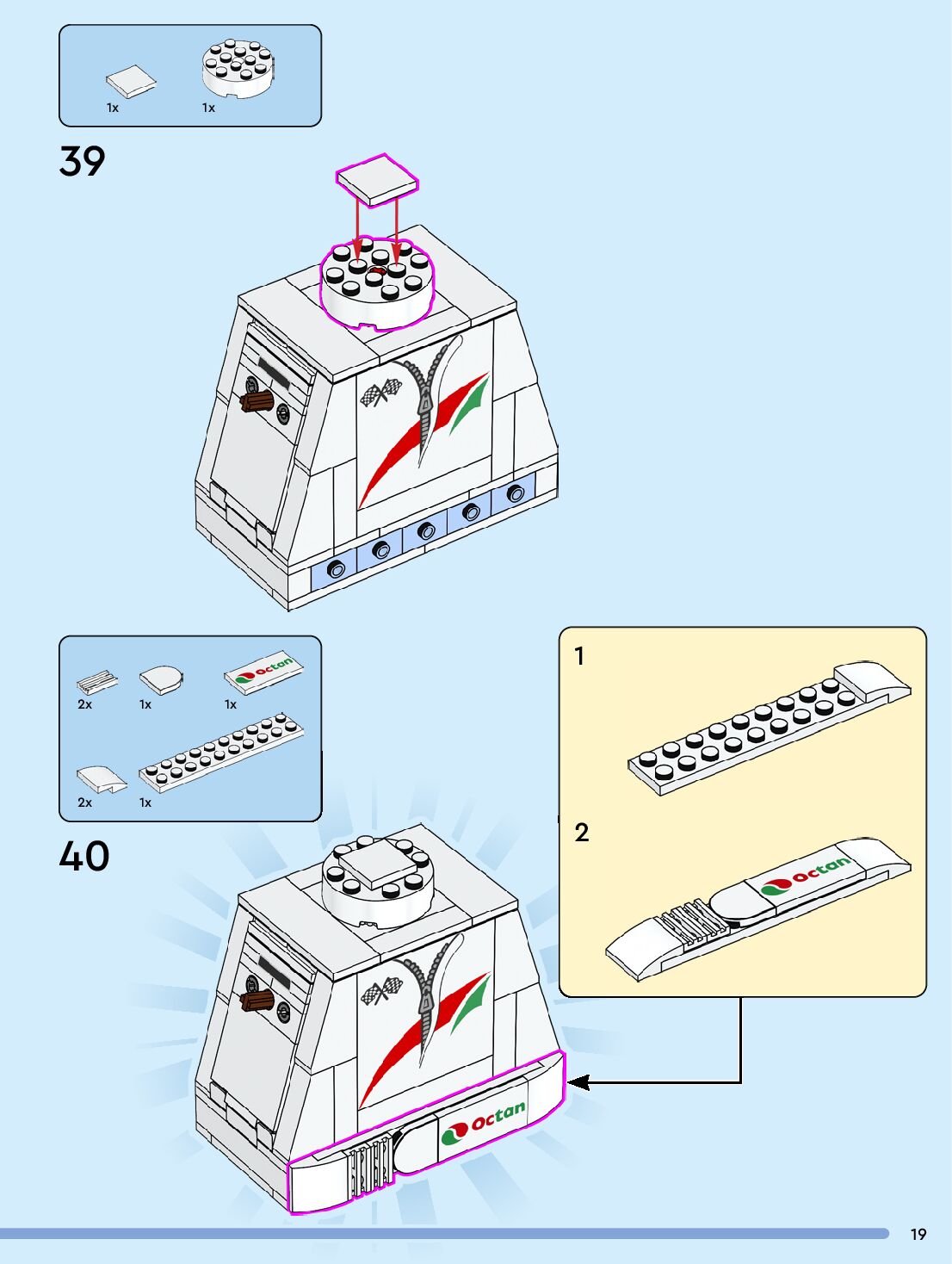 On this page you can find the original construction manual for the LEGO 40819 set. With the assembly manual you can easily learn how to build the Up-Scaled Racing Driver Minifigure step by step. The set was released in 2025.