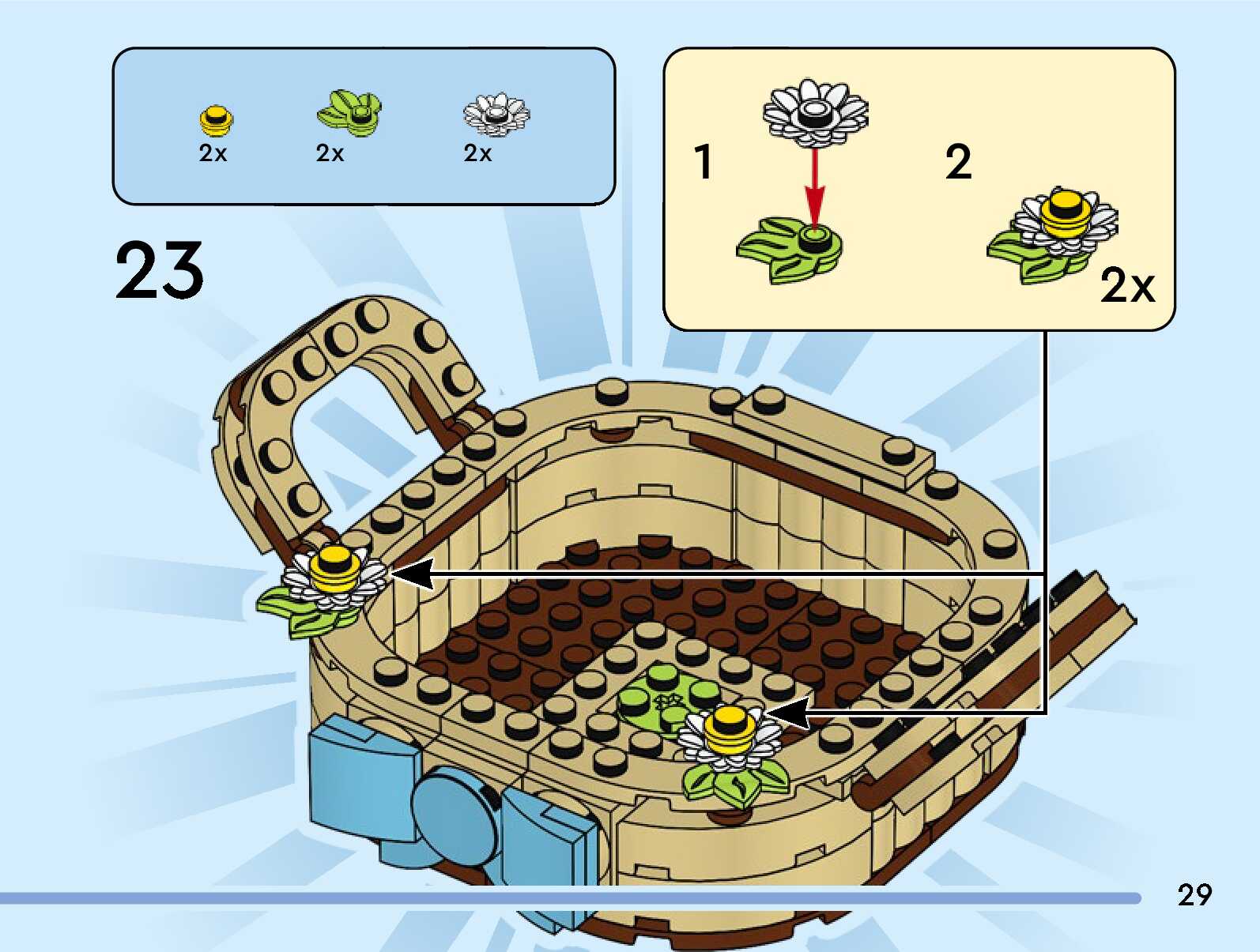 On this page you can find the original construction manual for the LEGO 40863 set. With the assembly manual you can easily learn how to build the Easter Egg Basket step by step. The set was released in 2026.