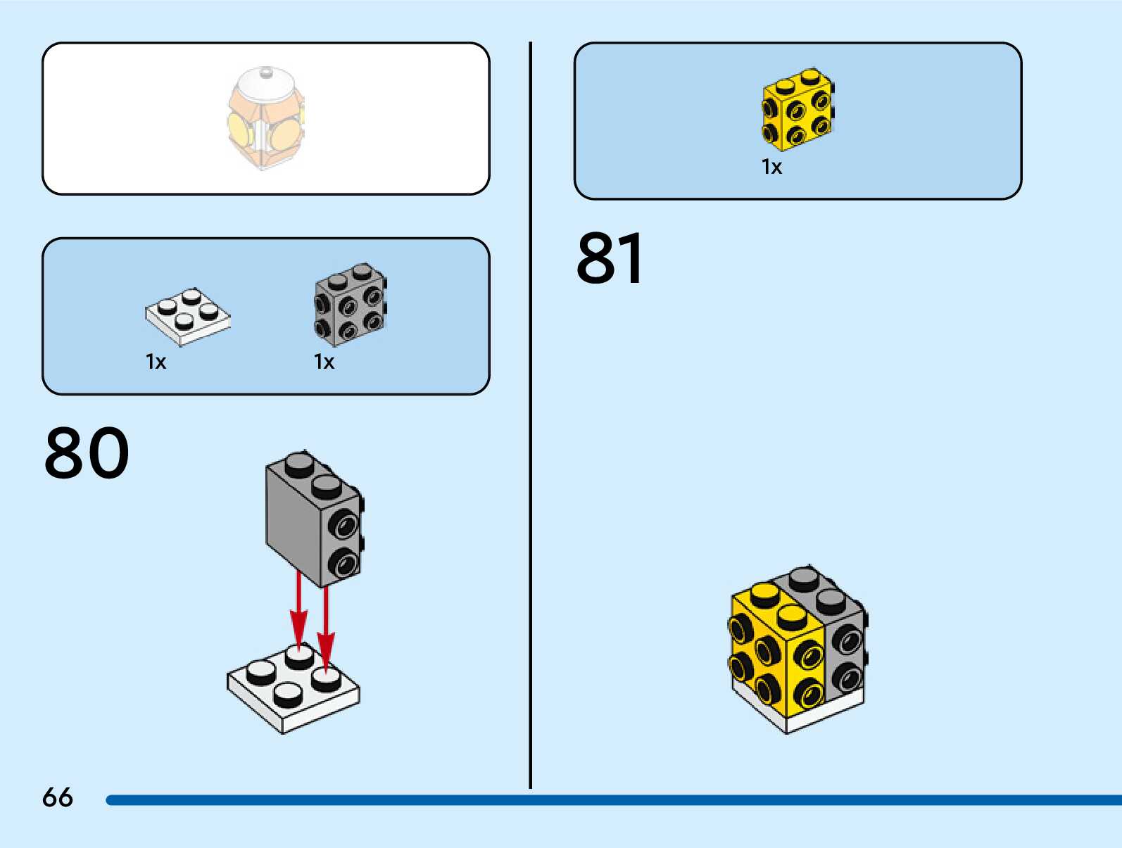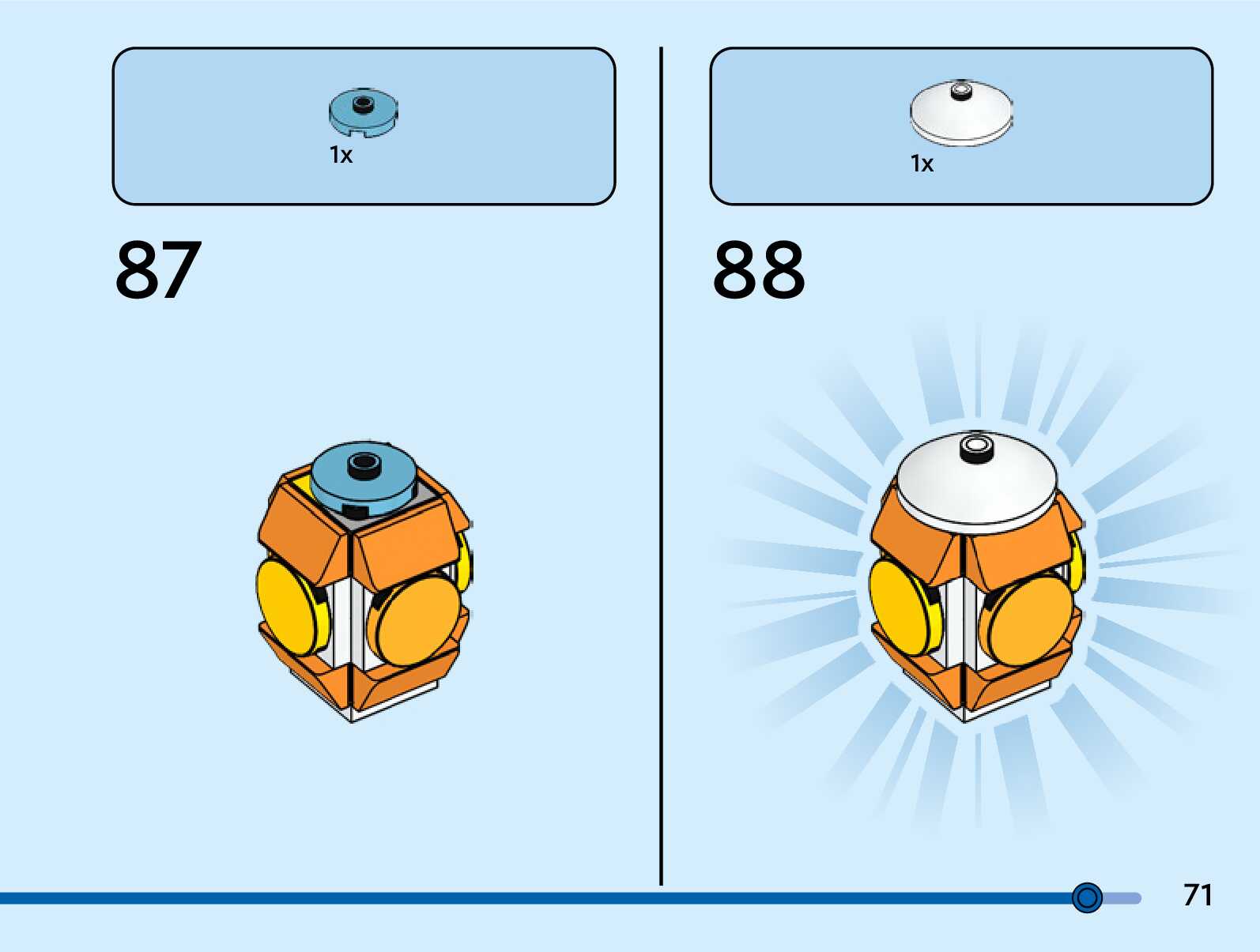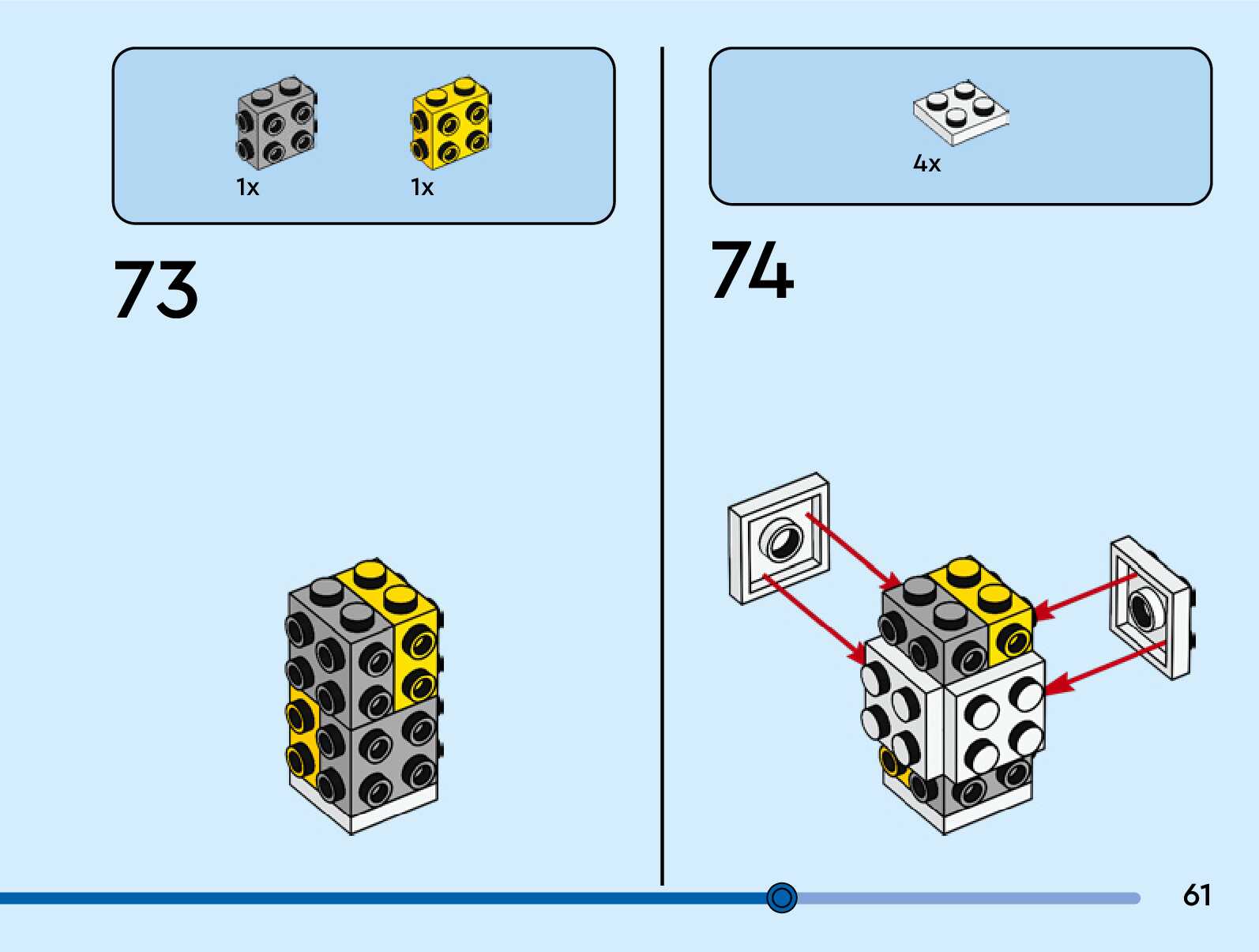 The assembly guide is prepared in a very understandable way for children and adult LEGO enthusiasts. A total of 76 picture galleries are shown, explaining the step-by-step construction stages for 1 different structures.