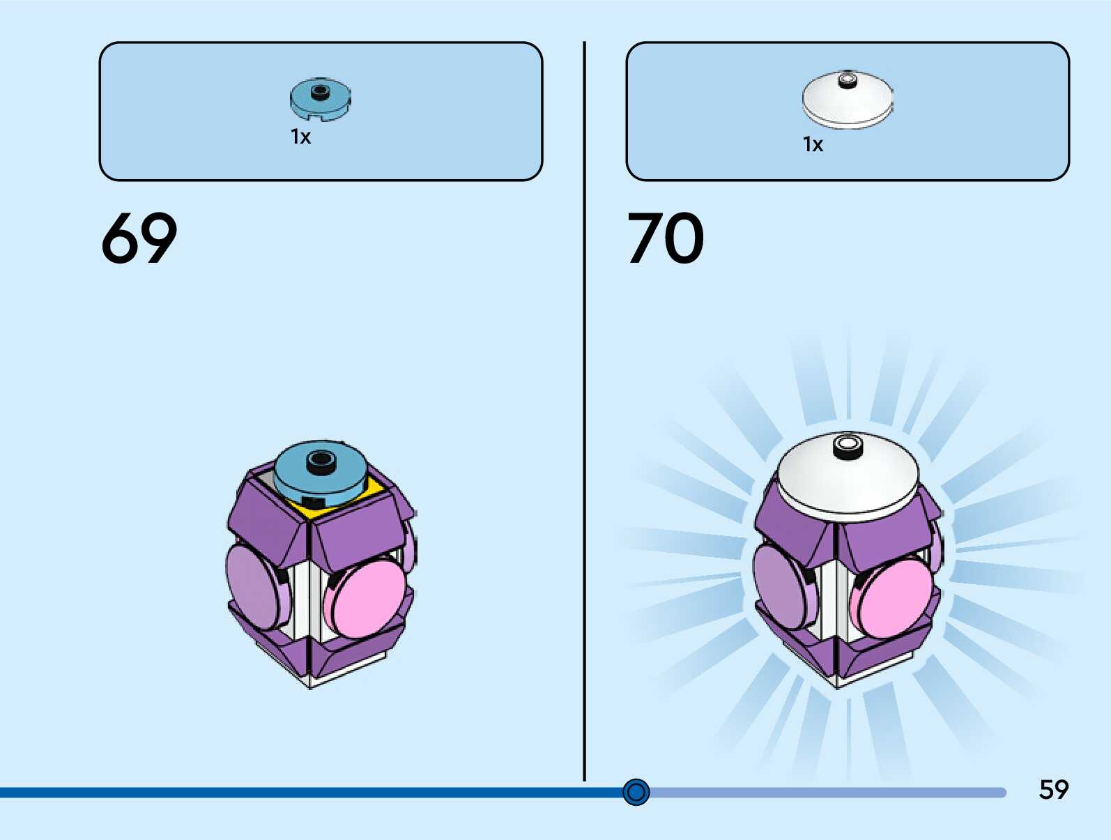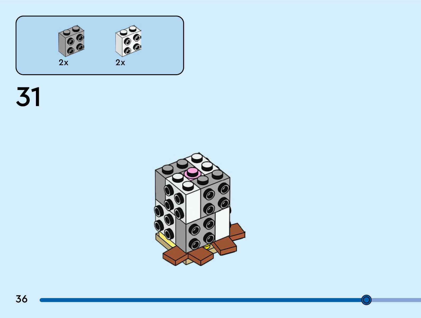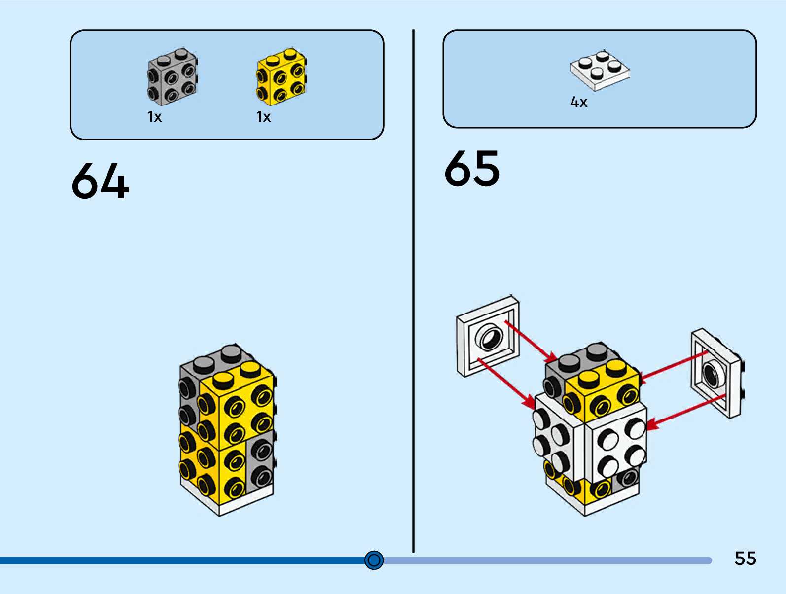 The assembly guide is prepared in a very understandable way for children and adult LEGO enthusiasts. A total of 76 picture galleries are shown, explaining the step-by-step construction stages for 1 different structures.