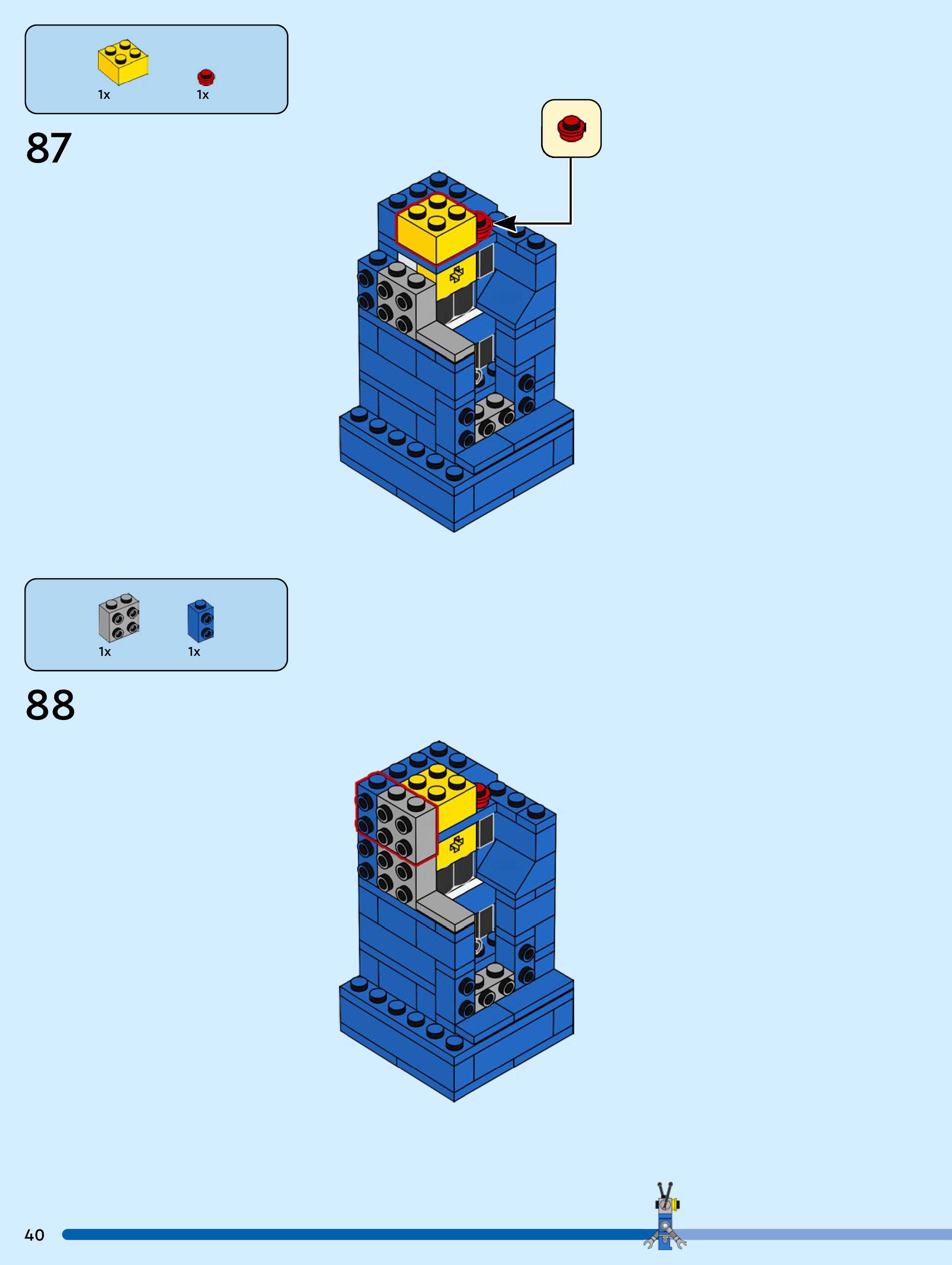 On this page you can find the original construction manual for the LEGO 40921 set. With the assembly manual you can easily learn how to build the Up-Scaled Blue Astronaut Minifigure step by step. The set was released in 2026.