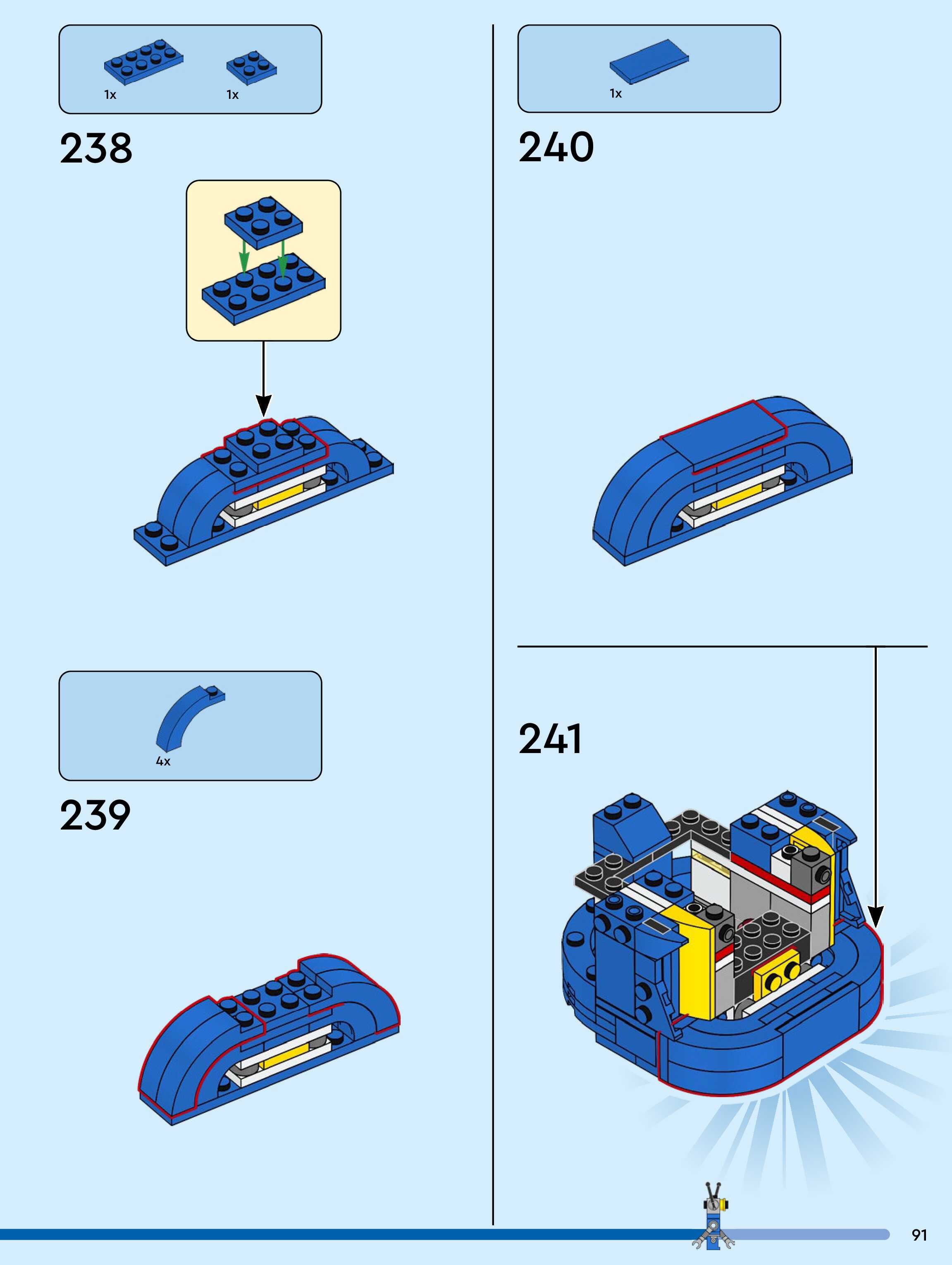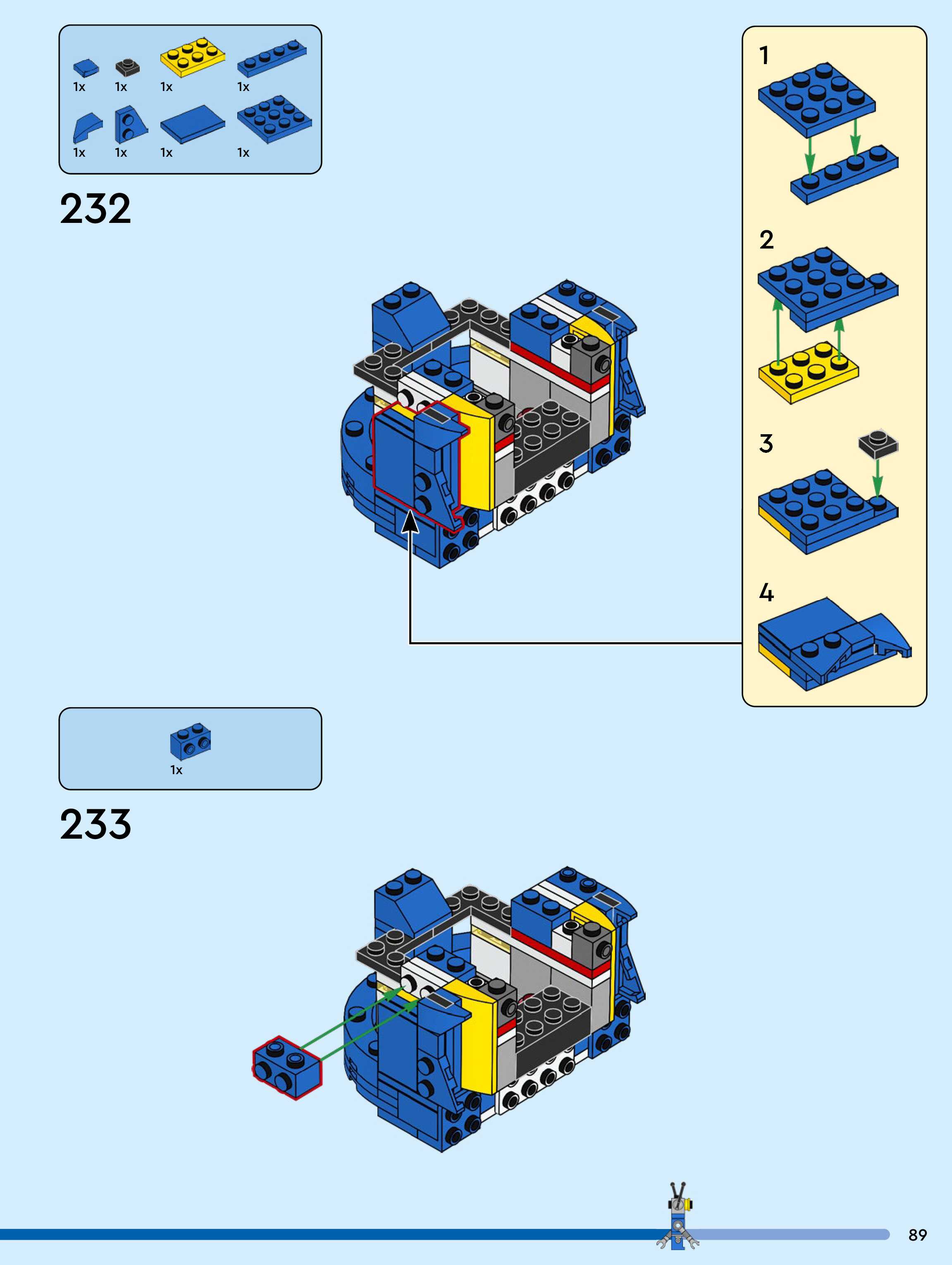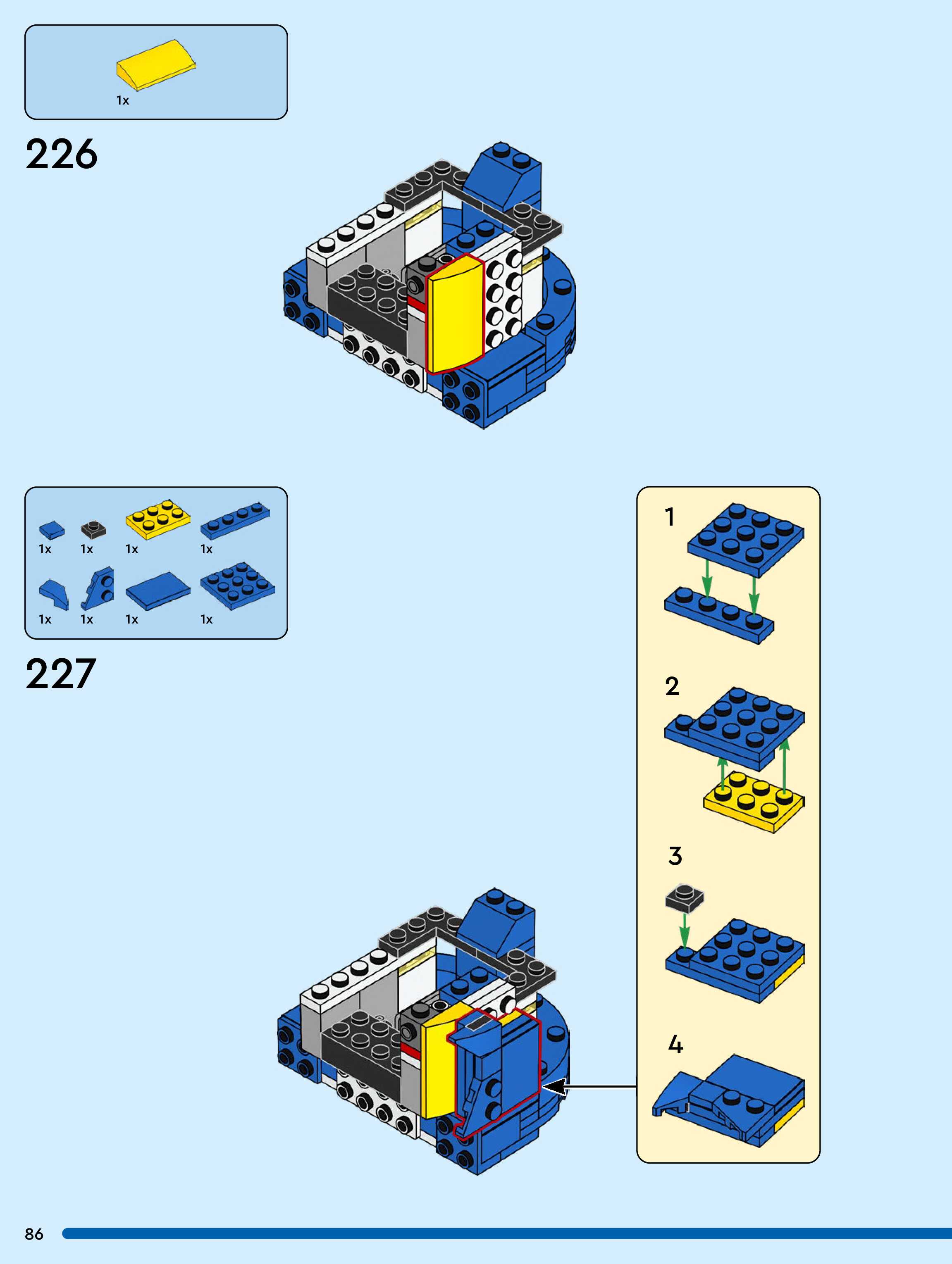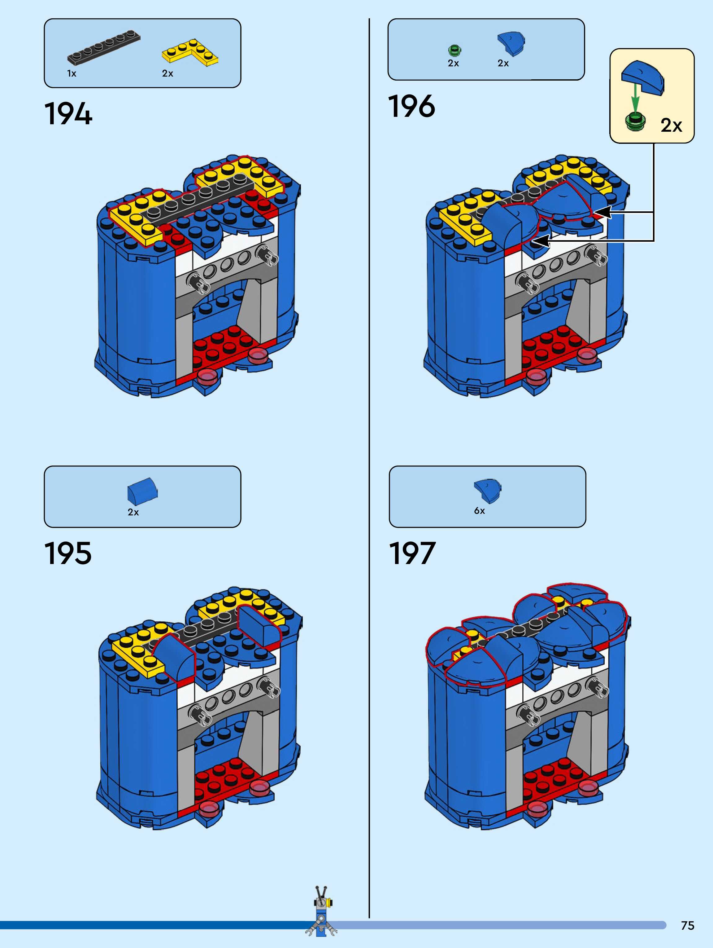 The assembly guide is prepared in a very understandable way for children and adult LEGO enthusiasts. A total of 104 picture galleries are shown, explaining the step-by-step construction stages for 1 different structures.
