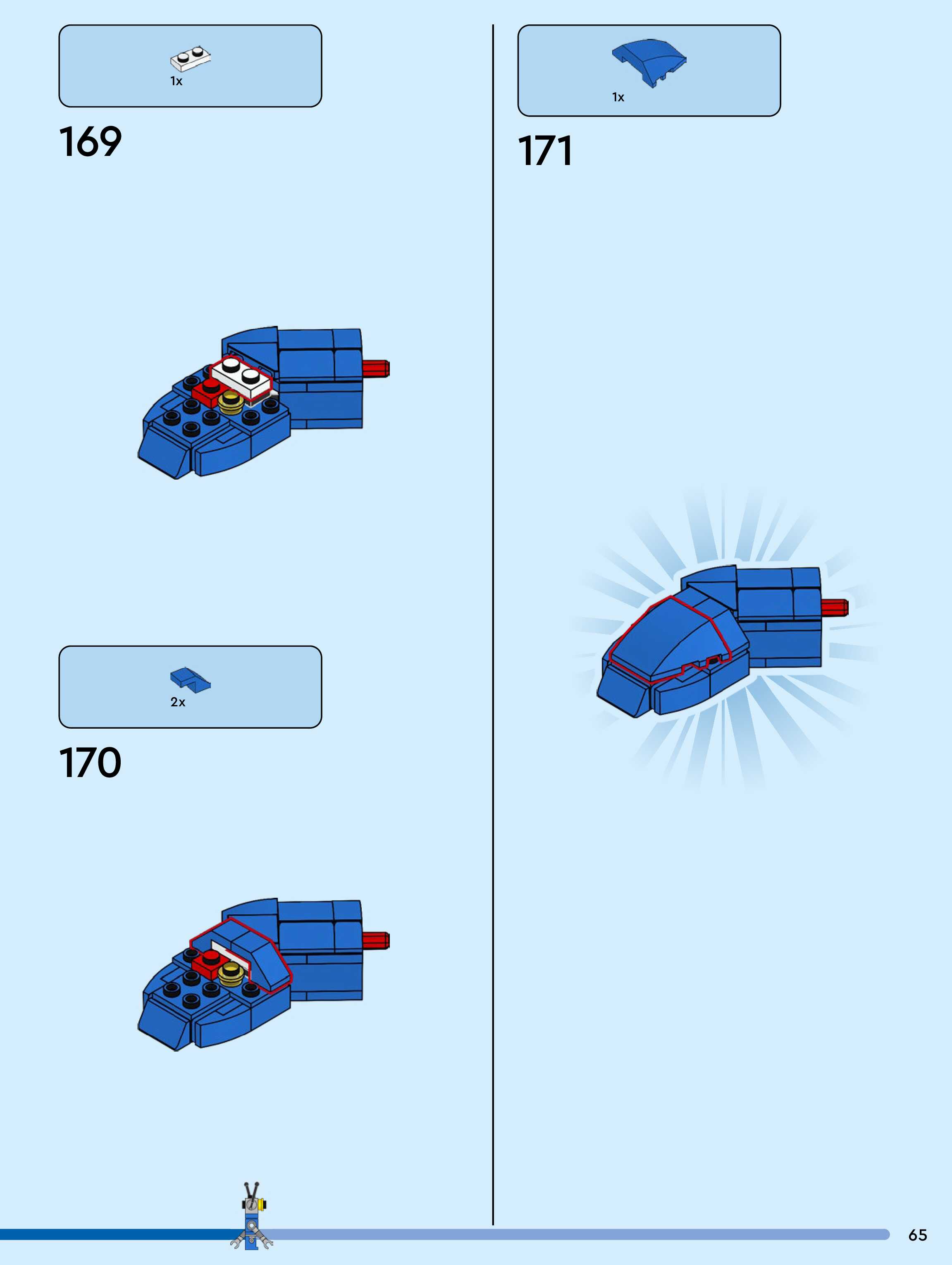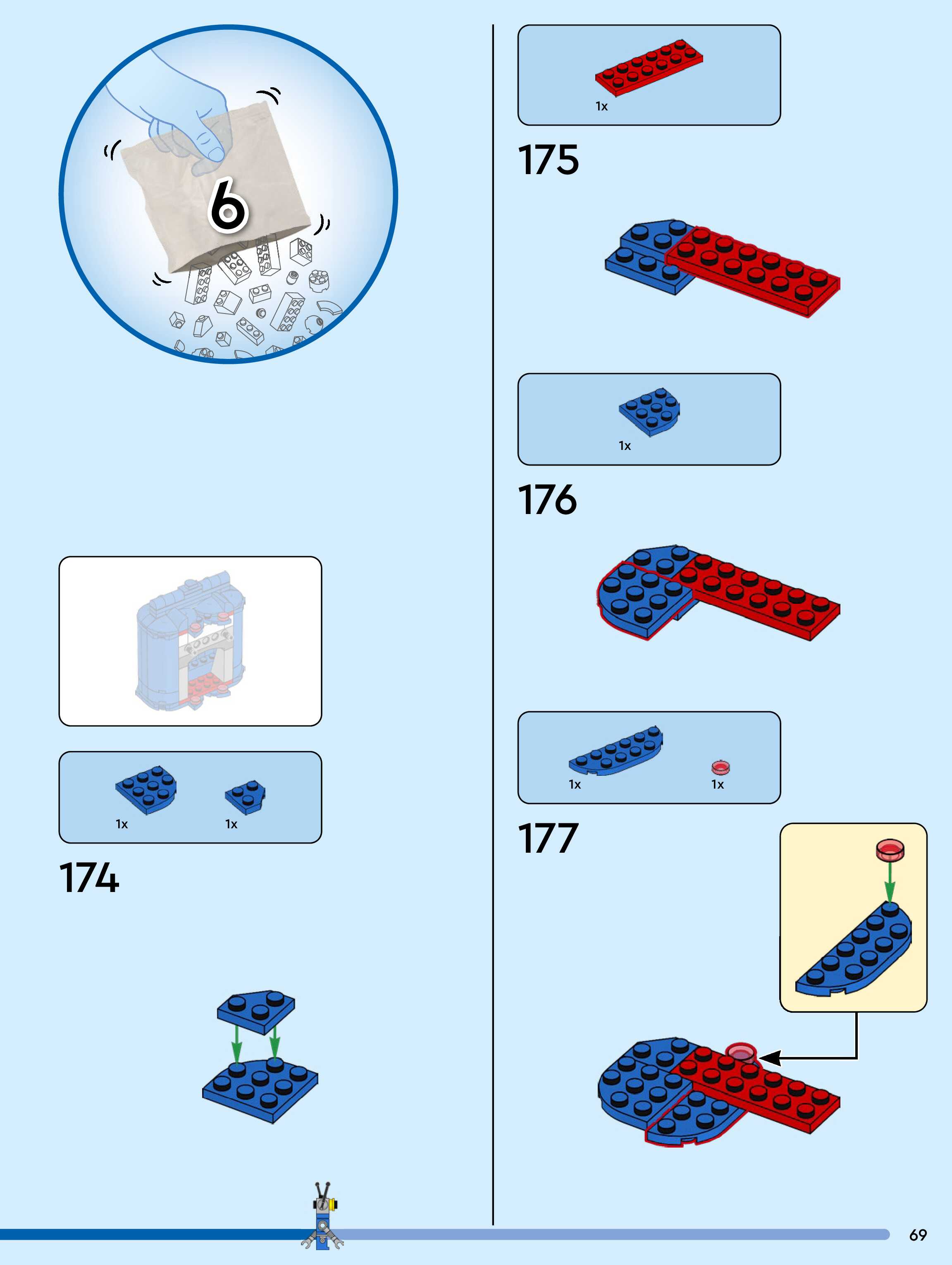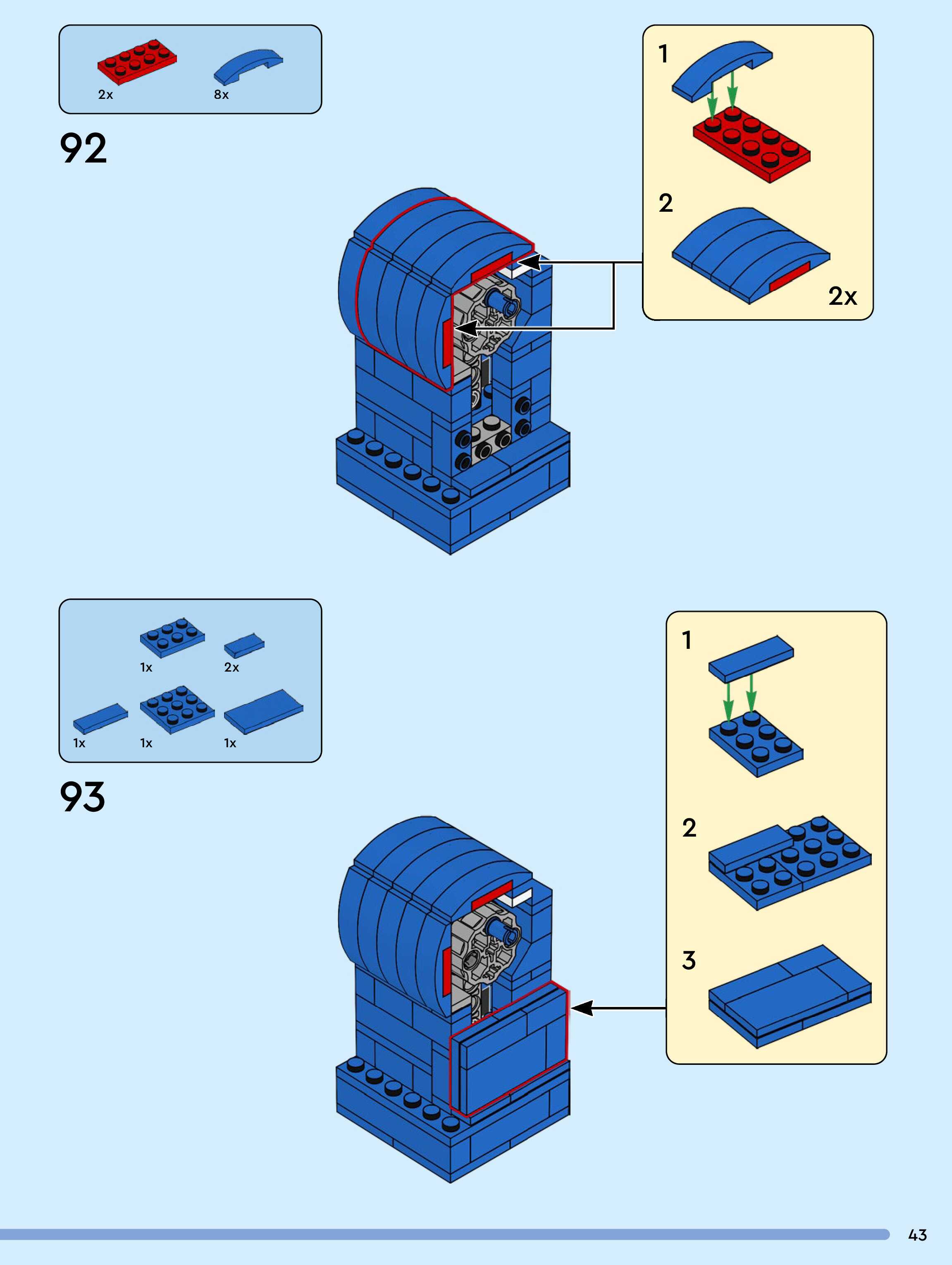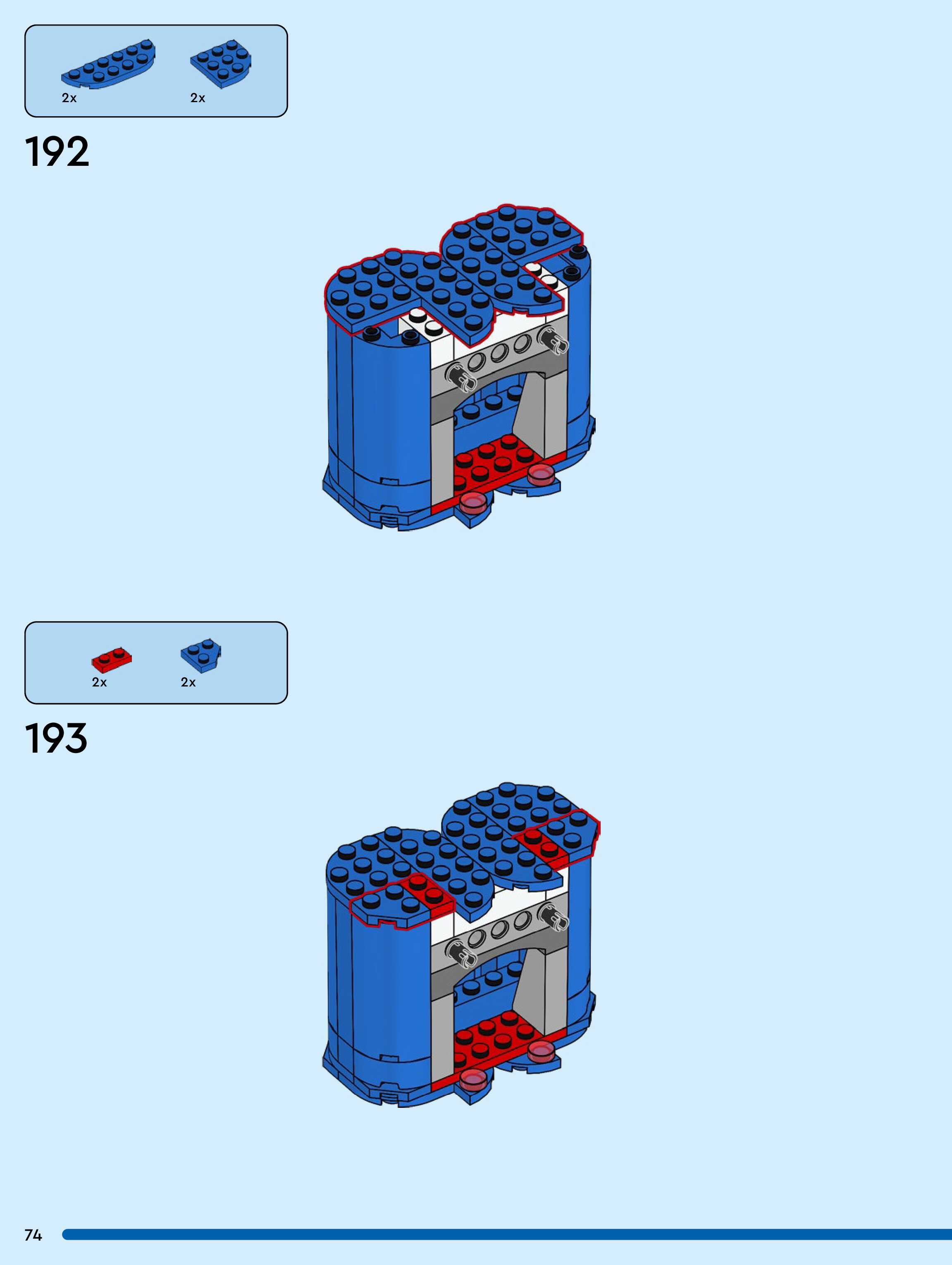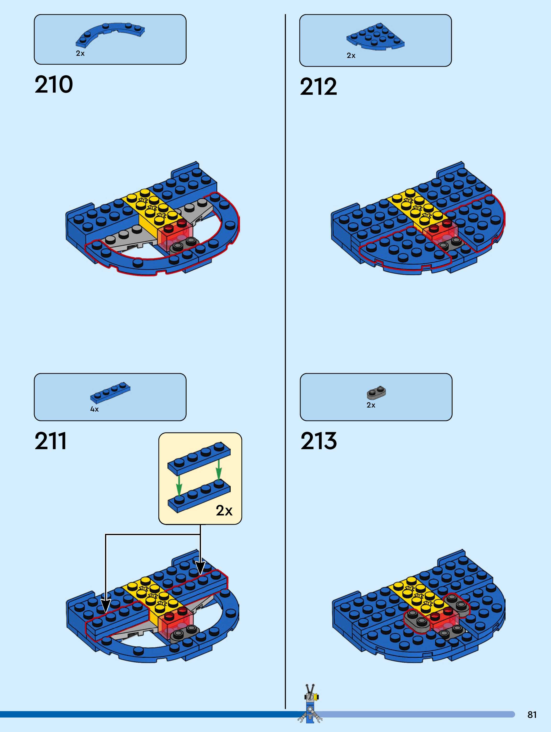 The assembly guide is prepared in a very understandable way for children and adult LEGO enthusiasts. A total of 104 picture galleries are shown, explaining the step-by-step construction stages for 1 different structures.