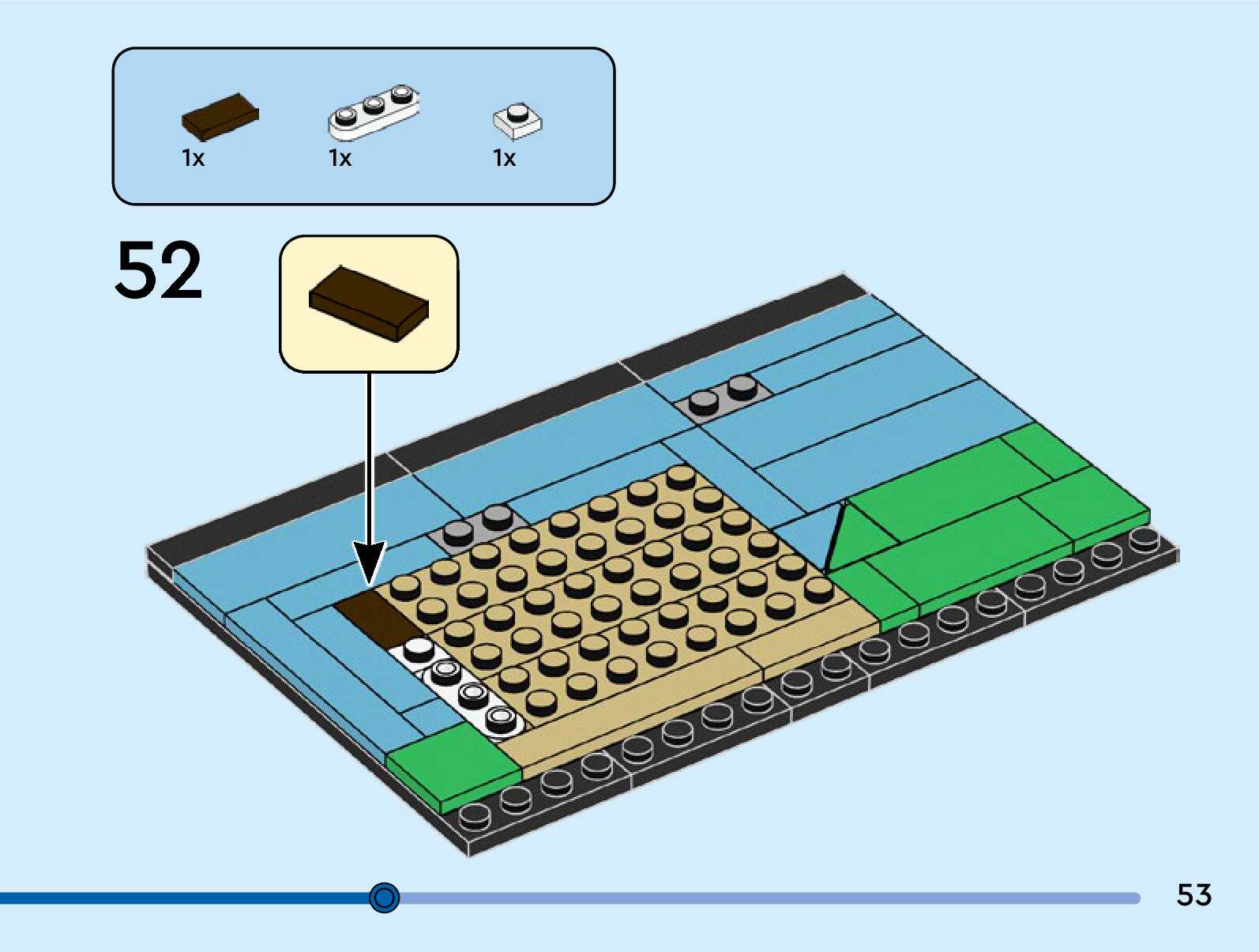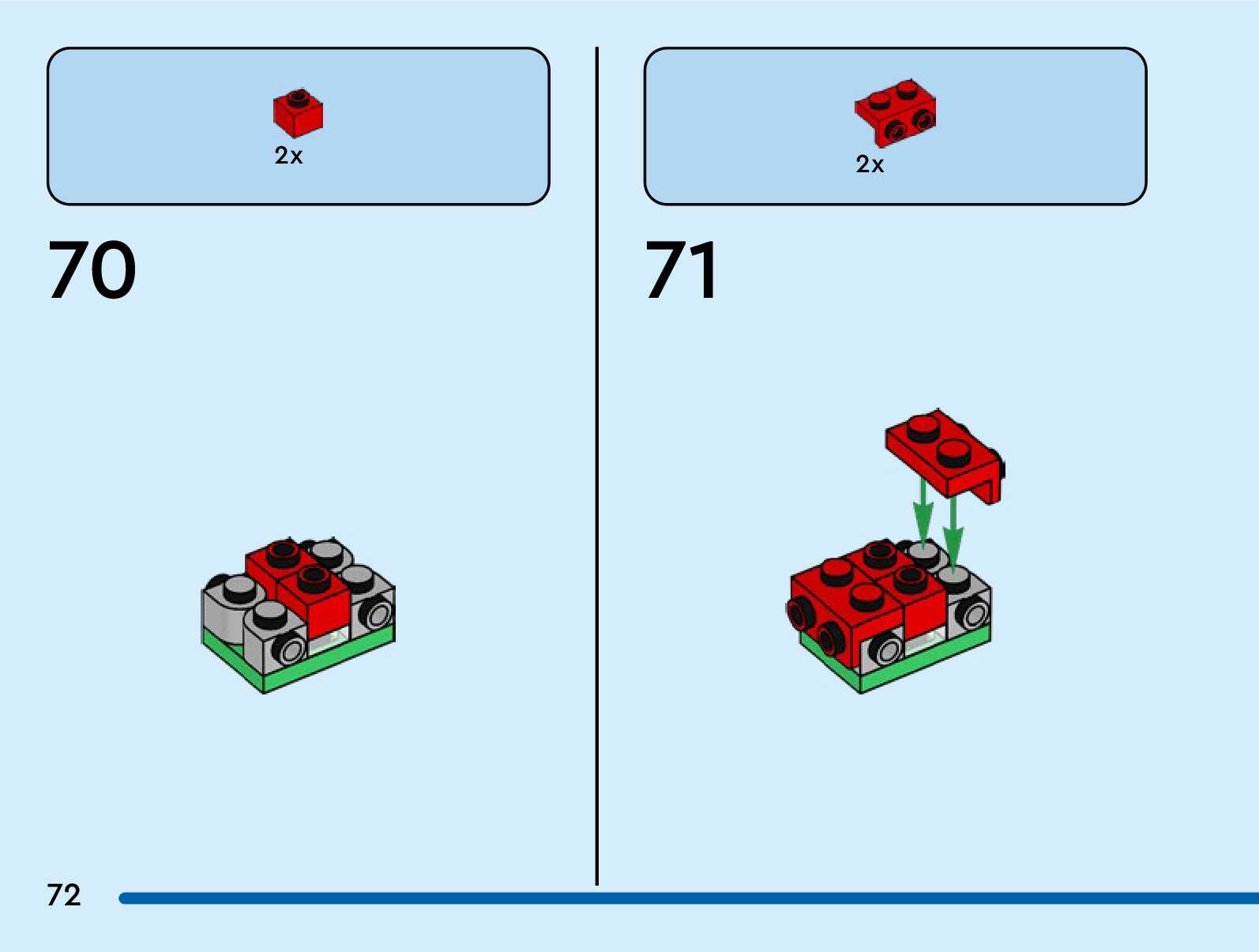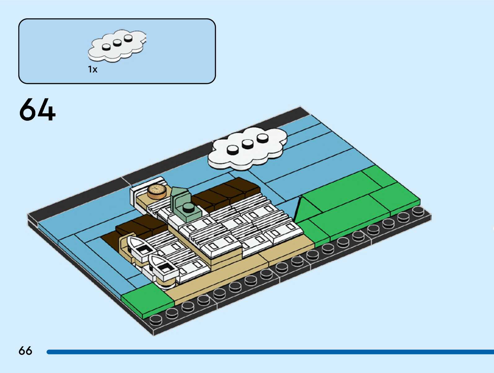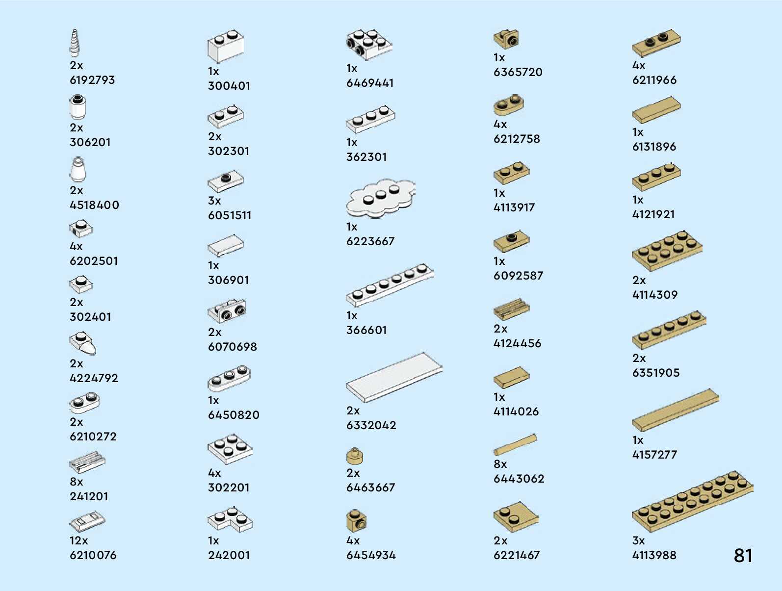 The assembly guide is prepared in a very understandable way for children and adult LEGO enthusiasts. A total of 84 picture galleries are shown, explaining the step-by-step construction stages for 1 different structures.