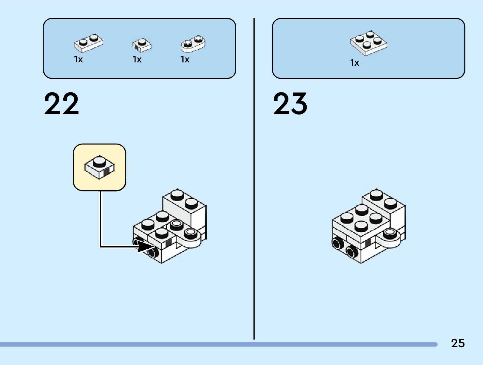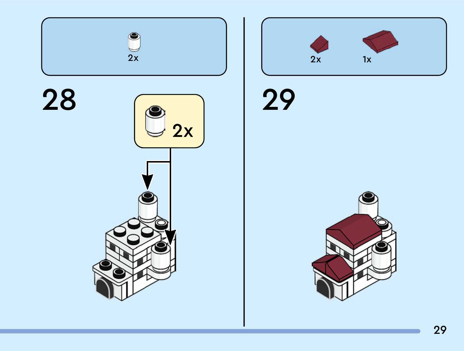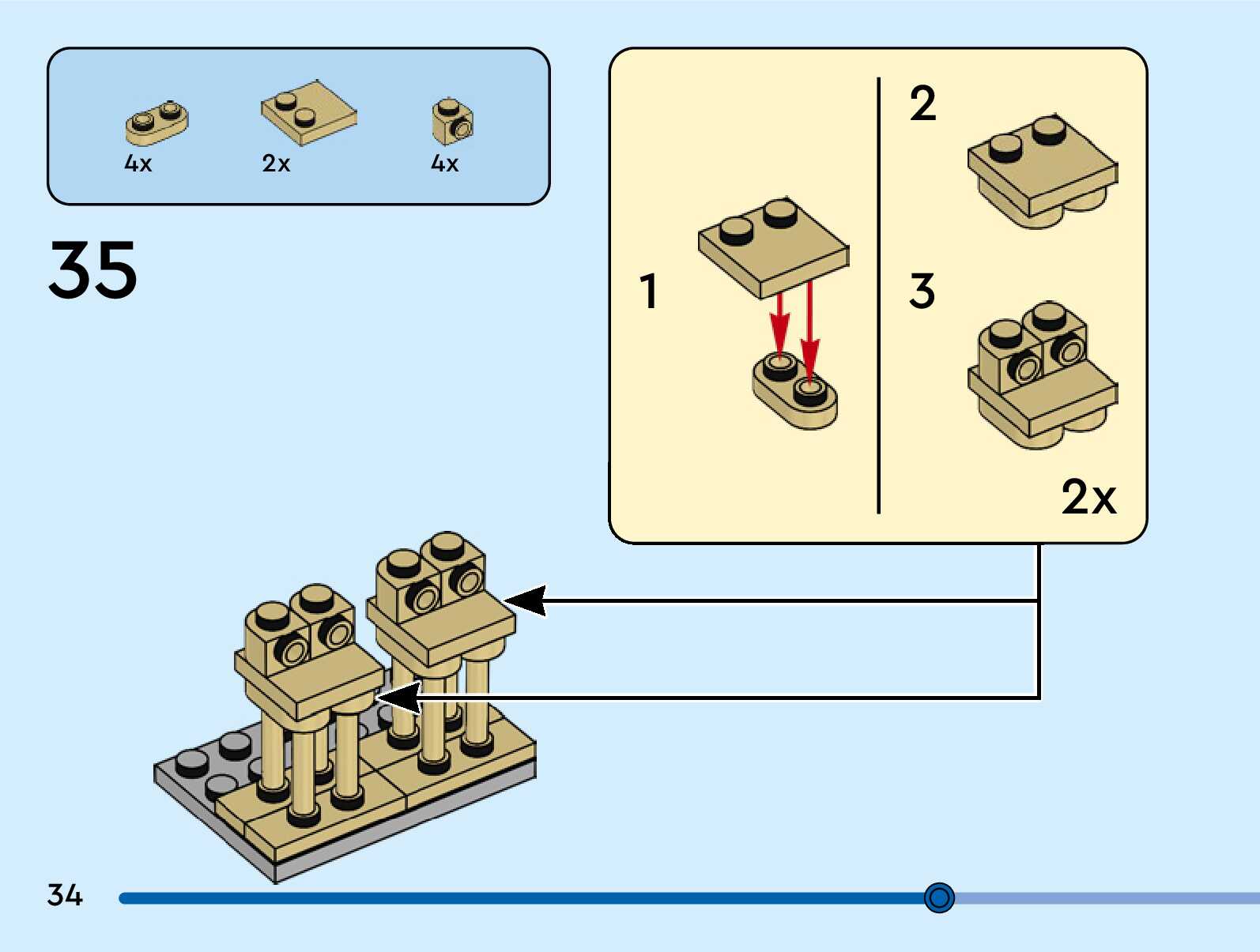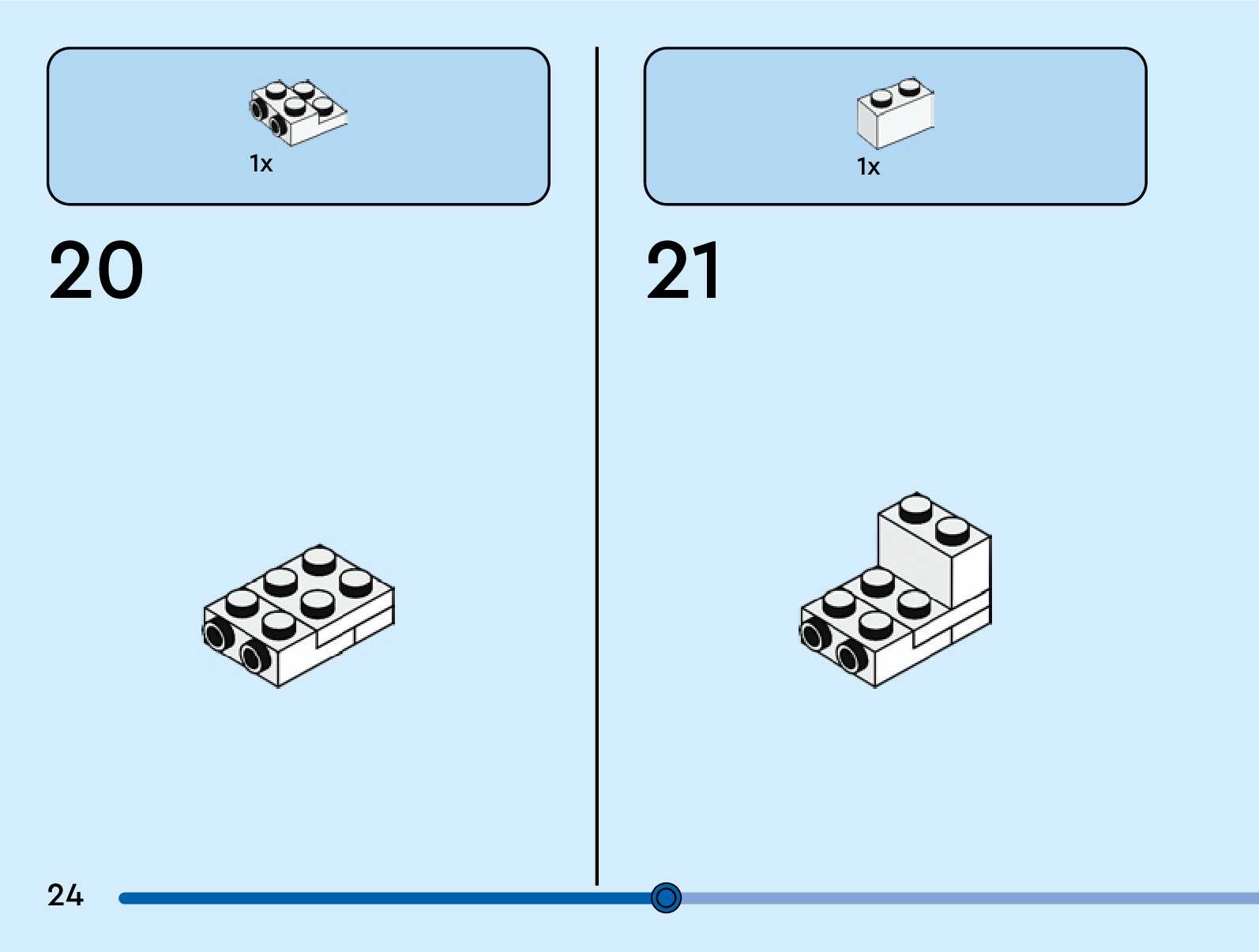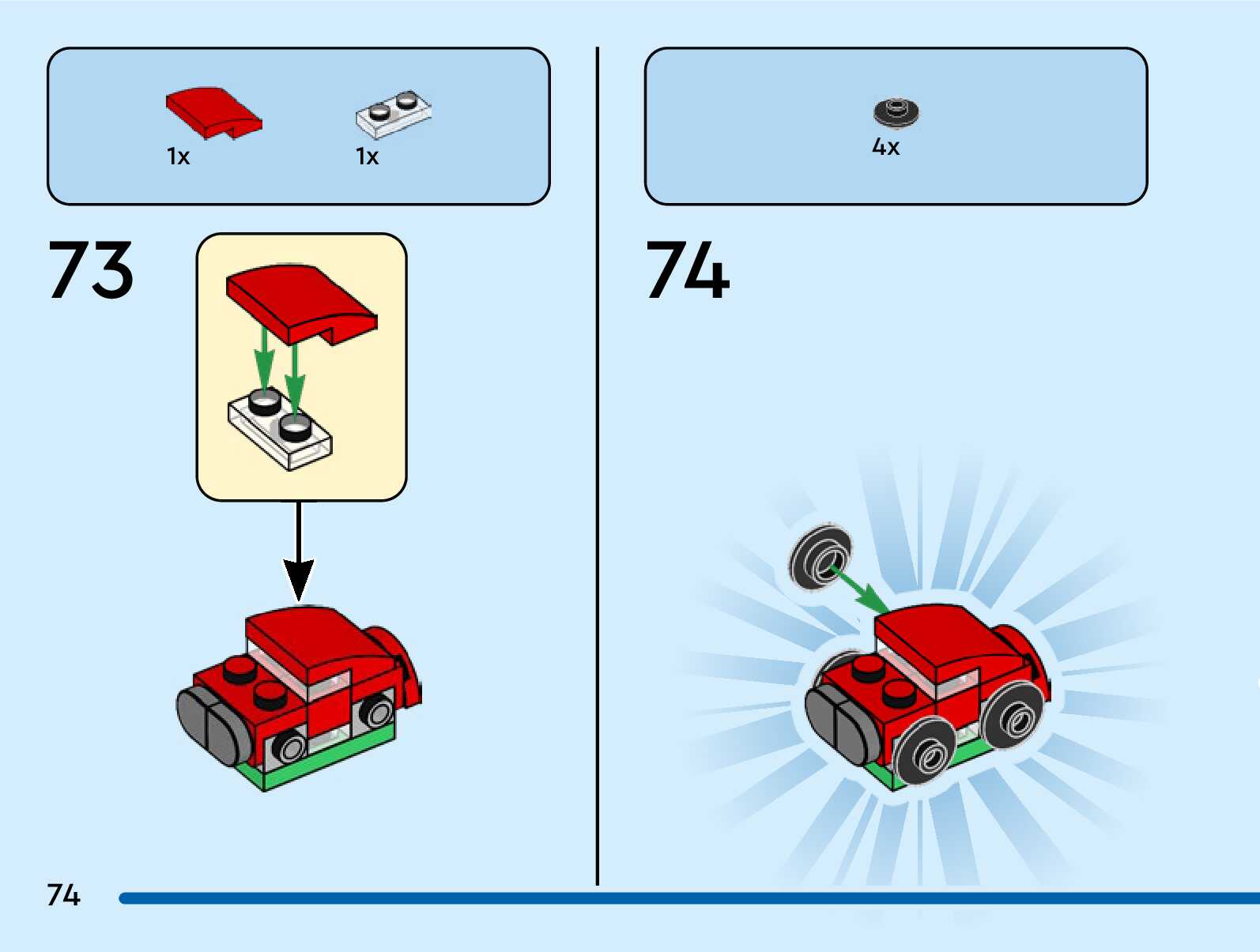 The assembly guide is prepared in a very understandable way for children and adult LEGO enthusiasts. A total of 84 picture galleries are shown, explaining the step-by-step construction stages for 1 different structures.