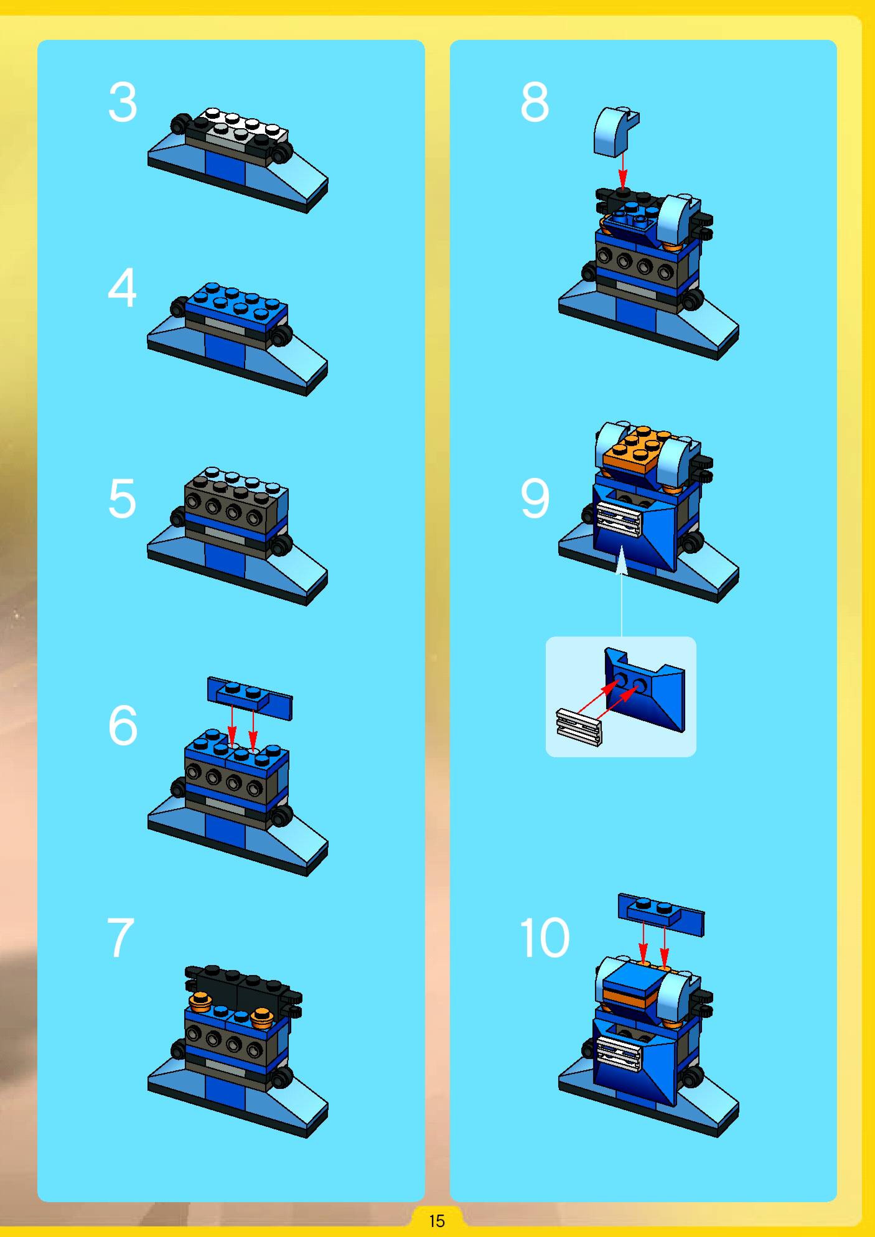 The assembly guide is prepared in a very understandable way for children and adult LEGO enthusiasts. A total of 96 picture galleries are shown, explaining the step-by-step construction stages for 1 different structures.